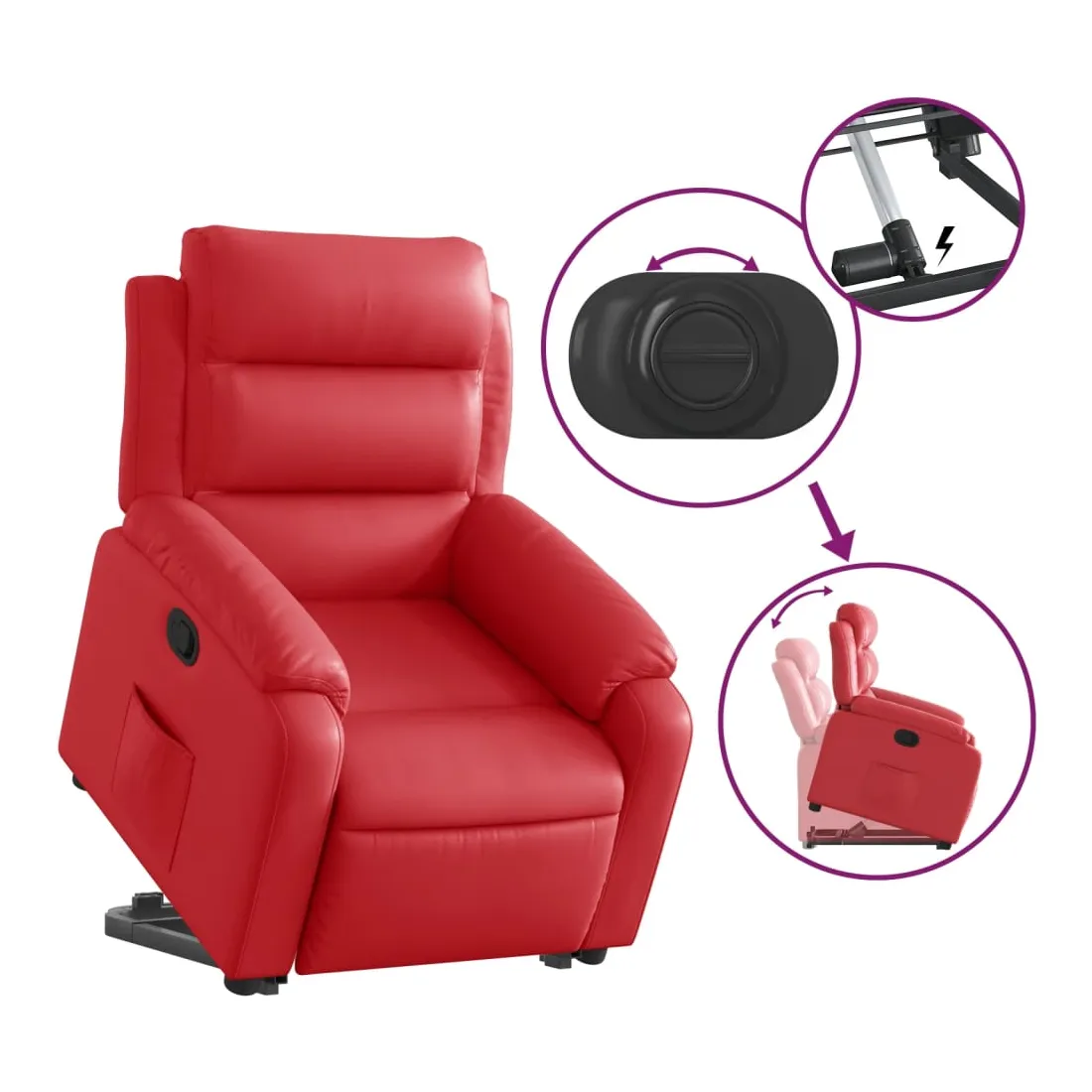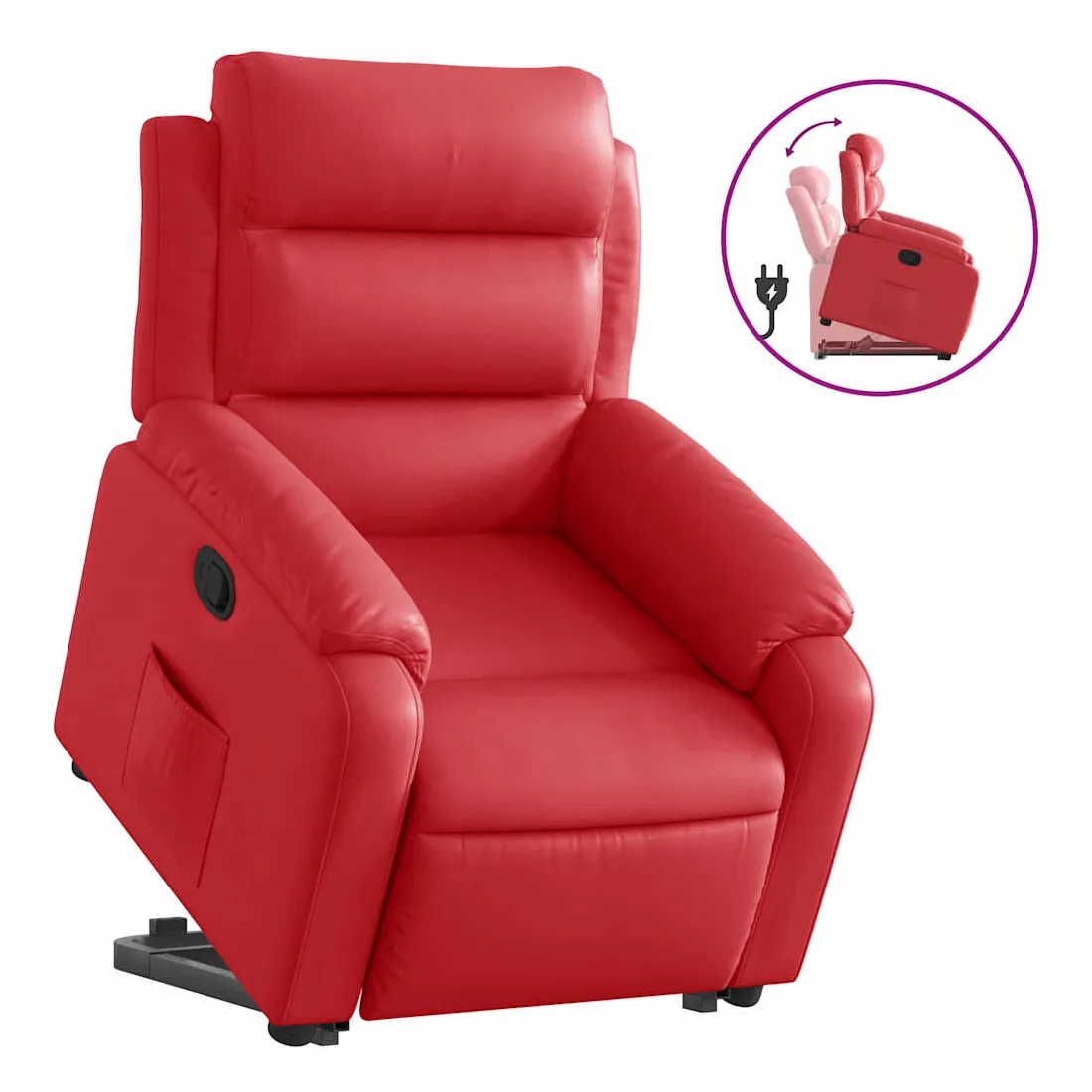 Asseyez-vous et détendez-vous dans ce fauteuil inclinable très confortable ! Fonction de levage électrique : ce fauteuil inclinable pour personnes âgées est équipé d'un moteur électrique pour la fonction de levage. Grâce à la fonction qui pousse toute la chaise vers le haut, vous pouvez facilement vous tenir debout sans stresser votre dos et vos genoux en appuyant simplement sur le bouton.Fonction d'inclinaison manuelle : ce fauteuil inclinable est doté d'une poignée du côté droit. Vous pouvez régler manuellement le repose-pieds et le dossier dans n'importe quelle position selon votre confort en tirant simplement sur la poignée. Cette fonction permet une inclinaison maximale de 135 degrés. De plus, le dossier peut revenir rapidement à sa position d'origine en tirant simplement sur la poignée.Expérience de siège confortable : le siège, le dossier et les larges accoudoirs rembourrés épais recouverts de similicuir procurent une sensation confortable et chaleureuse, vous faisant vous sentir enlacé lorsque vous êtes assis. Le simili cuir est un matériau très résistant. Il est résistant aux taches, ce qui le rend facile à nettoyer avec un chiffon humide. La surface lisse donne également un aspect luxueux et la beauté du cuir véritable.Poche latérale pratique : ce fauteuil est doté d'une poche latérale pour vous permettre de garder vos objets essentiels à portée de main.Cadre solide et stable : le cadre en bois et en métal offre une structure solide et une grande stabilité. Ce fauteuil inclinable est confortable et durable.