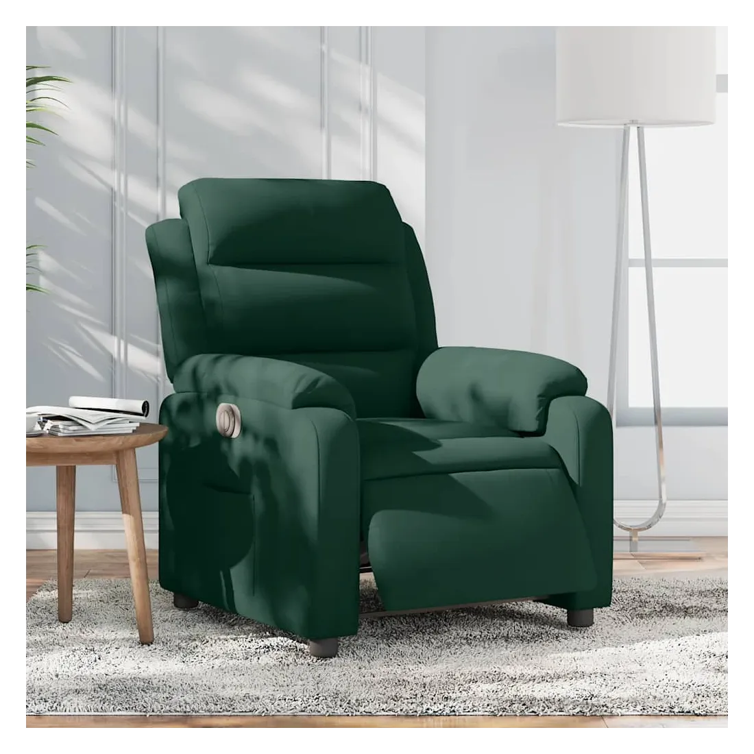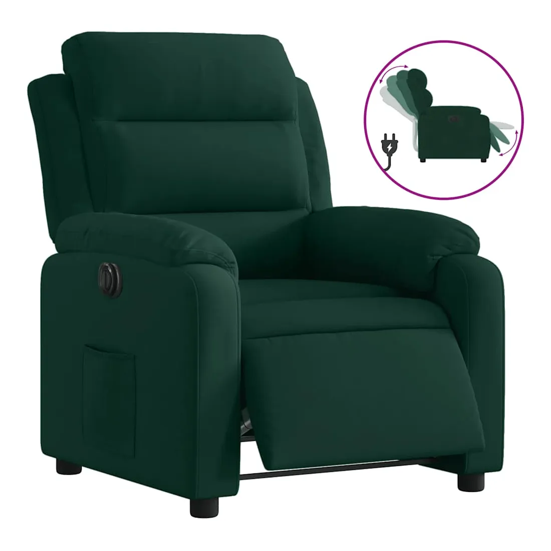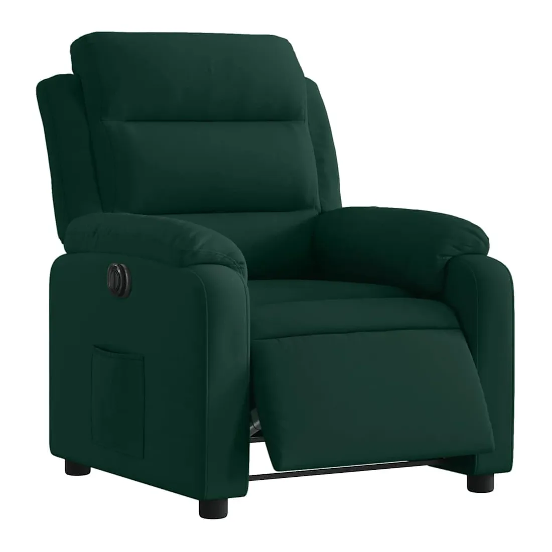 Asseyez-vous et détendez-vous dans ce fauteuil inclinable électrique très confortable ! Fonction d'inclinaison électrique : ce fauteuil inclinable est équipé d'un moteur électrique qui permet de régler automatiquement le repose-pied et le dossier dans n'importe quelle position, selon votre confort, en appuyant simplement sur le bouton situé sur le côté du fauteuil. Cette fonction permet une inclinaison maximale de 135 degrés. En outre, le dossier peut revenir automatiquement à sa position d'origine par une simple pression sur le bouton.Expérience d'assise confortable : le siège, le dossier et les larges accoudoirs rembourrés épais recouverts de velours procurent une sensation confortable et chaleureuse, vous faisant vous sentir enlacé lorsque vous êtes assis. Le velours est un tissu doux et confortable qui est agréable sur la peau.Poche latérale pratique : ce fauteuil est doté d'une poche latérale pour vous permettre de garder vos objets essentiels à portée de main.Cadre solide et stable : le cadre en bois et en métal offre une structure solide et une grande stabilité. Ce fauteuil inclinable est confortable et durable.