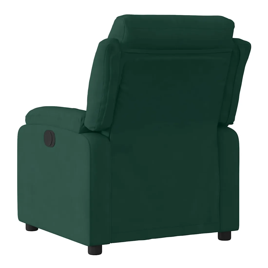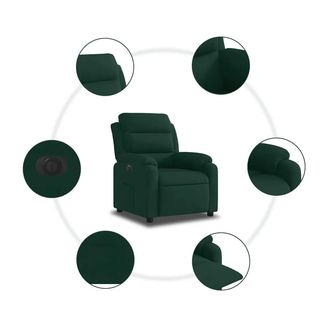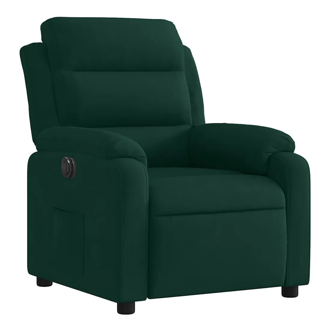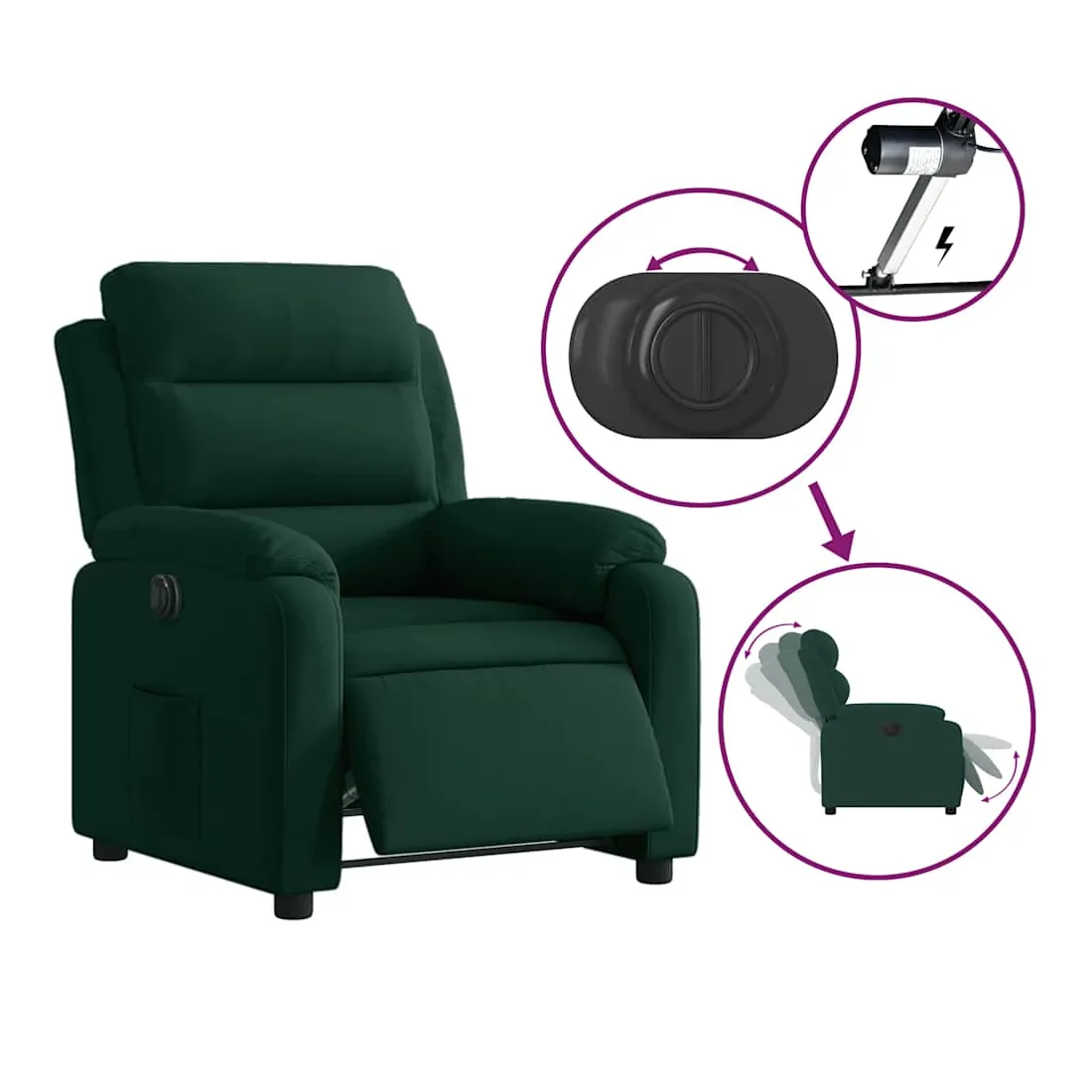 Asseyez-vous et détendez-vous dans ce fauteuil inclinable électrique très confortable ! Fonction d'inclinaison électrique : ce fauteuil inclinable est équipé d'un moteur électrique qui permet de régler automatiquement le repose-pied et le dossier dans n'importe quelle position, selon votre confort, en appuyant simplement sur le bouton situé sur le côté du fauteuil. Cette fonction permet une inclinaison maximale de 135 degrés. En outre, le dossier peut revenir automatiquement à sa position d'origine par une simple pression sur le bouton.Expérience d'assise confortable : le siège, le dossier et les larges accoudoirs rembourrés épais recouverts de velours procurent une sensation confortable et chaleureuse, vous faisant vous sentir enlacé lorsque vous êtes assis. Le velours est un tissu doux et confortable qui est agréable sur la peau.Poche latérale pratique : ce fauteuil est doté d'une poche latérale pour vous permettre de garder vos objets essentiels à portée de main.Cadre solide et stable : le cadre en bois et en métal offre une structure solide et une grande stabilité. Ce fauteuil inclinable est confortable et durable.
