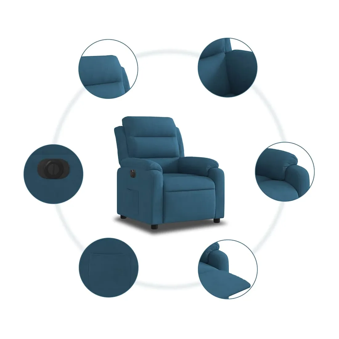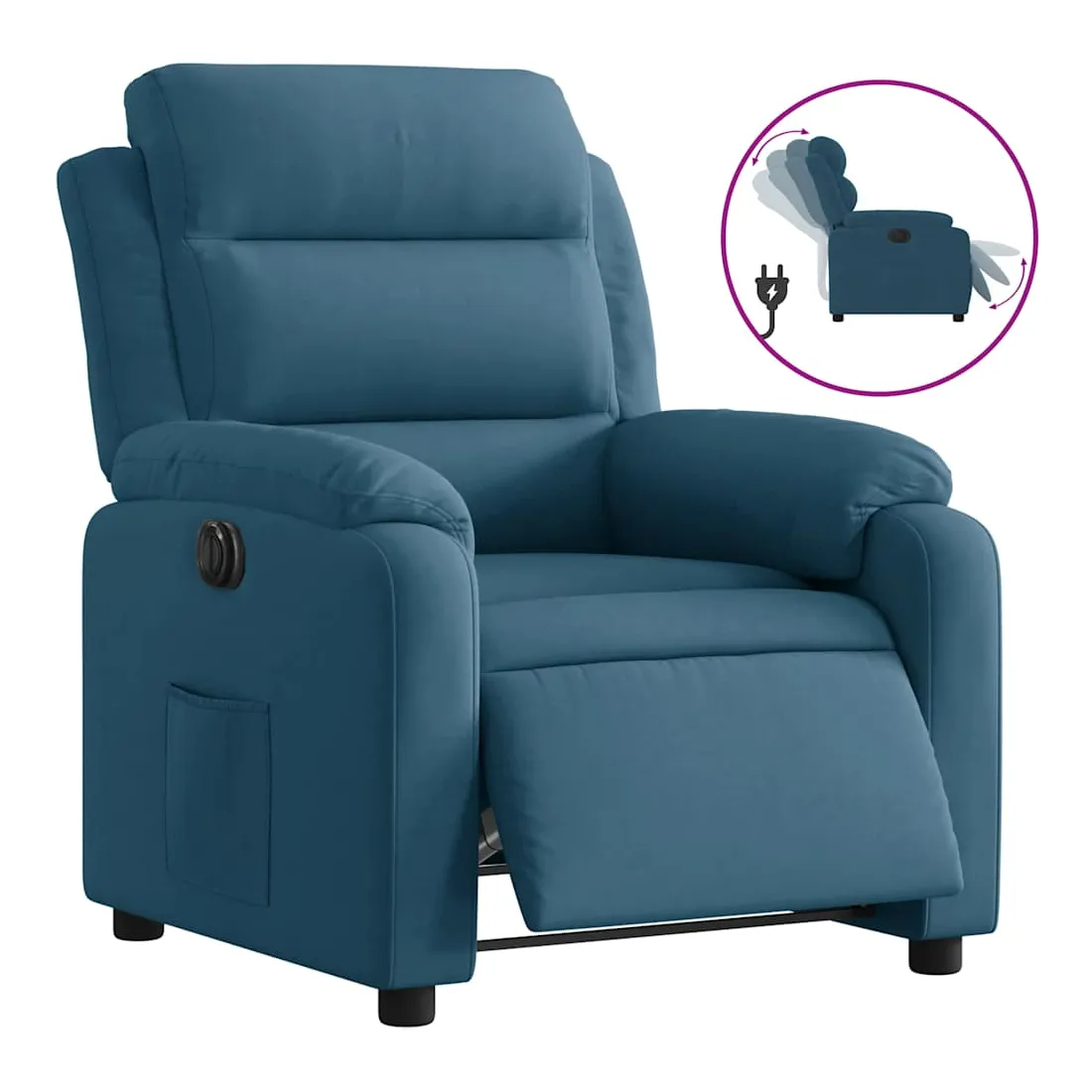 Asseyez-vous et détendez-vous dans ce fauteuil inclinable électrique très confortable ! Fonction d'inclinaison électrique : ce fauteuil inclinable est équipé d'un moteur électrique qui permet de régler automatiquement le repose-pied et le dossier dans n'importe quelle position, selon votre confort, en appuyant simplement sur le bouton situé sur le côté du fauteuil. Cette fonction permet une inclinaison maximale de 135 degrés. En outre, le dossier peut revenir automatiquement à sa position d'origine par une simple pression sur le bouton.Expérience d'assise confortable : le siège, le dossier et les larges accoudoirs rembourrés épais recouverts de velours procurent une sensation confortable et chaleureuse, vous faisant vous sentir enlacé lorsque vous êtes assis. Le velours est un tissu doux et confortable qui est agréable sur la peau.Poche latérale pratique : ce fauteuil est doté d'une poche latérale pour vous permettre de garder vos objets essentiels à portée de main.Cadre solide et stable : le cadre en bois et en métal offre une structure solide et une grande stabilité. Ce fauteuil inclinable est confortable et durable.