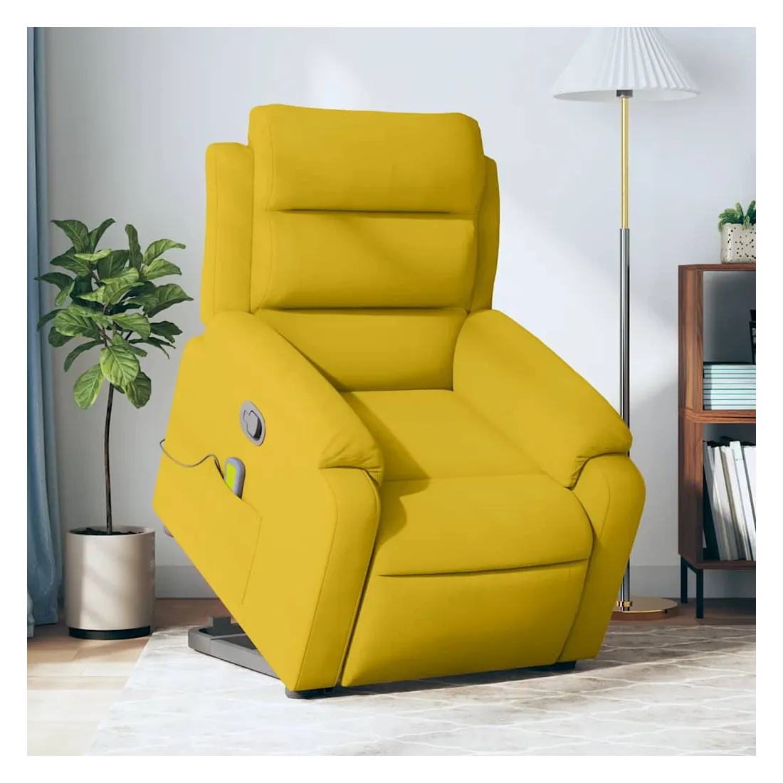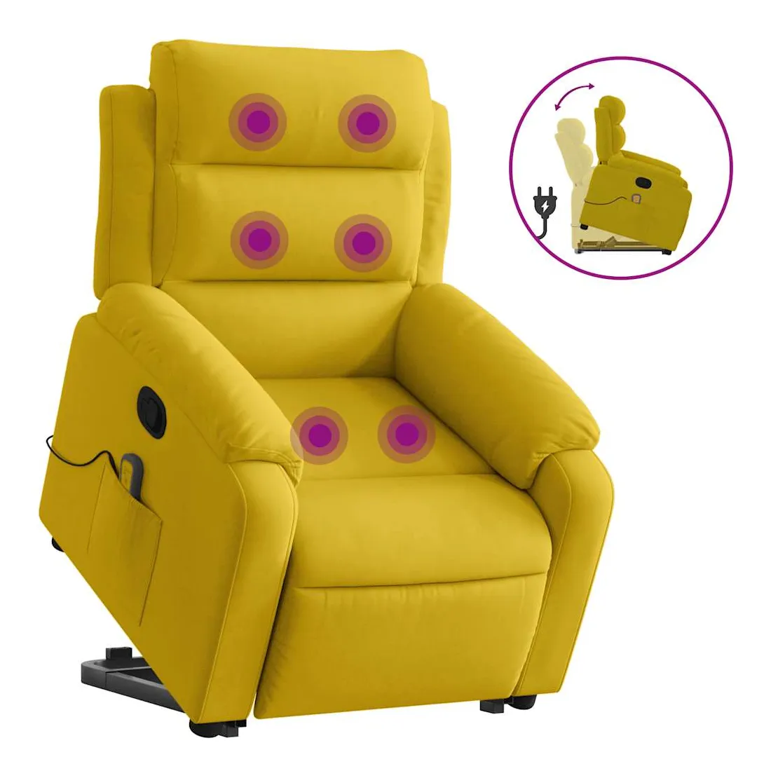 vidaXLAsseyez-vous et détendez-vous dans ce fauteuil inclinable de massage très confortable ! Fonction de levage électrique : ce fauteuil inclinable pour personnes âgées est équipé d'un moteur électrique pour la fonction de levage. Grâce à la fonction qui pousse toute la chaise vers le haut, vous pouvez facilement vous tenir debout sans stresser votre dos et vos genoux en appuyant simplement sur le bouton.Fonction d'inclinaison manuelle : ce fauteuil inclinable est doté d'une poignée du côté droit. Vous pouvez régler manuellement le repose-pieds et le dossier dans n'importe quelle position selon votre confort en tirant simplement sur la poignée. Cette fonction permet une inclinaison maximale de 135 degrés. De plus, le dossier peut revenir rapidement à sa position d'origine en tirant simplement sur la poignée.Fonction de vibration : les 6 points de massage vous permettent de faire l'expérience d'un massage mieux ciblé. De plus, la télécommande incluse vous permet de choisir différents programmes de massage. La fonction de massage est alimentée par le connecteur USB qui nécessite une source d'alimentation USB certifiée de 5 V (non fournie).Expérience d'assise confortable : le siège, le dossier et les larges accoudoirs rembourrés épais recouverts de velours procurent une sensation confortable et chaleureuse, vous faisant vous sentir enlacé lorsque vous êtes assis. Le velours est un tissu doux et confortable qui est agréable sur la peau.Poche latérale pratique : ce fauteuil est doté d'une poche latérale pour ranger votre télécommande ou garder vos objets essentiels à portée de main.Cadre solide et stable : le cadre en bois et en métal offre une structure solide et une grande stabilité. Ce fauteuil inclinable est confortable et durable.