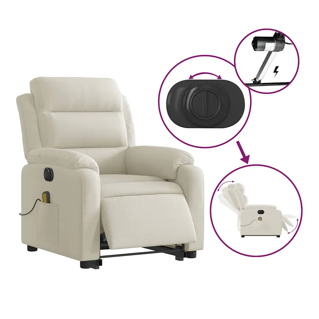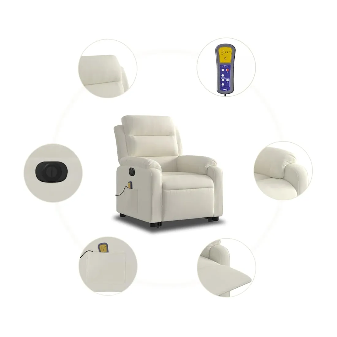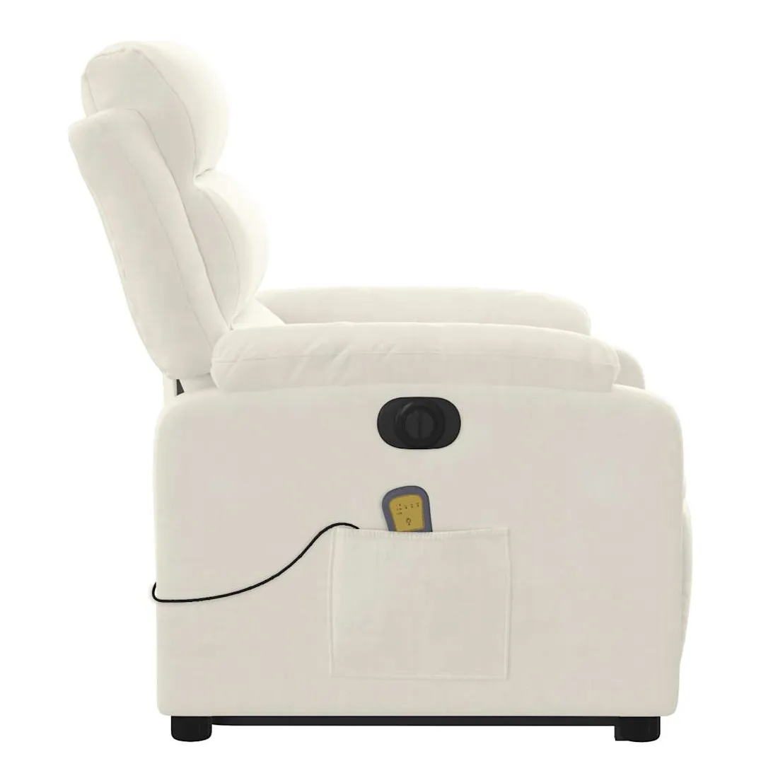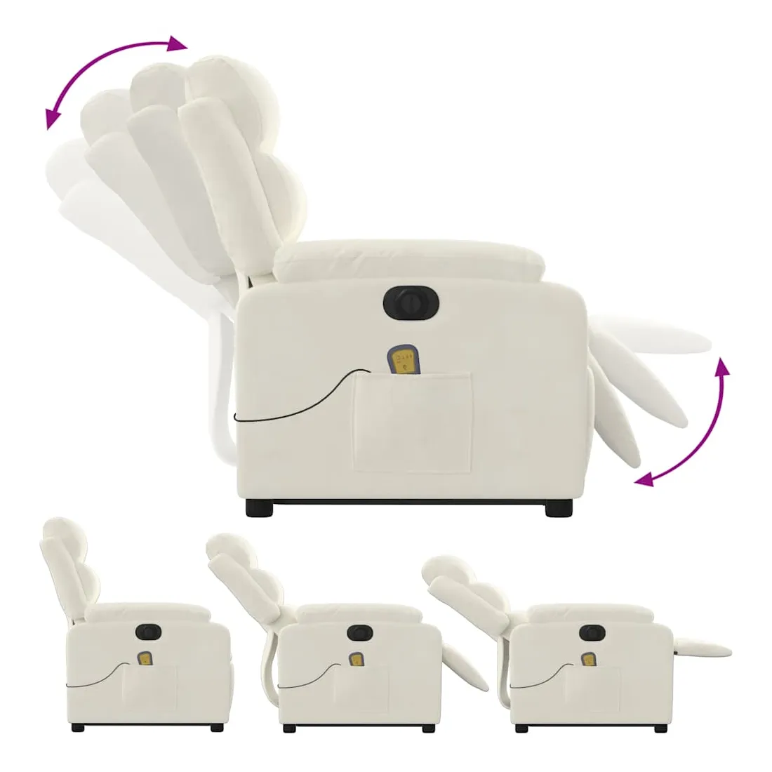Asseyez-vous et détendez-vous dans ce fauteuil inclinable de massage électrique très confortable ! Fonction de levage électrique : ce fauteuil inclinable pour personnes âgées est équipé d'un moteur électrique pour la fonction de levage. Grâce à la fonction qui pousse toute la chaise vers le haut, vous pouvez facilement vous tenir debout sans stresser votre dos et vos genoux en appuyant simplement sur le bouton.Fonction d'inclinaison électrique : ce fauteuil inclinable est également équipé d'un moteur électrique qui permet de régler automatiquement le repose-pied et le dossier dans n'importe quelle position, selon votre confort, en appuyant simplement sur le bouton situé sur le côté du fauteuil. Cette fonction permet une inclinaison maximale de 135 degrés. En outre, le dossier peut revenir automatiquement à sa position d'origine par une simple pression sur le bouton.Fonction de vibration : les 6 points de massage vous permettent de faire l'expérience d'un massage mieux ciblé. De plus, la télécommande incluse vous permet de choisir différents programmes de massage. La fonction de massage est alimentée par le connecteur USB qui nécessite une source d'alimentation USB certifiée de 5 V (non fournie).Expérience d'assise confortable : le siège, le dossier et les larges accoudoirs rembourrés épais recouverts de velours procurent une sensation confortable et chaleureuse, vous faisant vous sentir enlacé lorsque vous êtes assis. Le velours est un tissu doux et confortable qui est agréable sur la peau.Poche latérale pratique : ce fauteuil est doté d'une poche latérale pour ranger votre télécommande ou garder vos objets essentiels à portée de main.Cadre solide et stable : le cadre en bois et en métal offre une structure solide et une grande stabilité. Ce fauteuil inclinable est confortable et durable.