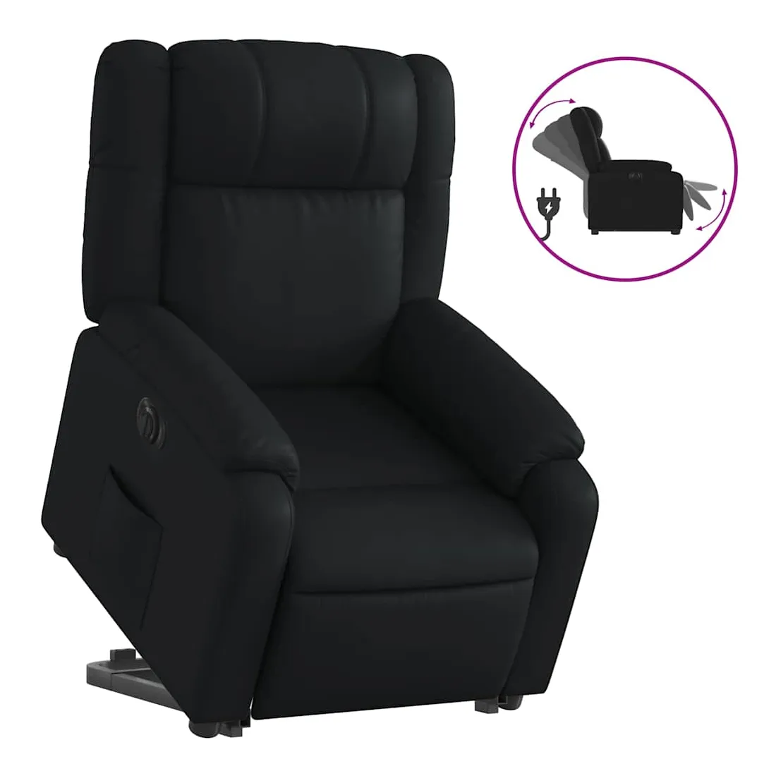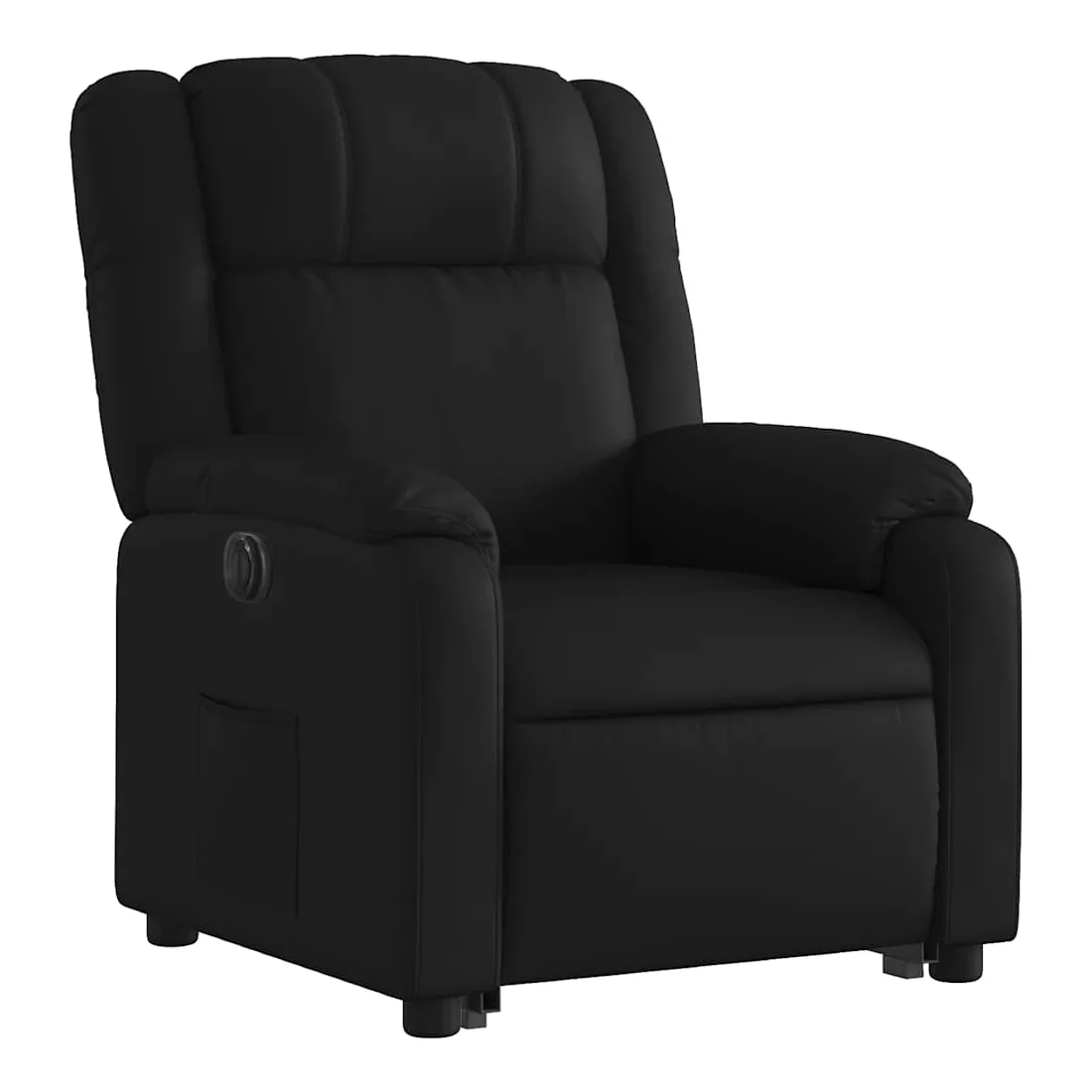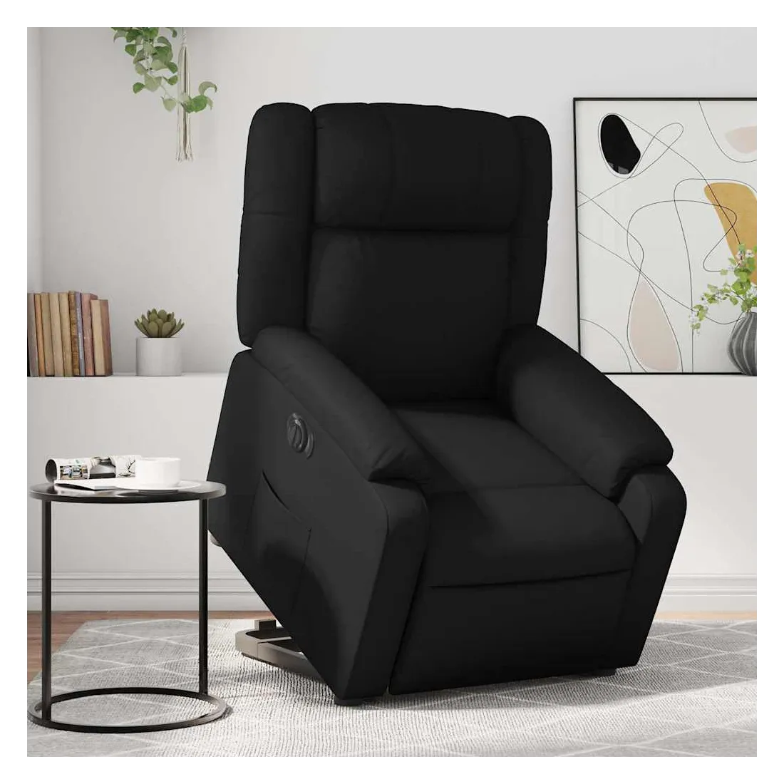Asseyez-vous et détendez-vous dans ce fauteuil inclinable électrique très confortable ! Fonction de levage électrique : ce fauteuil inclinable pour personnes âgées est équipé d'un moteur électrique pour la fonction de levage. Grâce à la fonction qui pousse toute la chaise vers le haut, vous pouvez facilement vous tenir debout sans stresser votre dos et vos genoux en appuyant simplement sur le bouton.Fonction d'inclinaison électrique : ce fauteuil inclinable est également équipé d'un moteur électrique qui permet de régler automatiquement le repose-pied et le dossier dans n'importe quelle position, selon votre confort, en appuyant simplement sur le bouton situé sur le côté du fauteuil. Cette fonction permet une inclinaison maximale de 135 degrés. En outre, le dossier peut revenir automatiquement à sa position d'origine par une simple pression sur le bouton.Expérience de siège confortable : le siège, le dossier et les larges accoudoirs rembourrés épais recouverts de similicuir procurent une sensation confortable et chaleureuse, vous faisant vous sentir enlacé lorsque vous êtes assis. Le simili cuir est un matériau très résistant. Il est résistant aux taches, ce qui le rend facile à nettoyer avec un chiffon humide. La surface lisse donne également un aspect luxueux et la beauté du cuir véritable.Poche latérale pratique : ce fauteuil est doté d'une poche latérale pour vous permettre de garder vos objets essentiels à portée de main.Cadre solide et stable : le cadre en bois et en métal offre une structure solide et une grande stabilité. Ce fauteuil inclinable est confortable et durable.