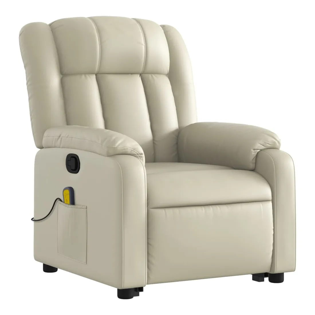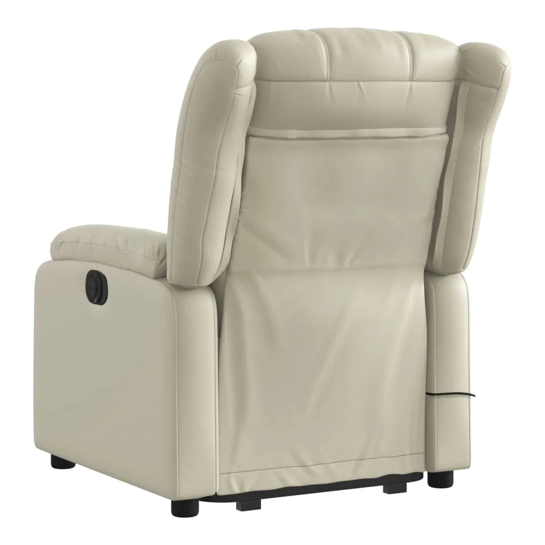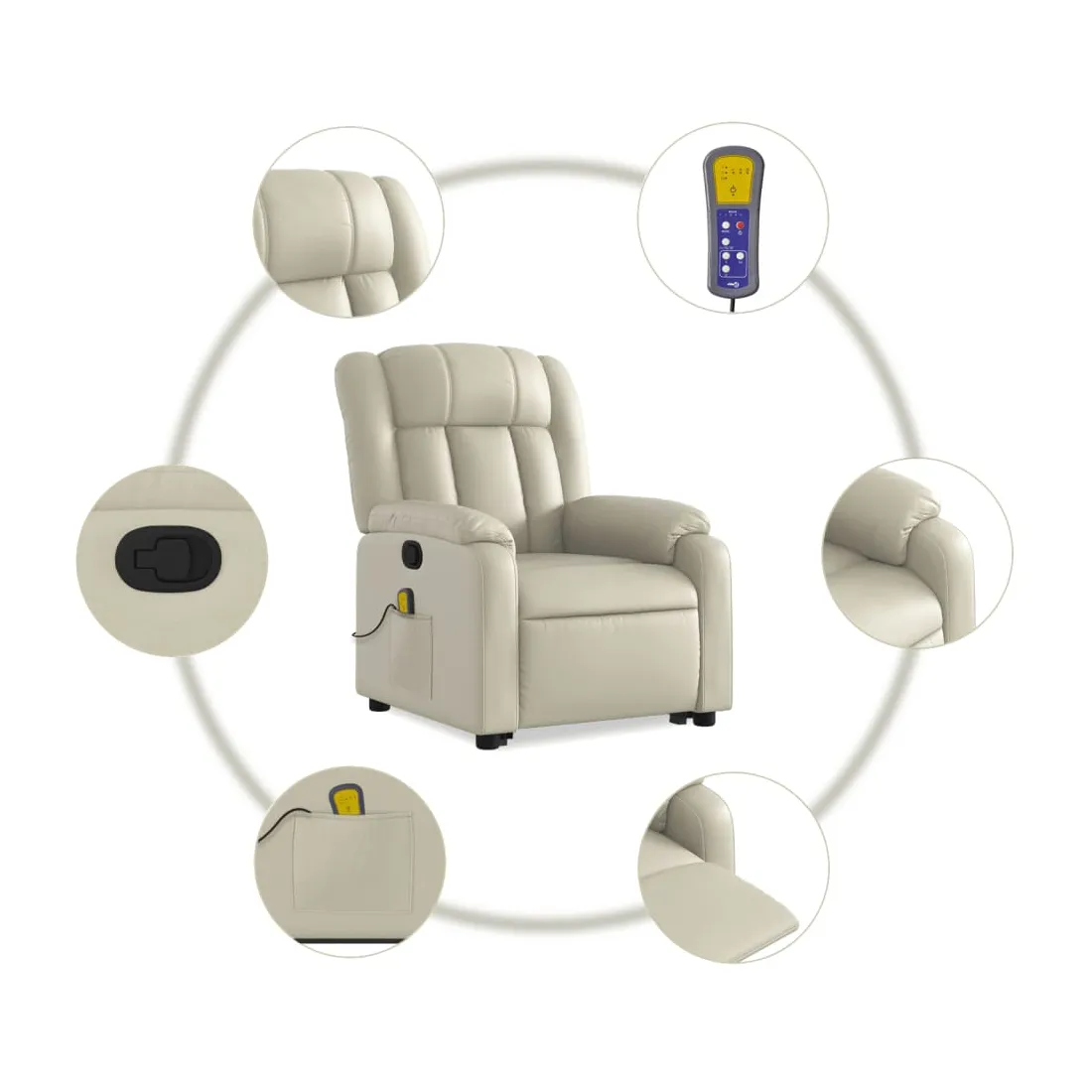 Asseyez-vous et détendez-vous dans ce fauteuil inclinable de massage très confortable ! Fonction de levage électrique : ce fauteuil inclinable pour personnes âgées est équipé d'un moteur électrique pour la fonction de levage. Grâce à la fonction qui pousse toute la chaise vers le haut, vous pouvez facilement vous tenir debout sans stresser votre dos et vos genoux en appuyant simplement sur le bouton.Fonction d'inclinaison manuelle : ce fauteuil inclinable est doté d'une poignée du côté droit. Vous pouvez régler manuellement le repose-pieds et le dossier dans n'importe quelle position selon votre confort en tirant simplement sur la poignée. Cette fonction permet une inclinaison maximale de 135 degrés. De plus, le dossier peut revenir rapidement à sa position d'origine en tirant simplement sur la poignée.Fonction de vibration : les 6 points de massage vous permettent de faire l'expérience d'un massage mieux ciblé. De plus, la télécommande incluse vous permet de choisir différents programmes de massage. La fonction de massage est alimentée par le connecteur USB qui nécessite une source d'alimentation USB certifiée de 5 V (non fournie).Expérience de siège confortable : le siège, le dossier et les larges accoudoirs rembourrés épais recouverts de similicuir procurent une sensation confortable et chaleureuse, vous faisant vous sentir enlacé lorsque vous êtes assis. Le simili cuir est un matériau très résistant. Il est résistant aux taches, ce qui le rend facile à nettoyer avec un chiffon humide. La surface lisse donne également un aspect luxueux et la beauté du cuir véritable.Poche latérale pratique : ce fauteuil est doté d'une poche latérale pour ranger votre télécommande ou garder vos objets essentiels à portée de main.Cadre solide et stable : le cadre en bois et en métal offre une structure solide et une grande stabilité. Ce fauteuil inclinable est confortable et durable.