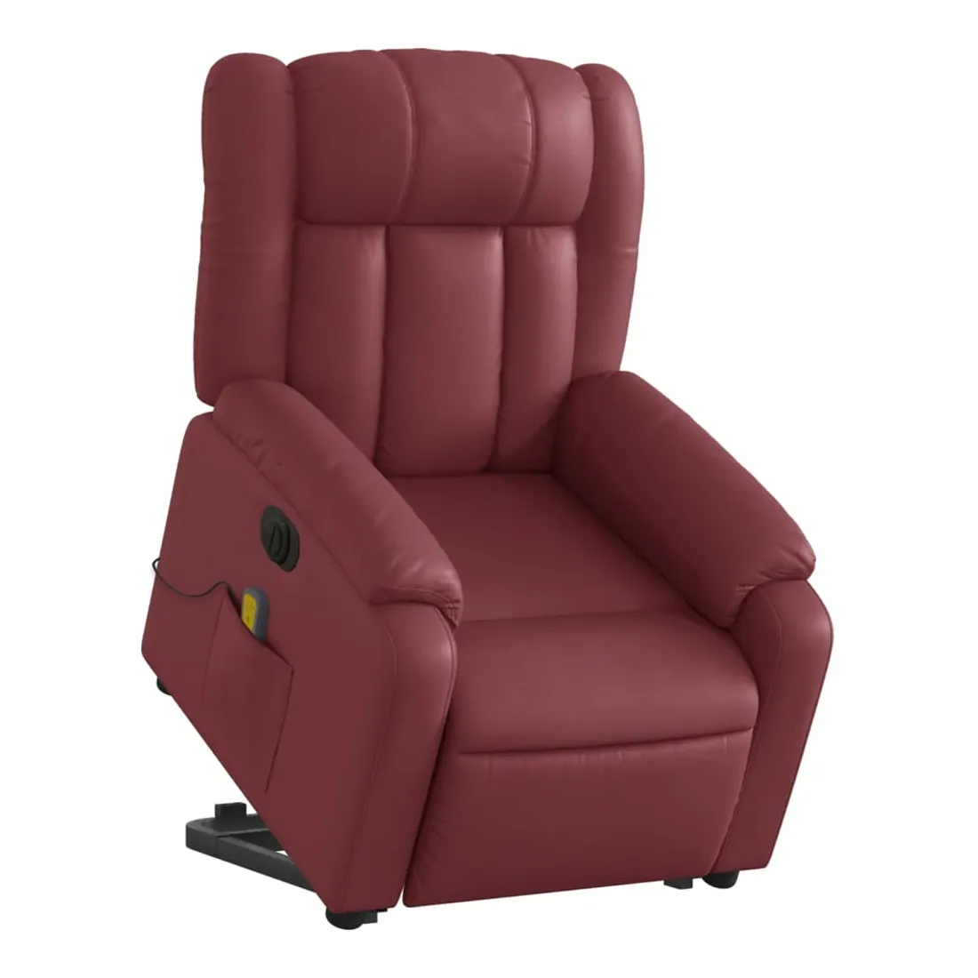 Asseyez-vous et détendez-vous dans ce fauteuil inclinable de massage électrique très confortable ! Fonction de levage électrique : ce fauteuil inclinable pour personnes âgées est équipé d'un moteur électrique pour la fonction de levage. Grâce à la fonction qui pousse toute la chaise vers le haut, vous pouvez facilement vous tenir debout sans stresser votre dos et vos genoux en appuyant simplement sur le bouton.Fonction d'inclinaison électrique : ce fauteuil inclinable est également équipé d'un moteur électrique qui permet de régler automatiquement le repose-pied et le dossier dans n'importe quelle position, selon votre confort, en appuyant simplement sur le bouton situé sur le côté du fauteuil. Cette fonction permet une inclinaison maximale de 135 degrés. En outre, le dossier peut revenir automatiquement à sa position d'origine par une simple pression sur le bouton.Fonction de vibration : les 6 points de massage vous permettent de faire l'expérience d'un massage mieux ciblé. De plus, la télécommande incluse vous permet de choisir différents programmes de massage. La fonction de massage est alimentée par le connecteur USB qui nécessite une source d'alimentation USB certifiée de 5 V (non fournie).Expérience de siège confortable : le siège, le dossier et les larges accoudoirs rembourrés épais recouverts de similicuir procurent une sensation confortable et chaleureuse, vous faisant vous sentir enlacé lorsque vous êtes assis. Le simili cuir est un matériau très résistant. Il est résistant aux taches, ce qui le rend facile à nettoyer avec un chiffon humide. La surface lisse donne également un aspect luxueux et la beauté du cuir véritable.Poche latérale pratique : ce fauteuil est doté d'une poche latérale pour ranger votre télécommande ou garder vos objets essentiels à portée de main.Cadre solide et stable : le cadre en bois et en métal offre une structure solide et une grande stabilité. Ce fauteuil inclinable est confortable et durable.