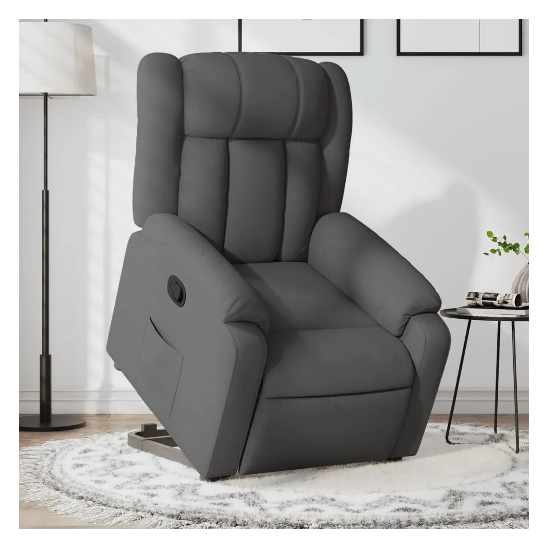 Asseyez-vous et détendez-vous dans ce fauteuil inclinable très confortable ! Fonction de levage électrique : ce fauteuil inclinable pour personnes âgées est équipé d'un moteur électrique pour la fonction de levage. Grâce à la fonction qui pousse toute la chaise vers le haut, vous pouvez facilement vous tenir debout sans stresser votre dos et vos genoux en appuyant simplement sur le bouton. Fonction d'inclinaison manuelle : ce fauteuil inclinable est doté d'une poignée du côté droit. Vous pouvez régler manuellement le repose-pieds et le dossier dans n'importe quelle position selon votre confort en tirant simplement sur la poignée. Cette fonction permet une inclinaison maximale de 135 degrés. De plus, le dossier peut revenir rapidement à sa position d'origine en tirant simplement sur la poignée. Expérience d'assise confortable : le siège, le dossier et les larges accoudoirs bien rembourrés recouverts de tissu procurent une sensation confortable et chaleureuse, vous permettant de vous sentir enveloppé lorsque vous êtes assis. Le tissu présente un aspect simple et épuré et est respirant et durable. Poche latérale pratique : ce fauteuil est doté d'une poche latérale pour vous permettre de garder vos objets essentiels à portée de main. Cadre solide et stable : le cadre en bois et en métal offre une structure solide et une grande stabilité. Ce fauteuil inclinable est confortable et durable.