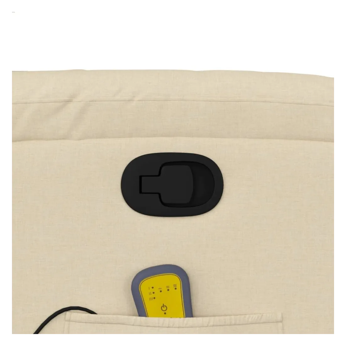 Asseyez-vous et détendez-vous dans ce fauteuil inclinable de massage très confortable ! Fonction d'inclinaison manuelle : ce fauteuil inclinable est doté d'une poignée du côté droit. Vous pouvez régler manuellement le repose-pieds et le dossier dans n'importe quelle position selon votre confort en tirant simplement sur la poignée. Cette fonction permet une inclinaison maximale de 135 degrés. De plus, le dossier peut revenir rapidement à sa position d'origine en tirant simplement sur la poignée.Fonction de vibration : les 6 points de massage vous permettent de faire l'expérience d'un massage mieux ciblé. De plus, la télécommande incluse vous permet de choisir différents programmes de massage. La fonction de massage est alimentée par le connecteur USB, mais la source d'alimentation USB 5V certifiée n'est pas incluse.Expérience d'assise confortable : le siège, le dossier et les larges accoudoirs bien rembourrés recouverts de tissu procurent une sensation confortable et chaleureuse, vous permettant de vous sentir enveloppé lorsque vous êtes assis. Le tissu présente un aspect simple et épuré et est respirant et durable.Poche latérale pratique : ce fauteuil est doté d'une poche latérale pour ranger votre télécommande ou garder vos objets essentiels à portée de main.Cadre solide et stable : le cadre en bois et en métal offre une structure solide et une grande stabilité. Ce fauteuil inclinable est confortable et durable.