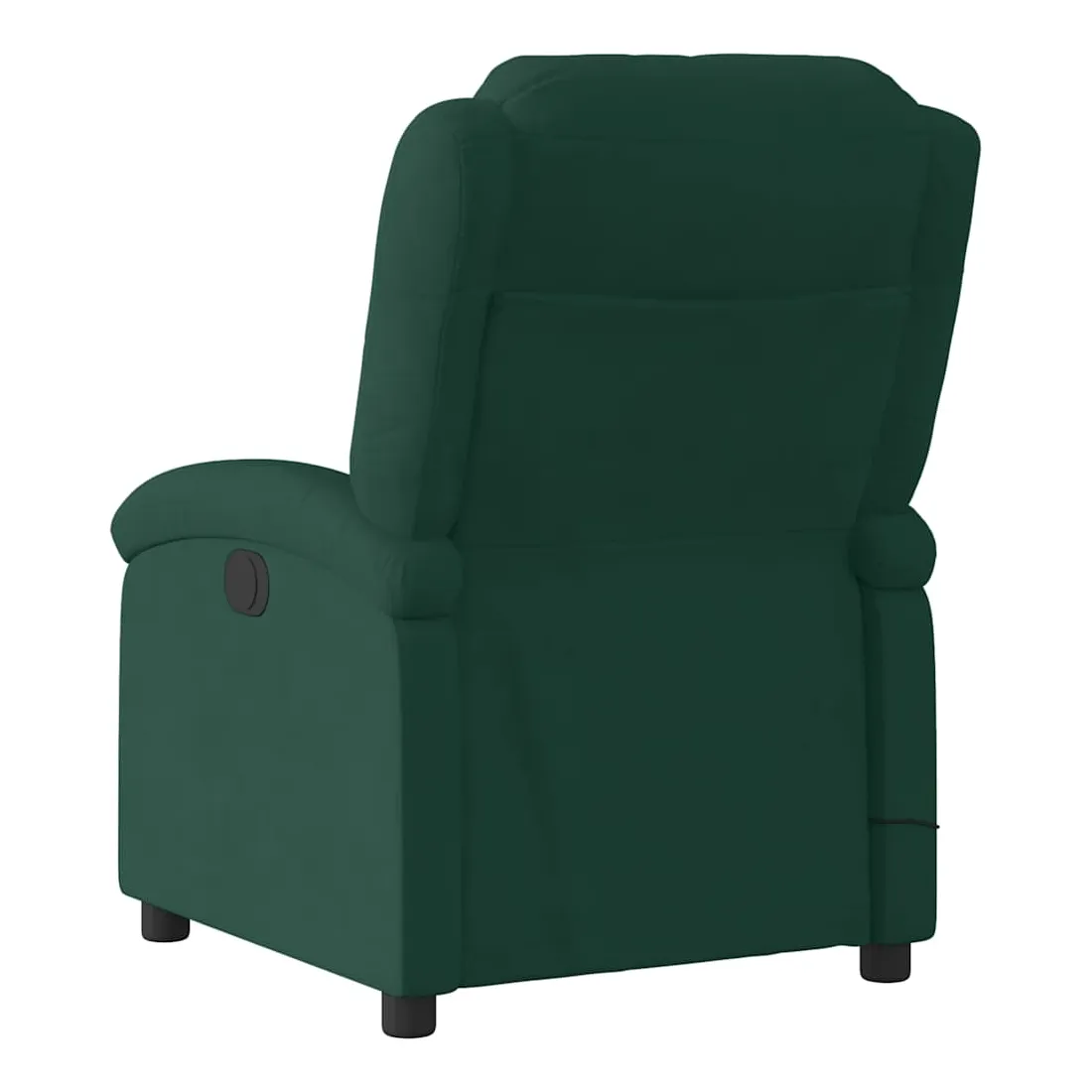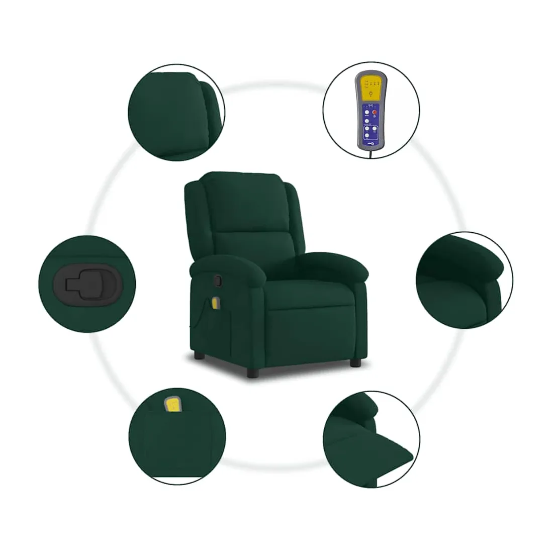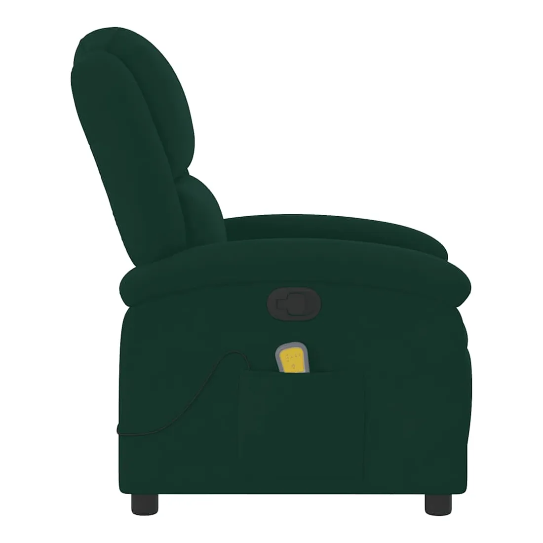 Asseyez-vous et détendez-vous dans ce fauteuil inclinable de massage très confortable ! Fonction d'inclinaison manuelle : ce fauteuil inclinable est doté d'une poignée du côté droit. Vous pouvez régler manuellement le repose-pieds et le dossier dans n'importe quelle position selon votre confort en tirant simplement sur la poignée. Cette fonction permet une inclinaison maximale de 135 degrés. De plus, le dossier peut revenir rapidement à sa position d'origine en tirant simplement sur la poignée.Fonction de vibration : les 6 points de massage vous permettent de faire l'expérience d'un massage mieux ciblé. De plus, la télécommande incluse vous permet de choisir différents programmes de massage. La fonction de massage est alimentée par le connecteur USB, mais la source d'alimentation USB 5V certifiée n'est pas incluse.Expérience d'assise confortable : le siège, le dossier et les larges accoudoirs rembourrés épais recouverts de velours procurent une sensation confortable et chaleureuse, vous faisant vous sentir enlacé lorsque vous êtes assis. Le velours est un tissu doux et confortable qui est agréable sur la peau.Poche latérale pratique : ce fauteuil est doté d'une poche latérale pour ranger votre télécommande ou garder vos objets essentiels à portée de main.Cadre solide et stable : le cadre en bois et en métal offre une structure solide et une grande stabilité. Ce fauteuil inclinable est confortable et durable.