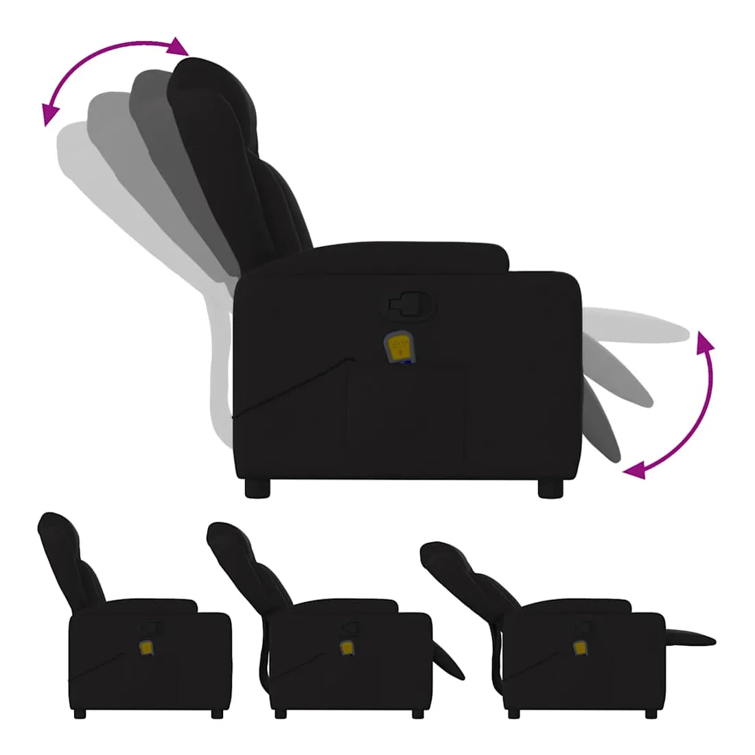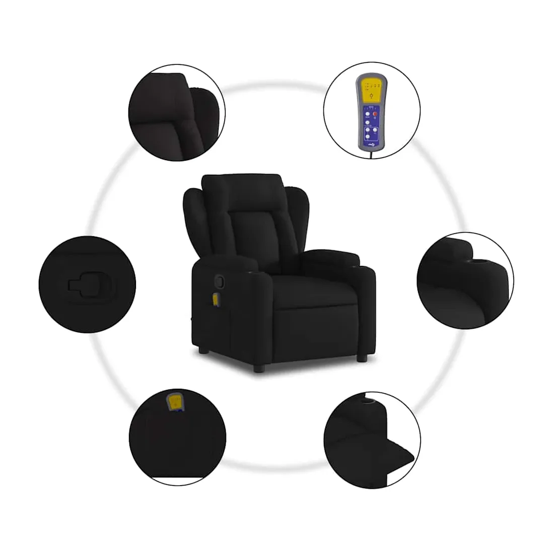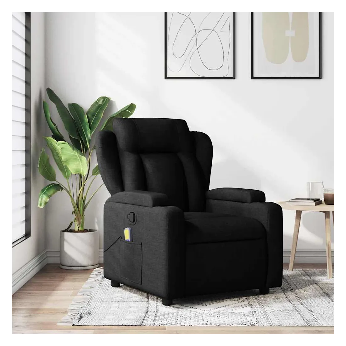Asseyez-vous et détendez-vous dans ce fauteuil inclinable de massage très confortable ! Fonction d'inclinaison manuelle : ce fauteuil inclinable est doté d'une poignée du côté droit. Vous pouvez régler manuellement le repose-pieds et le dossier dans n'importe quelle position selon votre confort en tirant simplement sur la poignée. Cette fonction permet une inclinaison maximale de 135 degrés. De plus, le dossier peut revenir rapidement à sa position d'origine en tirant simplement sur la poignée.Fonction de vibration : les 6 points de massage vous permettent de faire l'expérience d'un massage mieux ciblé. De plus, la télécommande incluse vous permet de choisir différents programmes de massage. La fonction de massage est alimentée par le connecteur USB, mais la source d'alimentation USB 5V certifiée n'est pas incluse.Expérience d'assise confortable : le siège, le dossier et les larges accoudoirs bien rembourrés recouverts de tissu procurent une sensation confortable et chaleureuse, vous permettant de vous sentir enveloppé lorsque vous êtes assis. Le tissu présente un aspect simple et épuré et est respirant et durable.Porte-gobelets et poche latérale pratiques : ce fauteuil dispose de deux porte-gobelets pratiques pour vos boissons et d'une poche latérale pour votre télécommande ou pour garder vos objets essentiels à portée de main.Cadre solide et stable : le cadre en bois et en métal offre une structure solide et une grande stabilité. Ce fauteuil inclinable est confortable et durable.