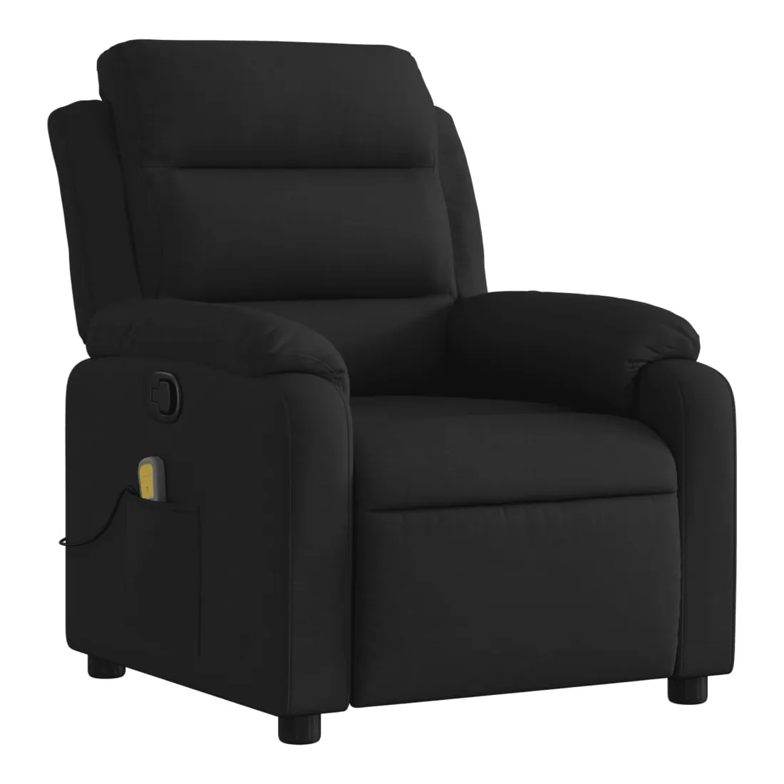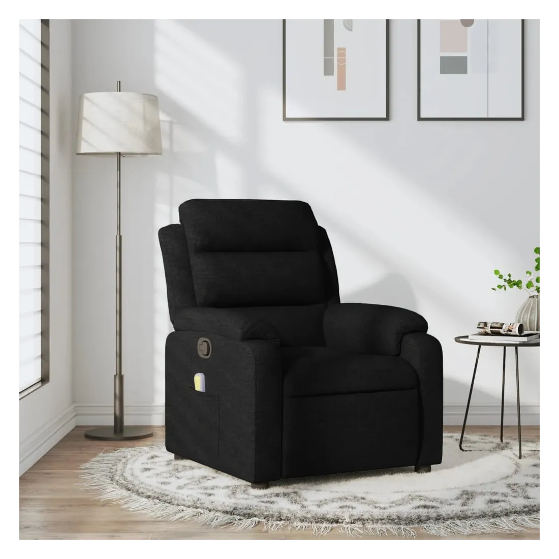 Asseyez-vous et détendez-vous dans ce fauteuil inclinable de massage très confortable ! Fonction d'inclinaison manuelle : ce fauteuil inclinable est doté d'une poignée du côté droit. Vous pouvez régler manuellement le repose-pieds et le dossier dans n'importe quelle position selon votre confort en tirant simplement sur la poignée. Cette fonction permet une inclinaison maximale de 135 degrés. De plus, le dossier peut revenir rapidement à sa position d'origine en tirant simplement sur la poignée.Fonction de vibration : les 6 points de massage vous permettent de faire l'expérience d'un massage mieux ciblé. De plus, la télécommande incluse vous permet de choisir différents programmes de massage. La fonction de massage est alimentée par le connecteur USB, mais la source d'alimentation USB 5V certifiée n'est pas incluse.Expérience d'assise confortable : le siège, le dossier et les larges accoudoirs bien rembourrés recouverts de tissu procurent une sensation confortable et chaleureuse, vous permettant de vous sentir enveloppé lorsque vous êtes assis. Le tissu présente un aspect simple et épuré et est respirant et durable.Poche latérale pratique : ce fauteuil est doté d'une poche latérale pour ranger votre télécommande ou garder vos objets essentiels à portée de main.Cadre solide et stable : le cadre en bois et en métal offre une structure solide et une grande stabilité. Ce fauteuil inclinable est confortable et durable.