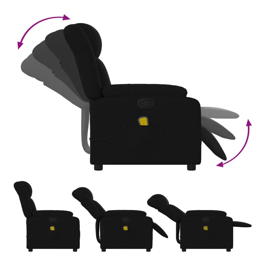 Asseyez-vous et détendez-vous dans ce fauteuil inclinable de massage très confortable ! Fonction d'inclinaison manuelle : ce fauteuil inclinable est doté d'une poignée du côté droit. Vous pouvez régler manuellement le repose-pieds et le dossier dans n'importe quelle position selon votre confort en tirant simplement sur la poignée. Cette fonction permet une inclinaison maximale de 135 degrés. De plus, le dossier peut revenir rapidement à sa position d'origine en tirant simplement sur la poignée.Fonction de vibration : les 6 points de massage vous permettent de faire l'expérience d'un massage mieux ciblé. De plus, la télécommande incluse vous permet de choisir différents programmes de massage. La fonction de massage est alimentée par le connecteur USB, mais la source d'alimentation USB 5V certifiée n'est pas incluse.Expérience d'assise confortable : le siège, le dossier et les larges accoudoirs bien rembourrés recouverts de tissu procurent une sensation confortable et chaleureuse, vous permettant de vous sentir enveloppé lorsque vous êtes assis. Le tissu présente un aspect simple et épuré et est respirant et durable.Poche latérale pratique : ce fauteuil est doté d'une poche latérale pour ranger votre télécommande ou garder vos objets essentiels à portée de main.Cadre solide et stable : le cadre en bois et en métal offre une structure solide et une grande stabilité. Ce fauteuil inclinable est confortable et durable.