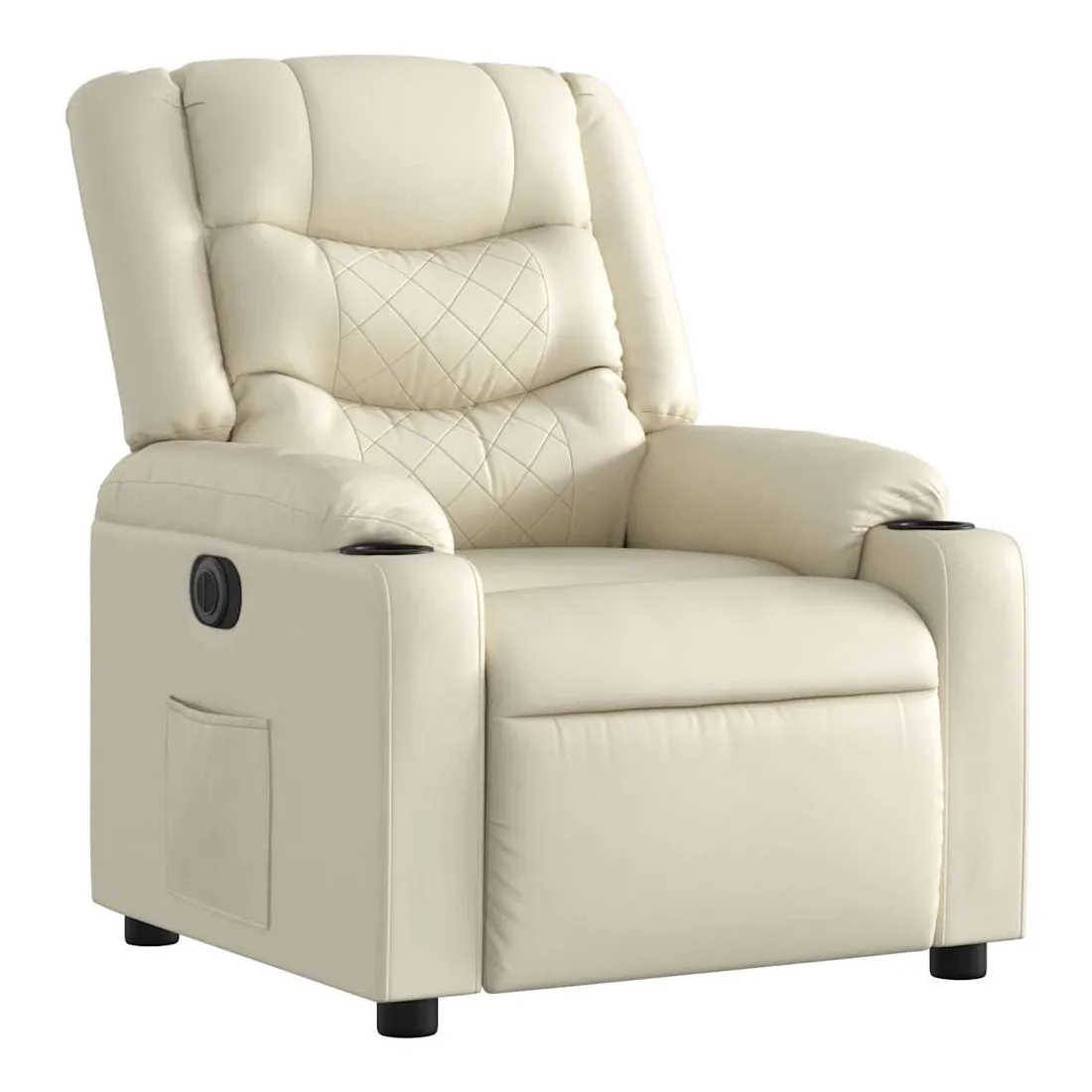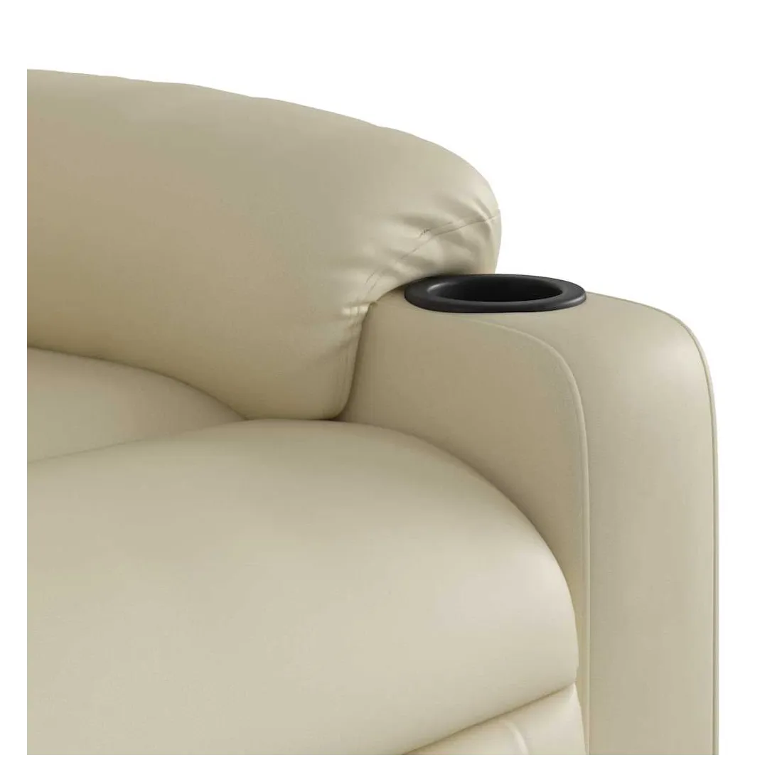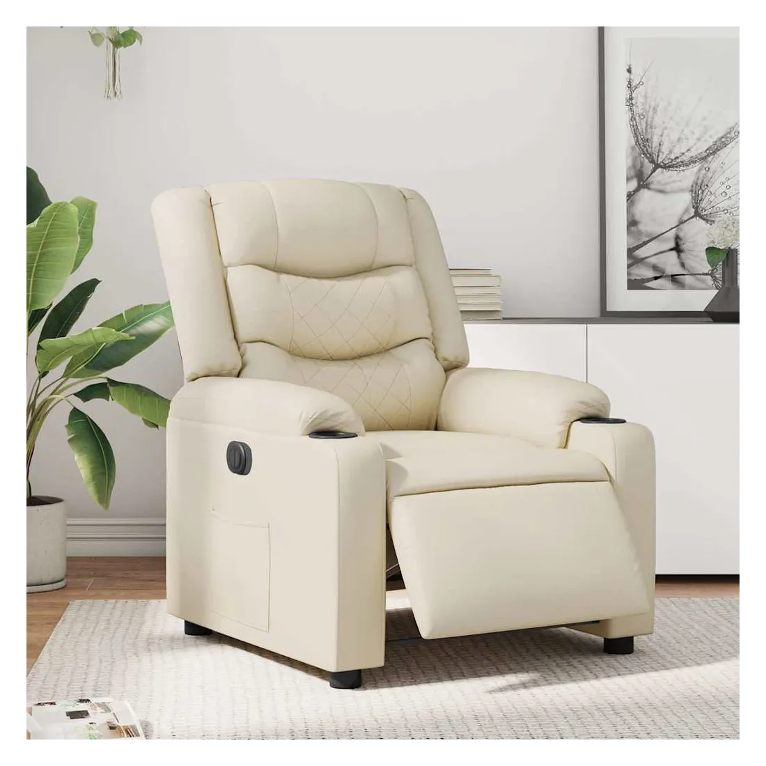 Asseyez-vous et détendez-vous dans ce fauteuil inclinable électrique très confortable ! Fonction d'inclinaison électrique : ce fauteuil inclinable est équipé d'un moteur électrique qui permet de régler automatiquement le repose-pied et le dossier dans n'importe quelle position, selon votre confort, en appuyant simplement sur le bouton situé sur le côté du fauteuil. Cette fonction permet une inclinaison maximale de 135 degrés. En outre, le dossier peut revenir automatiquement à sa position d'origine par une simple pression sur le bouton.Expérience de siège confortable : le siège, le dossier et les larges accoudoirs rembourrés épais recouverts de similicuir procurent une sensation confortable, vous faisant vous sentir enlacé lorsque vous êtes assis. Le similicuir est un matériau très résistant. Il est résistant aux taches, ce qui le rend facile à nettoyer avec un chiffon humide. La surface lisse donne également un aspect luxueux et la beauté du cuir véritable.Poche latérale pratique : ce fauteuil est doté d'une poche latérale pour vous permettre de garder vos objets essentiels à portée de main.Cadre solide et stable : le cadre en bois et en métal offre une structure solide et une grande stabilité. Ce fauteuil inclinable est confortable et durable.