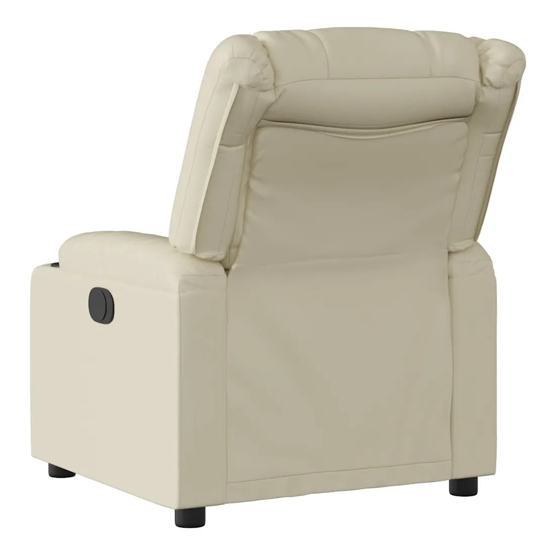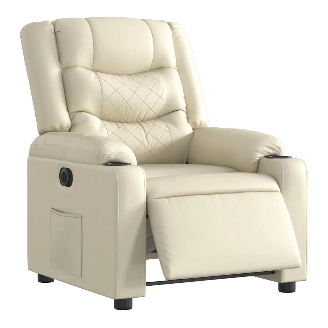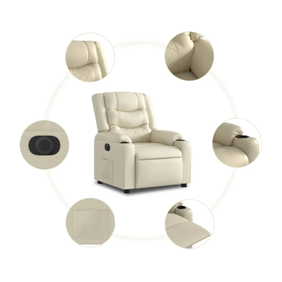 Asseyez-vous et détendez-vous dans ce fauteuil inclinable électrique très confortable ! Fonction d'inclinaison électrique : ce fauteuil inclinable est équipé d'un moteur électrique qui permet de régler automatiquement le repose-pied et le dossier dans n'importe quelle position, selon votre confort, en appuyant simplement sur le bouton situé sur le côté du fauteuil. Cette fonction permet une inclinaison maximale de 135 degrés. En outre, le dossier peut revenir automatiquement à sa position d'origine par une simple pression sur le bouton.Expérience de siège confortable : le siège, le dossier et les larges accoudoirs rembourrés épais recouverts de similicuir procurent une sensation confortable, vous faisant vous sentir enlacé lorsque vous êtes assis. Le similicuir est un matériau très résistant. Il est résistant aux taches, ce qui le rend facile à nettoyer avec un chiffon humide. La surface lisse donne également un aspect luxueux et la beauté du cuir véritable.Poche latérale pratique : ce fauteuil est doté d'une poche latérale pour vous permettre de garder vos objets essentiels à portée de main.Cadre solide et stable : le cadre en bois et en métal offre une structure solide et une grande stabilité. Ce fauteuil inclinable est confortable et durable.