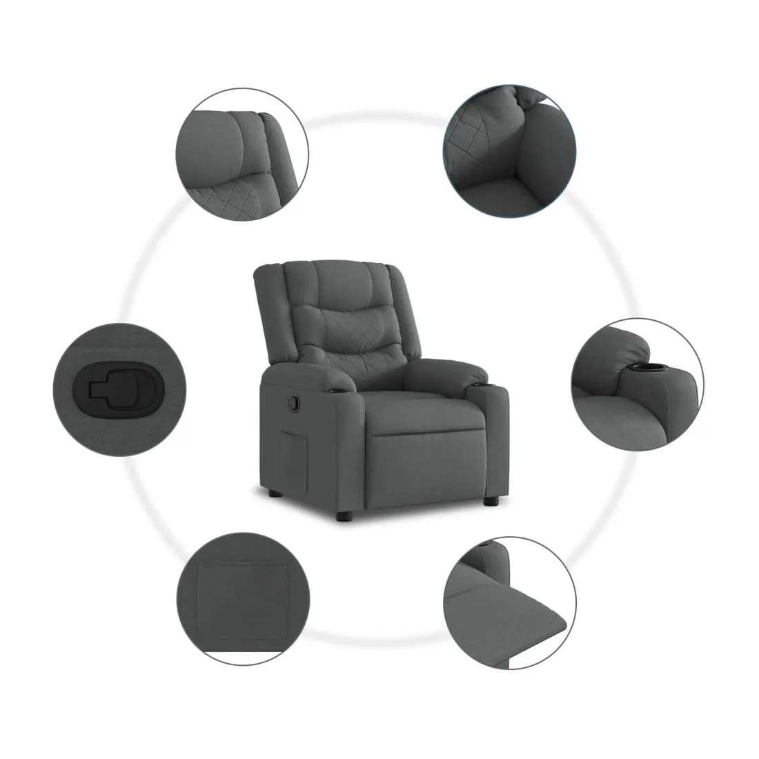 Asseyez-vous et détendez-vous dans ce fauteuil inclinable très confortable ! Fonction de levage électrique : ce fauteuil inclinable pour personnes âgées est équipé d'un moteur électrique pour la fonction de levage. Grâce à la fonction qui pousse toute la chaise vers le haut, vous pouvez facilement vous tenir debout sans stresser votre dos et vos genoux en appuyant simplement sur le bouton.Fonction d'inclinaison manuelle : ce fauteuil inclinable est doté d'une poignée du côté droit. Vous pouvez régler manuellement le repose-pieds et le dossier dans n'importe quelle position selon votre confort en tirant simplement sur la poignée. Cette fonction permet une inclinaison maximale de 135 degrés. De plus, le dossier peut revenir rapidement à sa position d'origine en tirant simplement sur la poignée.Expérience d'assise confortable : le siège, le dossier et les larges accoudoirs bien rembourrés recouverts de tissu procurent une sensation confortable et chaleureuse, vous permettant de vous sentir enveloppé lorsque vous êtes assis. Le tissu présente un aspect simple et épuré et est respirant et durable.Poche latérale pratique : ce fauteuil est doté d'une poche latérale pour vous permettre de garder vos objets essentiels à portée de main.Cadre solide et stable : le cadre en bois et en métal offre une structure solide et une grande stabilité. Ce fauteuil inclinable est confortable et durable.