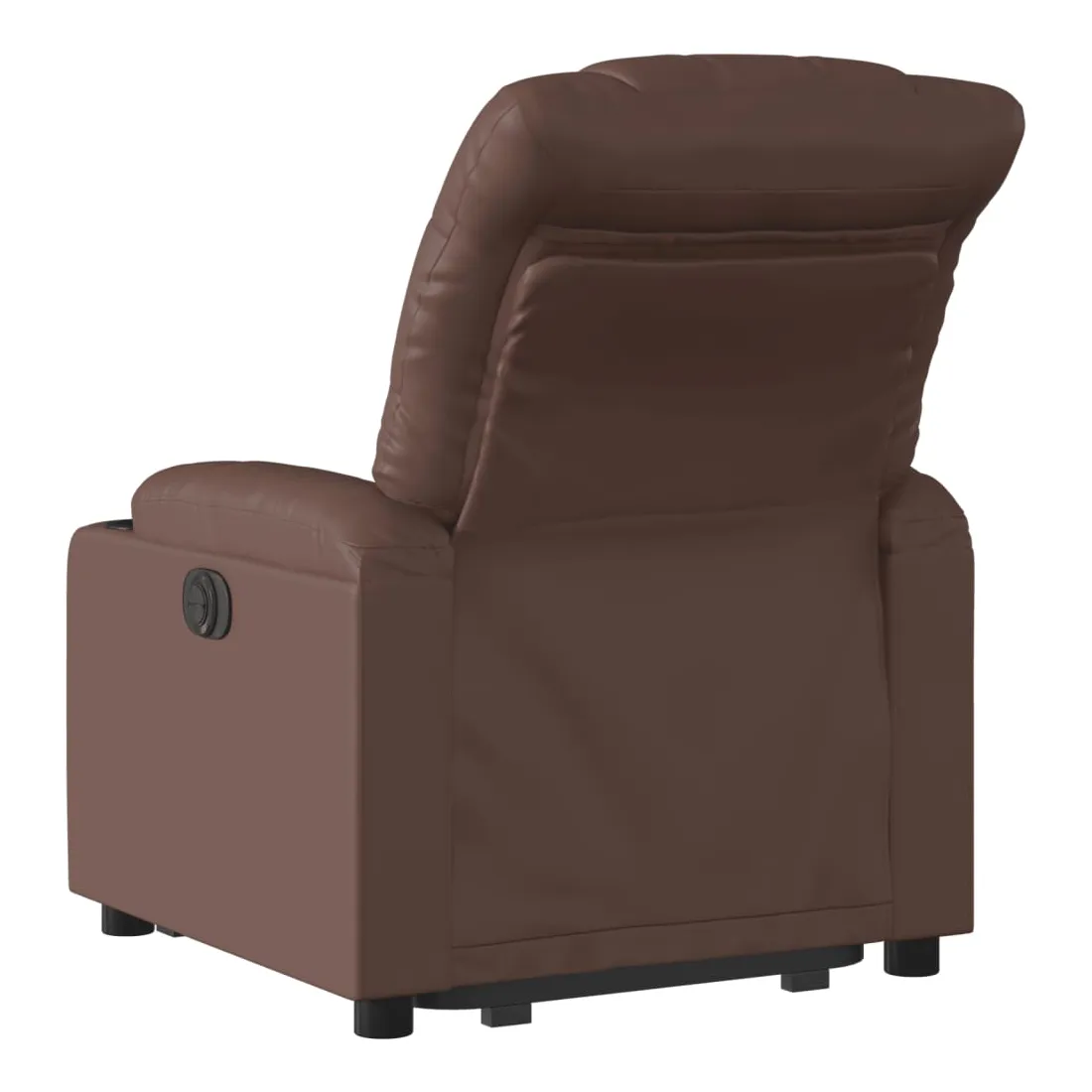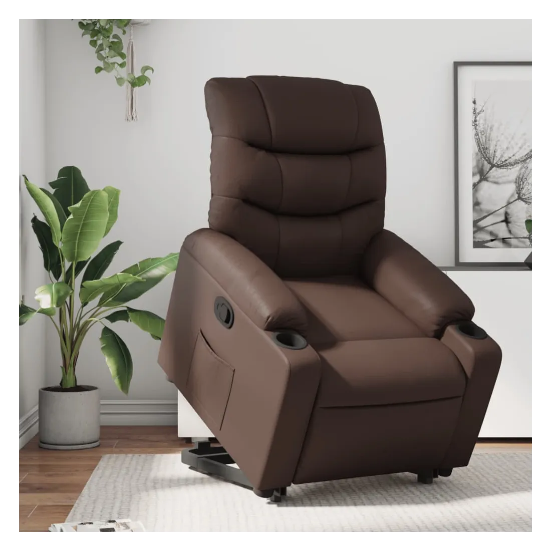 Asseyez-vous et détendez-vous dans ce fauteuil inclinable très confortable ! Fonction de levage électrique : ce fauteuil inclinable pour personnes âgées est équipé d'un moteur électrique pour la fonction de levage. Grâce à la fonction qui pousse toute la chaise vers le haut, vous pouvez facilement vous tenir debout sans stresser votre dos et vos genoux en appuyant simplement sur le bouton.Fonction d'inclinaison manuelle : ce fauteuil inclinable est doté d'une poignée du côté droit. Vous pouvez régler manuellement le repose-pieds et le dossier dans n'importe quelle position selon votre confort en tirant simplement sur la poignée. Cette fonction permet une inclinaison maximale de 135 degrés. De plus, le dossier peut revenir rapidement à sa position d'origine en tirant simplement sur la poignée.Expérience de siège confortable : le siège, le dossier et les larges accoudoirs rembourrés épais recouverts de similicuir procurent une sensation confortable et chaleureuse, vous faisant vous sentir enlacé lorsque vous êtes assis. Le simili cuir est un matériau très résistant. Il est résistant aux taches, ce qui le rend facile à nettoyer avec un chiffon humide. La surface lisse donne également un aspect luxueux et la beauté du cuir véritable.Poche latérale pratique : ce fauteuil est doté d'une poche latérale pour vous permettre de garder vos objets essentiels à portée de main.Cadre solide et stable : le cadre en bois et en métal offre une structure solide et une grande stabilité. Ce fauteuil inclinable est confortable et durable.