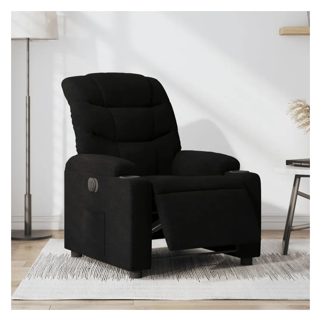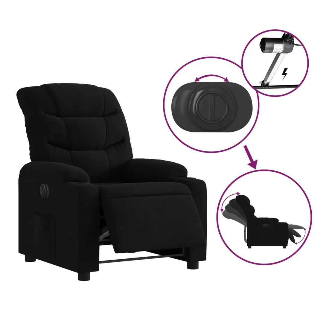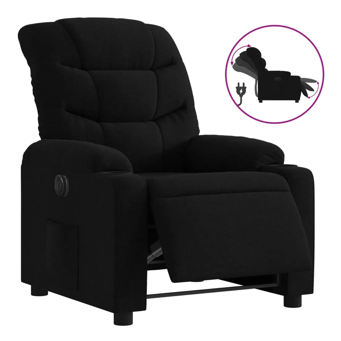 Asseyez-vous et détendez-vous dans ce fauteuil inclinable électrique très confortable ! Fonction d'inclinaison électrique : ce fauteuil inclinable est équipé d'un moteur électrique qui permet de régler automatiquement le repose-pied et le dossier dans n'importe quelle position, selon votre confort, en appuyant simplement sur le bouton situé sur le côté du fauteuil. Cette fonction permet une inclinaison maximale de 135 degrés. En outre, le dossier peut revenir automatiquement à sa position d'origine par une simple pression sur le bouton.Expérience d'assise confortable : le siège, le dossier et les larges accoudoirs bien rembourrés recouverts de tissu procurent une sensation confortable et chaleureuse, vous permettant de vous sentir enveloppé lorsque vous êtes assis. Le tissu présente un aspect simple et épuré et est respirant et durable.Poche latérale pratique : ce fauteuil est doté d'une poche latérale pour vous permettre de garder vos objets essentiels à portée de main.Cadre solide et stable : le cadre en bois et en métal offre une structure solide et une grande stabilité. Ce fauteuil inclinable est confortable et durable.