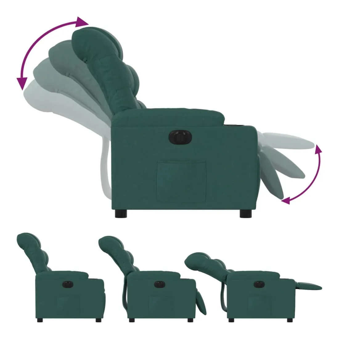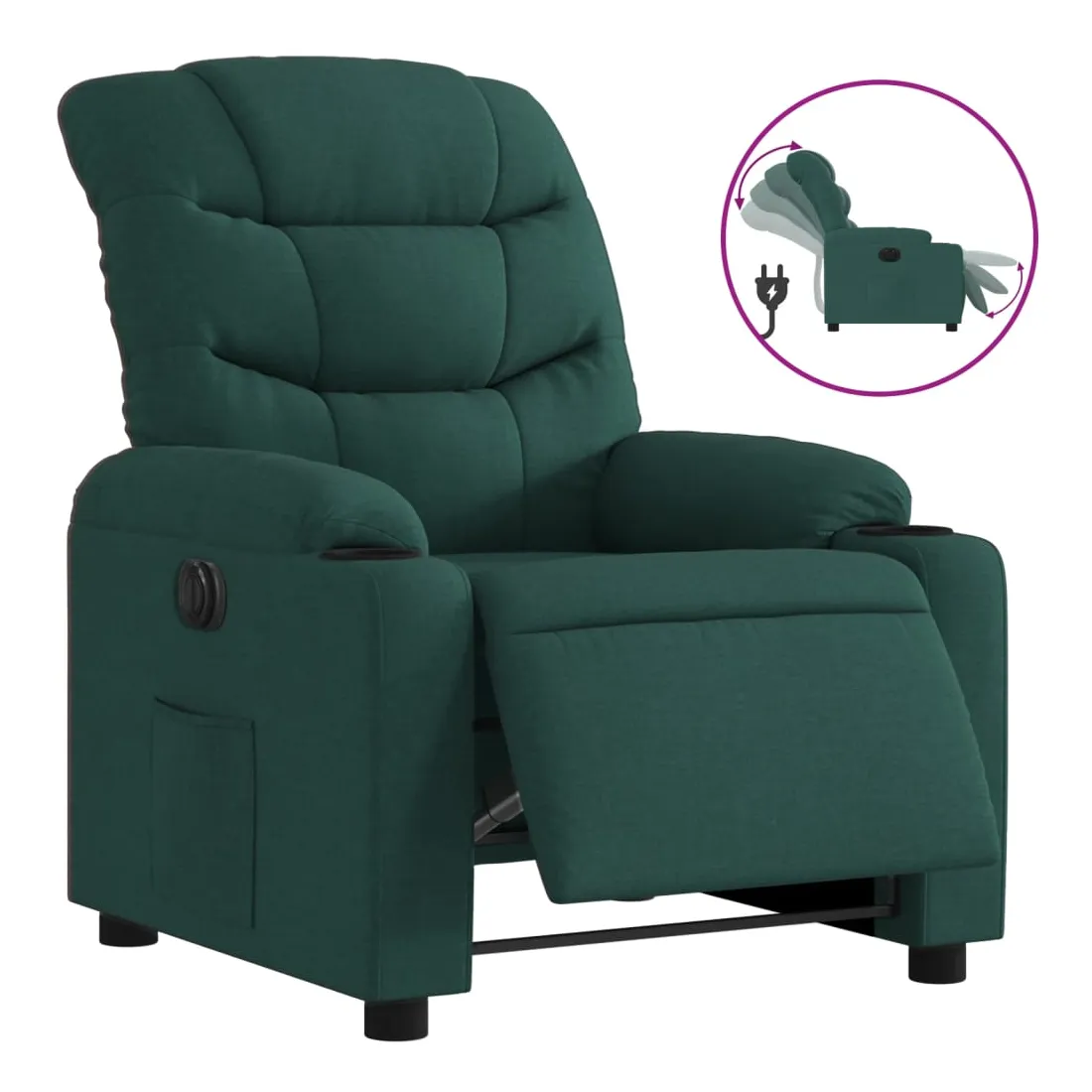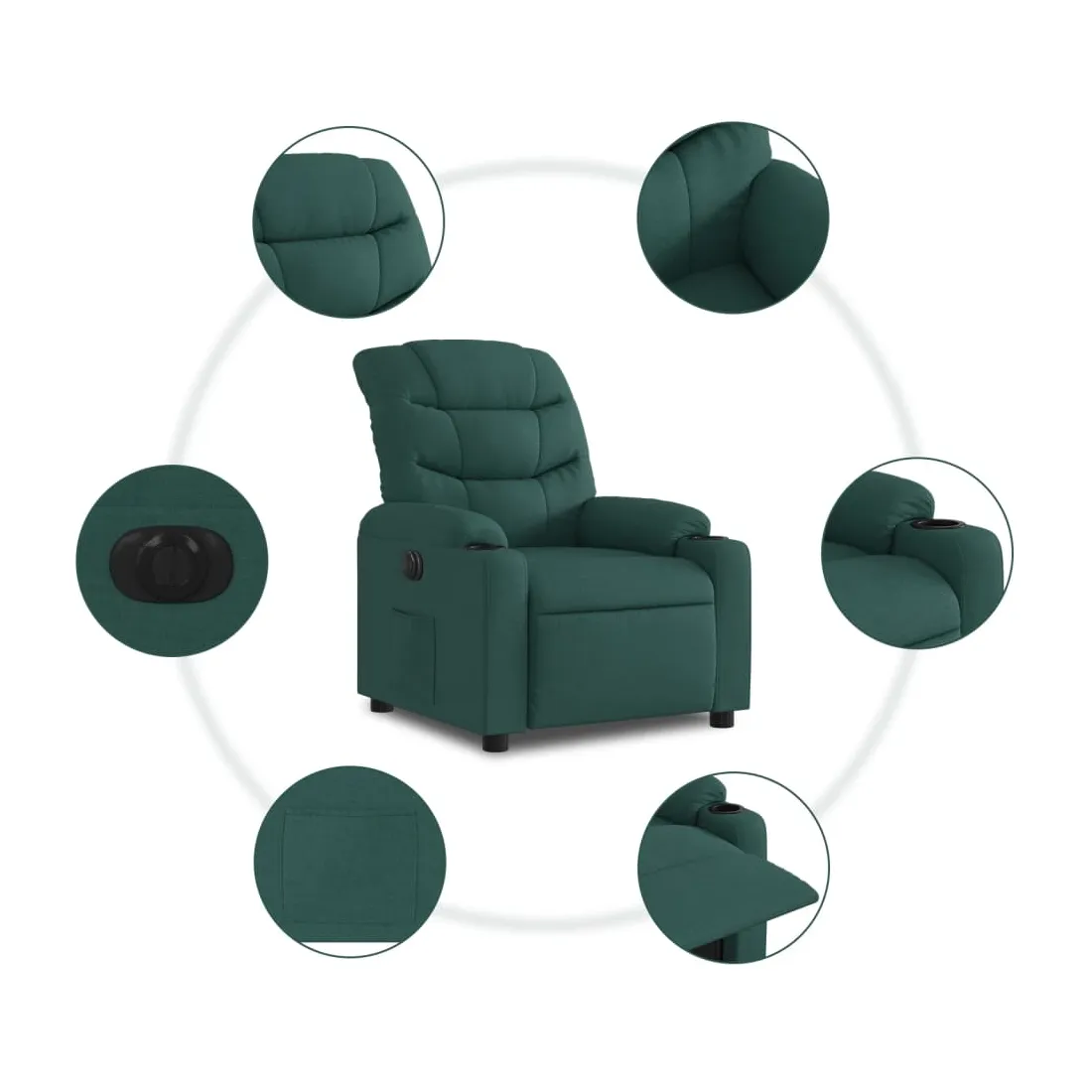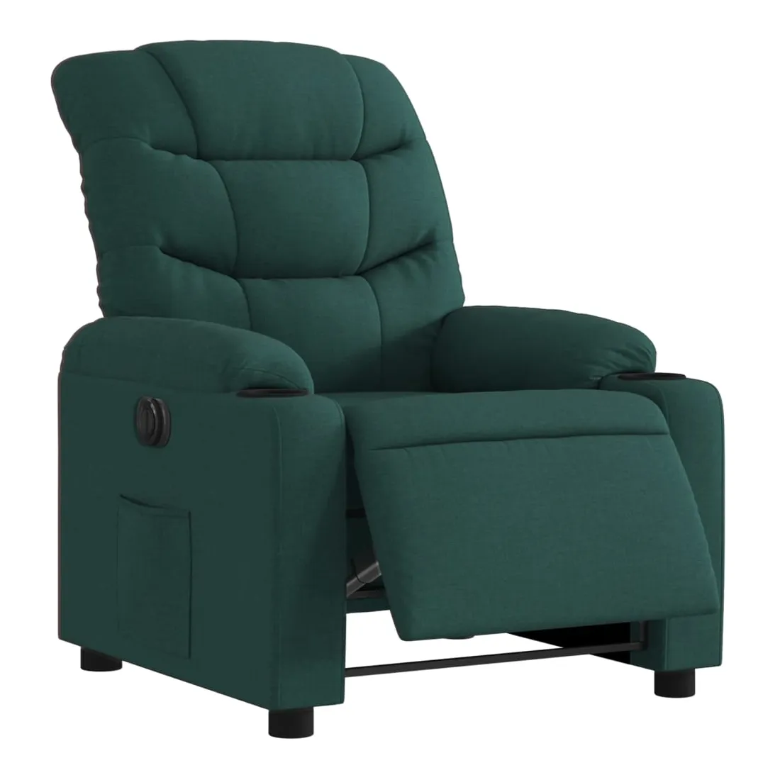Asseyez-vous et détendez-vous dans ce fauteuil inclinable électrique très confortable ! Fonction d'inclinaison électrique : ce fauteuil inclinable est équipé d'un moteur électrique qui permet de régler automatiquement le repose-pied et le dossier dans n'importe quelle position, selon votre confort, en appuyant simplement sur le bouton situé sur le côté du fauteuil. Cette fonction permet une inclinaison maximale de 135 degrés. En outre, le dossier peut revenir automatiquement à sa position d'origine par une simple pression sur le bouton.Expérience d'assise confortable : le siège, le dossier et les larges accoudoirs bien rembourrés recouverts de tissu procurent une sensation confortable et chaleureuse, vous permettant de vous sentir enveloppé lorsque vous êtes assis. Le tissu présente un aspect simple et épuré et est respirant et durable.Poche latérale pratique : ce fauteuil est doté d'une poche latérale pour vous permettre de garder vos objets essentiels à portée de main.Cadre solide et stable : le cadre en bois et en métal offre une structure solide et une grande stabilité. Ce fauteuil inclinable est confortable et durable.