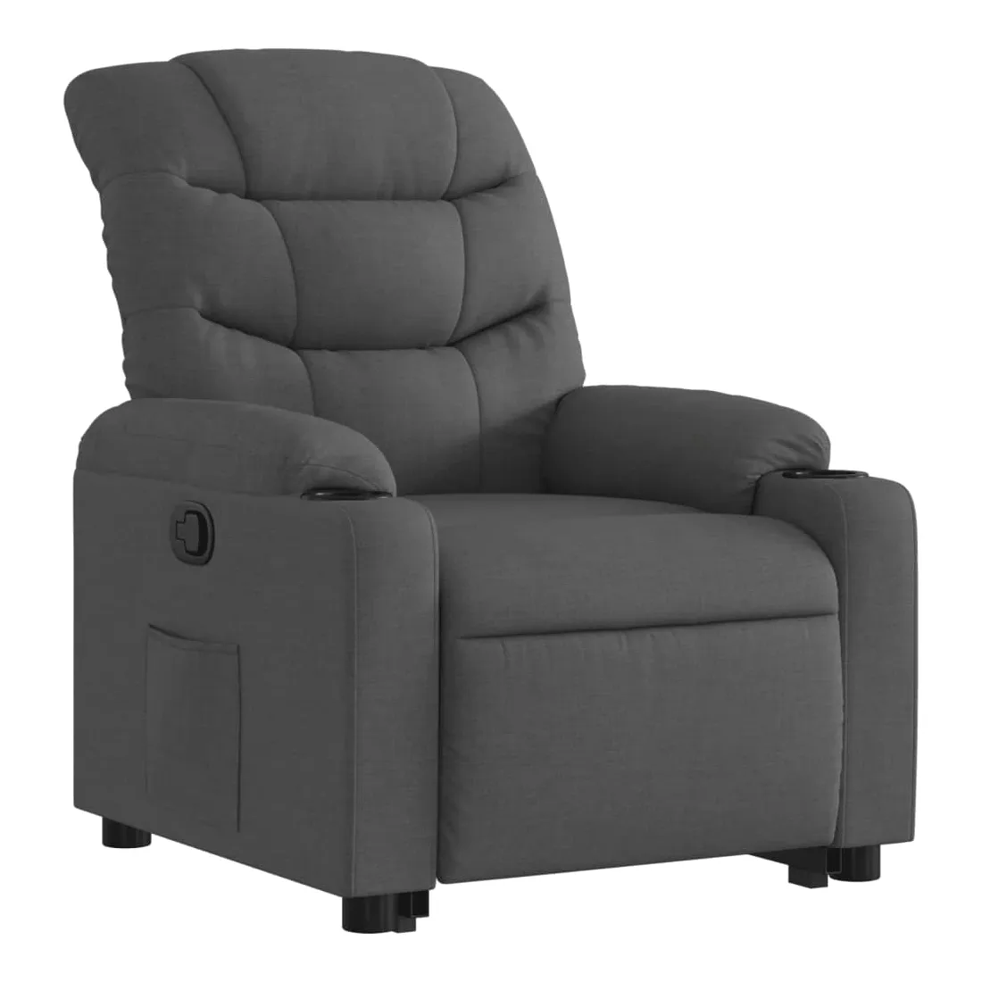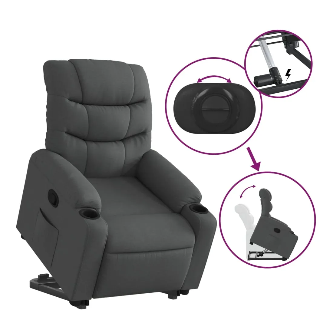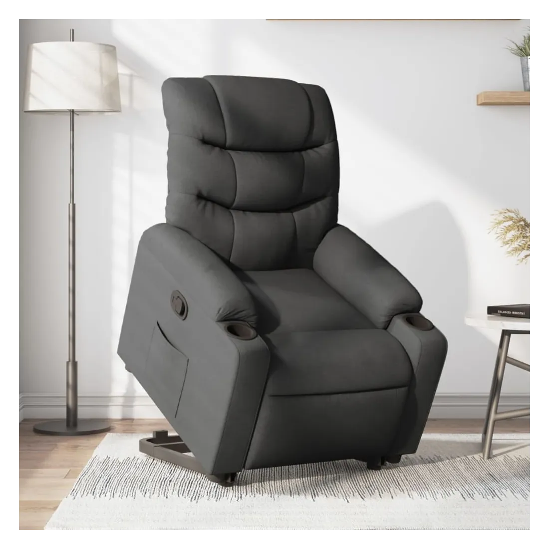 Asseyez-vous et détendez-vous dans ce fauteuil inclinable très confortable ! Fonction de levage électrique : ce fauteuil inclinable pour personnes âgées est équipé d'un moteur électrique pour la fonction de levage. Grâce à la fonction qui pousse toute la chaise vers le haut, vous pouvez facilement vous tenir debout sans stresser votre dos et vos genoux en appuyant simplement sur le bouton.Fonction d'inclinaison manuelle : ce fauteuil inclinable est doté d'une poignée du côté droit. Vous pouvez régler manuellement le repose-pieds et le dossier dans n'importe quelle position selon votre confort en tirant simplement sur la poignée. Cette fonction permet une inclinaison maximale de 135 degrés. De plus, le dossier peut revenir rapidement à sa position d'origine en tirant simplement sur la poignée.Expérience d'assise confortable : le siège, le dossier et les larges accoudoirs bien rembourrés recouverts de tissu procurent une sensation confortable et chaleureuse, vous permettant de vous sentir enveloppé lorsque vous êtes assis. Le tissu présente un aspect simple et épuré et est respirant et durable.Poche latérale pratique : ce fauteuil est doté d'une poche latérale pour vous permettre de garder vos objets essentiels à portée de main.Cadre solide et stable : le cadre en bois et en métal offre une structure solide et une grande stabilité. Ce fauteuil inclinable est confortable et durable.