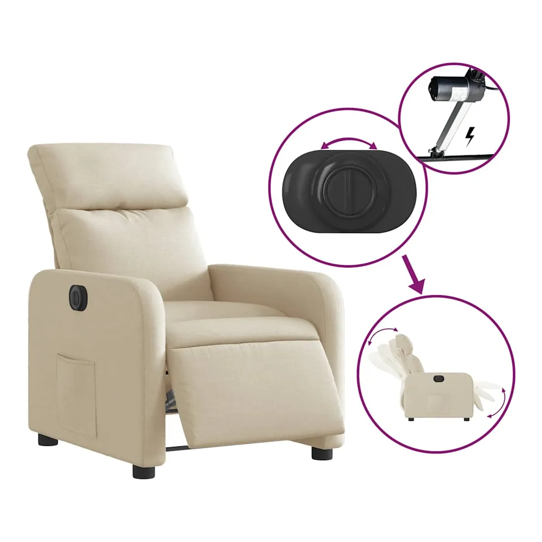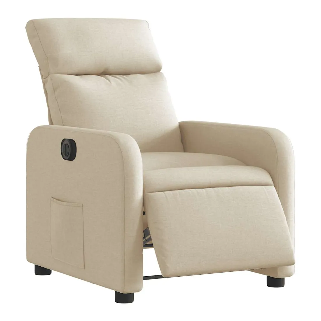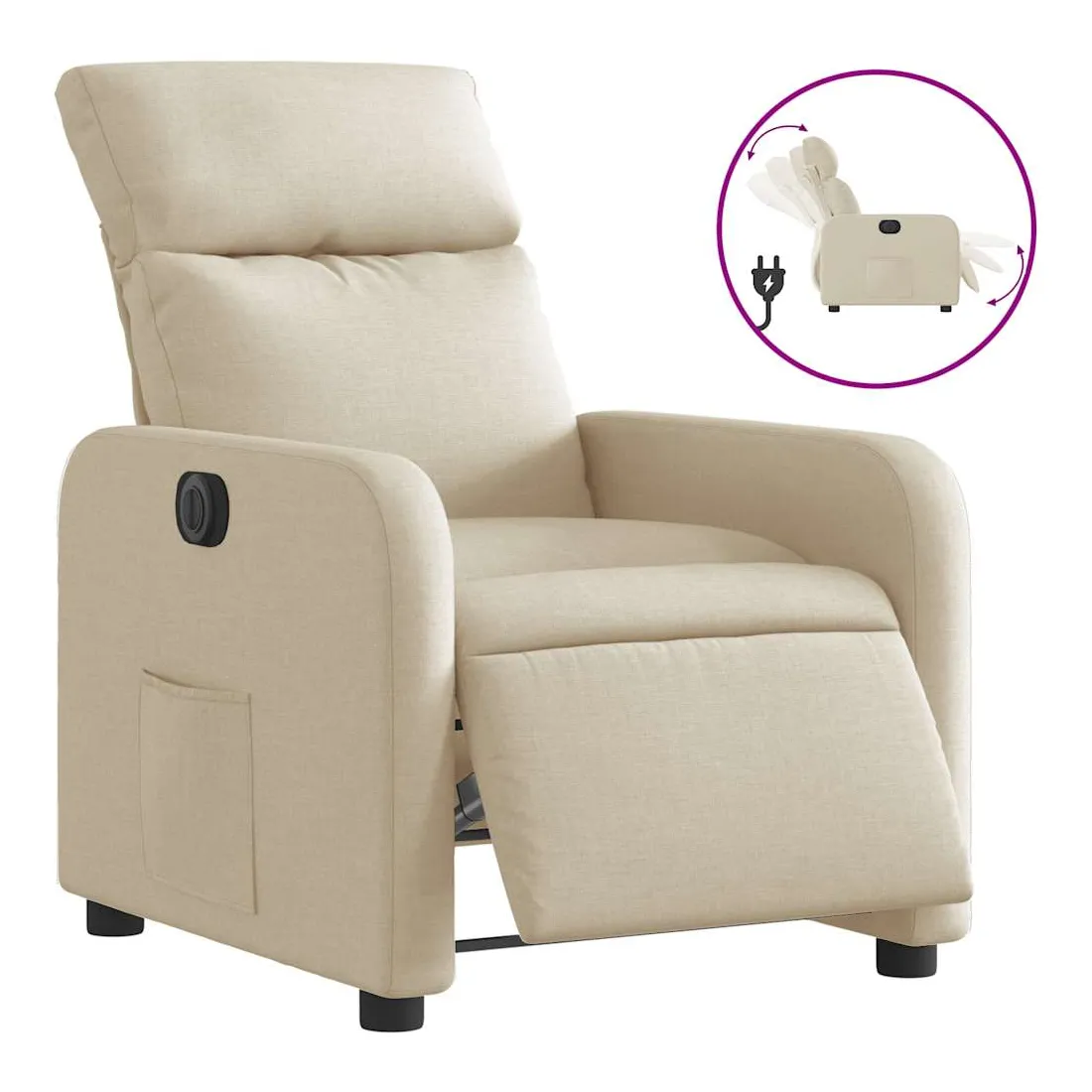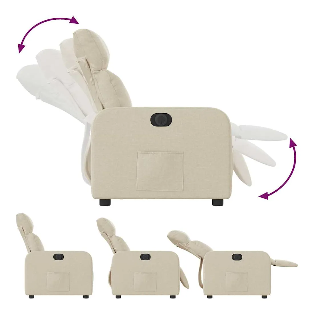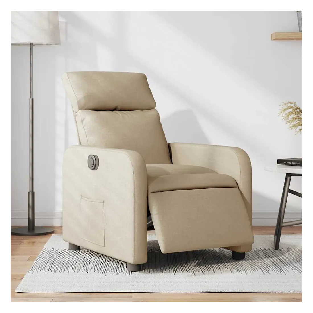 Asseyez-vous et détendez-vous dans ce fauteuil inclinable électrique très confortable ! Fonction d'inclinaison électrique : ce fauteuil inclinable est équipé d'un moteur électrique qui permet de régler automatiquement le repose-pied et le dossier dans n'importe quelle position, selon votre confort, en appuyant simplement sur le bouton situé sur le côté du fauteuil. Cette fonction permet une inclinaison maximale de 135 degrés. En outre, le dossier peut revenir automatiquement à sa position d'origine par une simple pression sur le bouton.Expérience d'assise confortable : le siège, le dossier et les larges accoudoirs bien rembourrés recouverts de tissu procurent une sensation confortable et chaleureuse, vous permettant de vous sentir enveloppé lorsque vous êtes assis. Le tissu présente un aspect simple et épuré et est respirant et durable.Poche latérale pratique : ce fauteuil est doté d'une poche latérale pour vous permettre de garder vos objets essentiels à portée de main.Cadre solide et stable : le cadre en bois et en métal offre une structure solide et une grande stabilité. Ce fauteuil inclinable est confortable et durable.