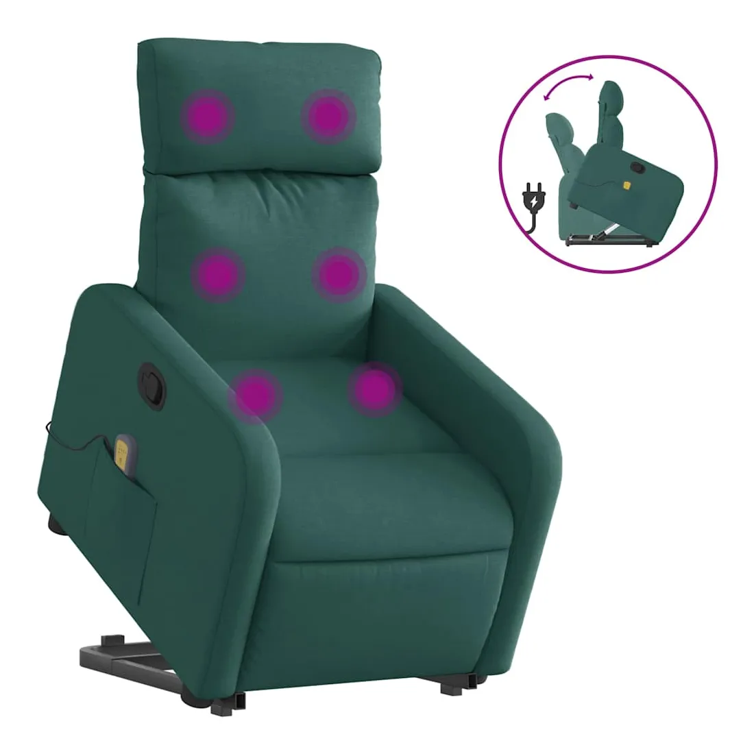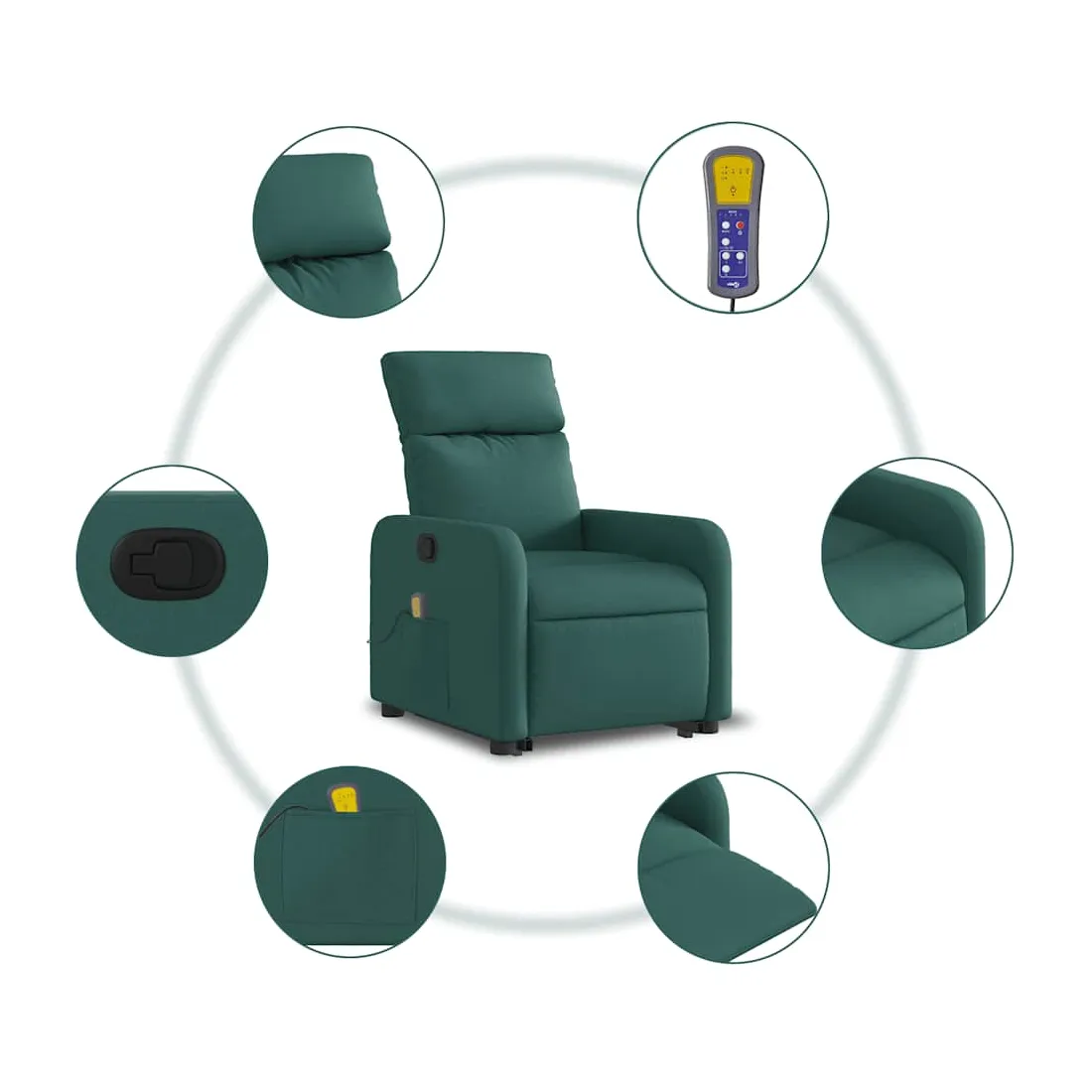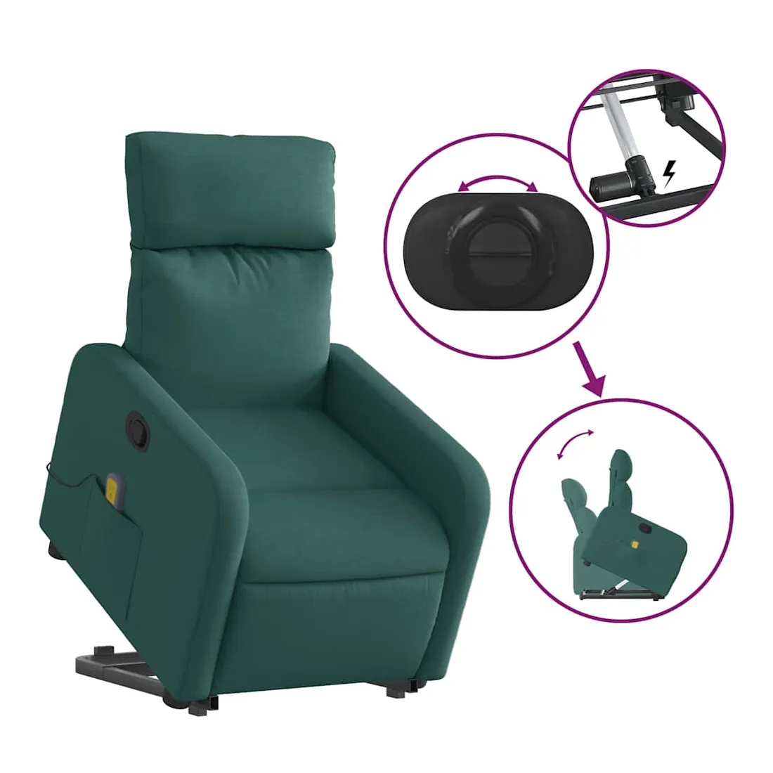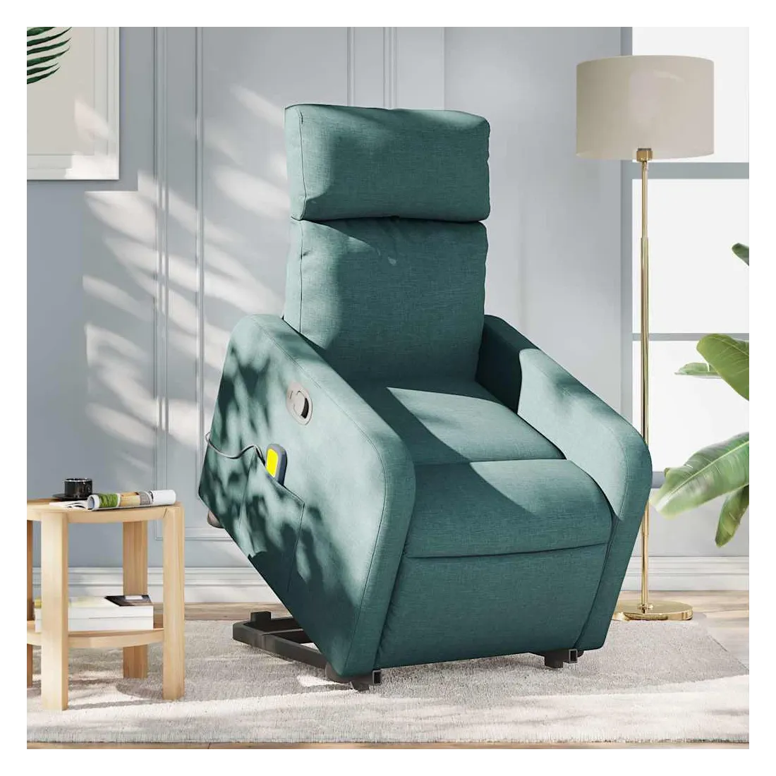 Asseyez-vous et détendez-vous dans ce fauteuil inclinable de massage très confortable ! Fonction de levage électrique : ce fauteuil inclinable pour personnes âgées est équipé d'un moteur électrique pour la fonction de levage. Grâce à la fonction qui pousse toute la chaise vers le haut, vous pouvez facilement vous tenir debout sans stresser votre dos et vos genoux en appuyant simplement sur le bouton.Fonction d'inclinaison manuelle : ce fauteuil inclinable est doté d'une poignée du côté droit. Vous pouvez régler manuellement le repose-pieds et le dossier dans n'importe quelle position selon votre confort en tirant simplement sur la poignée. Cette fonction permet une inclinaison maximale de 135 degrés. De plus, le dossier peut revenir rapidement à sa position d'origine en tirant simplement sur la poignée.Fonction de vibration : les 6 points de massage vous permettent de faire l'expérience d'un massage mieux ciblé. De plus, la télécommande incluse vous permet de choisir différents programmes de massage. La fonction de massage est alimentée par le connecteur USB qui nécessite une source d'alimentation USB certifiée de 5 V (non fournie).Expérience d'assise confortable : le siège, le dossier et les larges accoudoirs bien rembourrés recouverts de tissu procurent une sensation confortable et chaleureuse, vous permettant de vous sentir enveloppé lorsque vous êtes assis. Le tissu présente un aspect simple et épuré et est respirant et durable.Poche latérale pratique : ce fauteuil est doté d'une poche latérale pour vous permettre de garder vos objets essentiels à portée de main.Cadre solide et stable : le cadre en bois et en métal offre une structure solide et une grande stabilité. Ce fauteuil inclinable est confortable et durable.