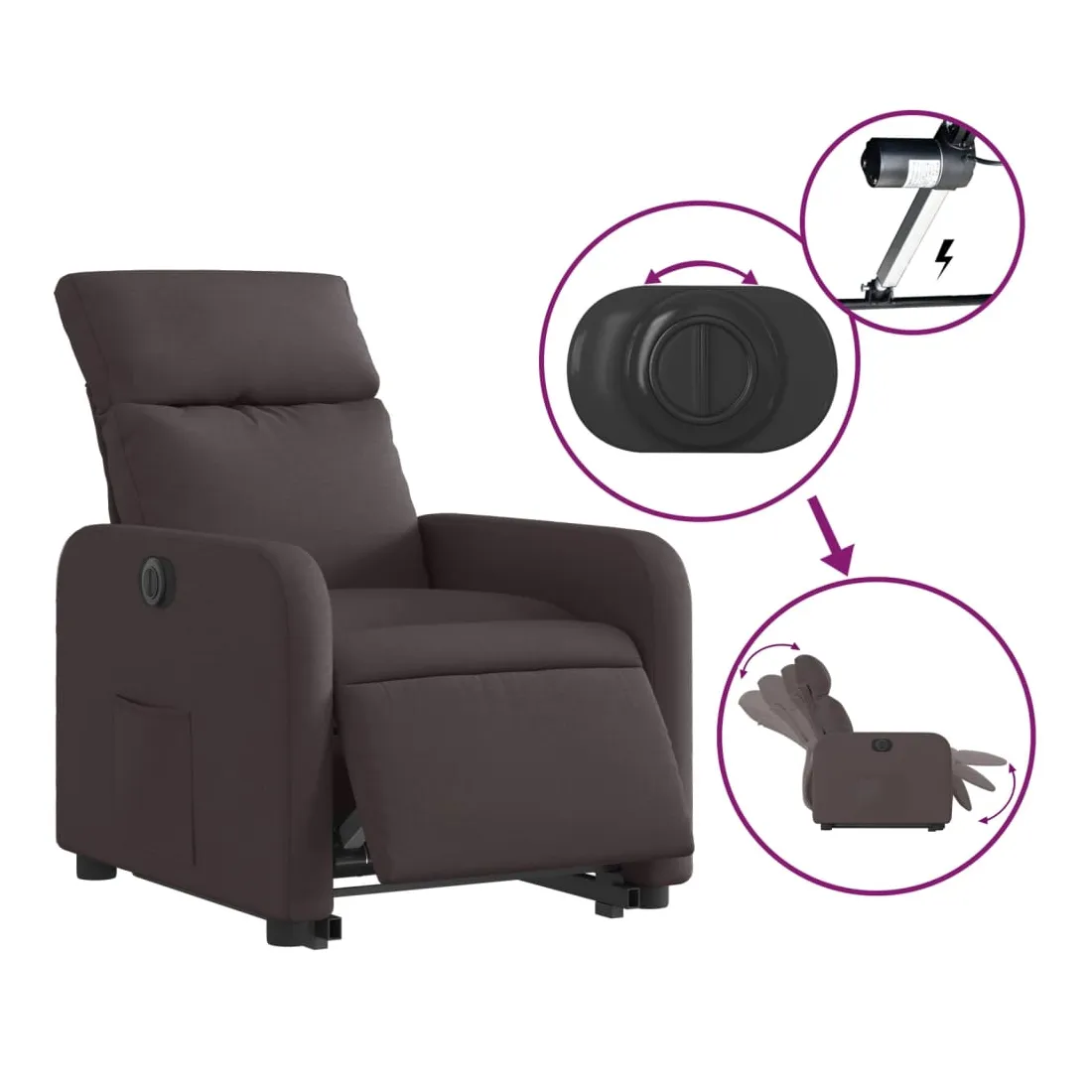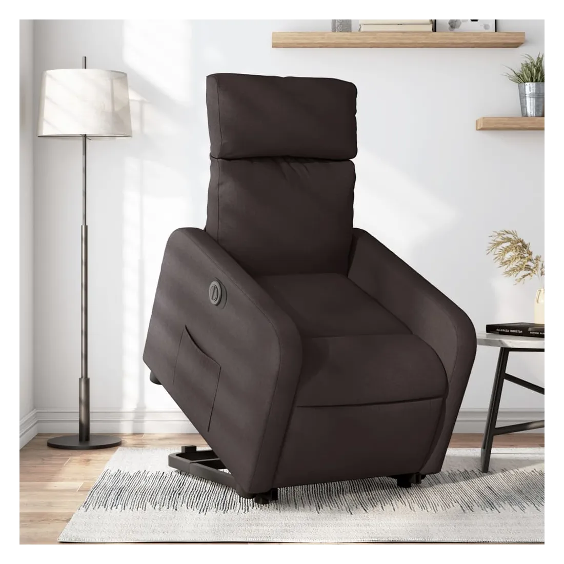 Asseyez-vous et détendez-vous dans ce fauteuil inclinable électrique très confortable ! Fonction de levage électrique : ce fauteuil inclinable pour personnes âgées est équipé d'un moteur électrique pour la fonction de levage. Grâce à la fonction qui pousse toute la chaise vers le haut, vous pouvez facilement vous tenir debout sans stresser votre dos et vos genoux en appuyant simplement sur le bouton.Fonction d'inclinaison électrique : ce fauteuil inclinable est également équipé d'un moteur électrique qui permet de régler automatiquement le repose-pied et le dossier dans n'importe quelle position, selon votre confort, en appuyant simplement sur le bouton situé sur le côté du fauteuil. Cette fonction permet une inclinaison maximale de 135 degrés. En outre, le dossier peut revenir automatiquement à sa position d'origine par une simple pression sur le bouton.Expérience d'assise confortable : le siège, le dossier et les larges accoudoirs bien rembourrés recouverts de tissu procurent une sensation confortable et chaleureuse, vous permettant de vous sentir enveloppé lorsque vous êtes assis. Le tissu présente un aspect simple et épuré et est respirant et durable.Poche latérale pratique : ce fauteuil est doté d'une poche latérale pour vous permettre de garder vos objets essentiels à portée de main.Cadre solide et stable : le cadre en bois et en métal offre une structure solide et une grande stabilité. Ce fauteuil inclinable est confortable et durable.