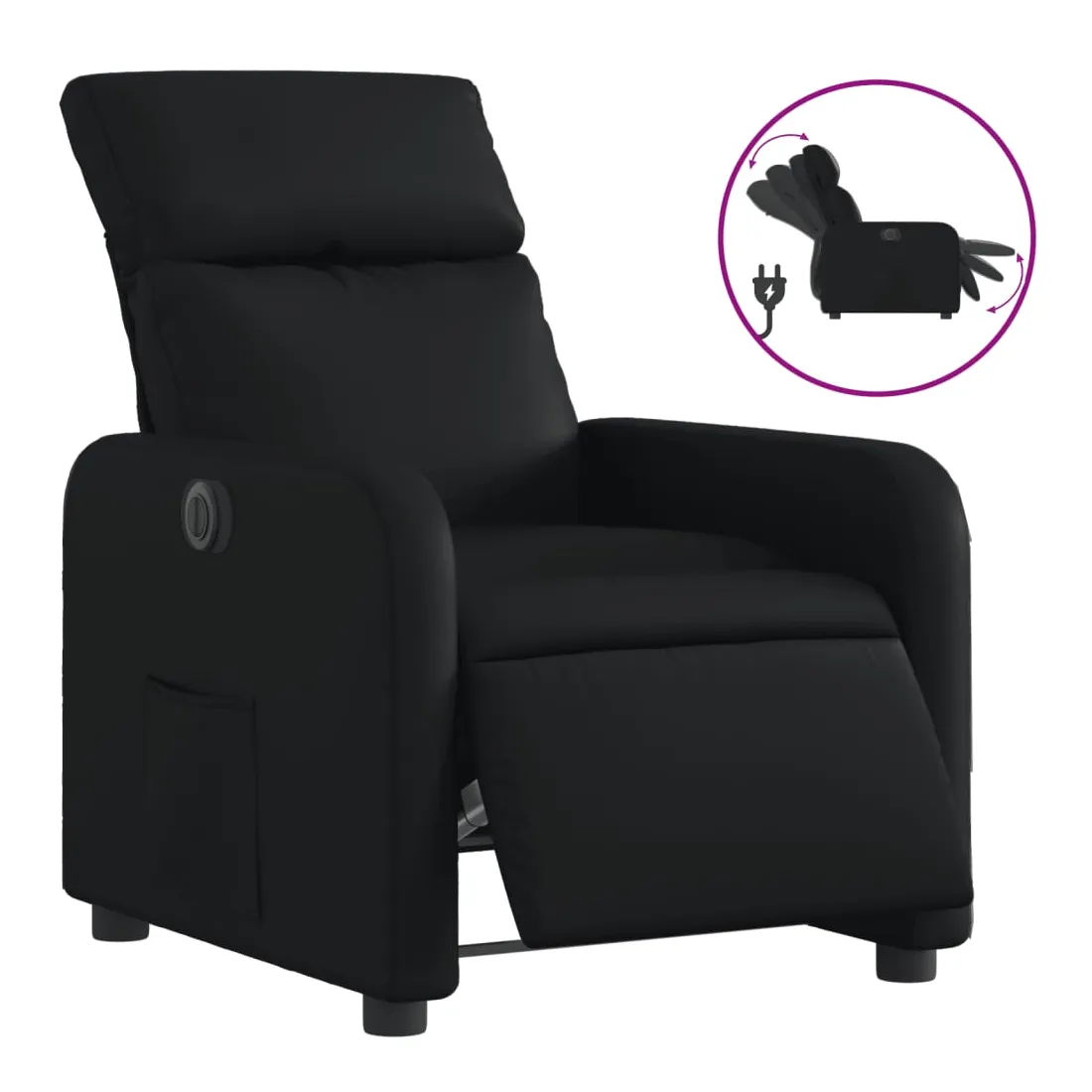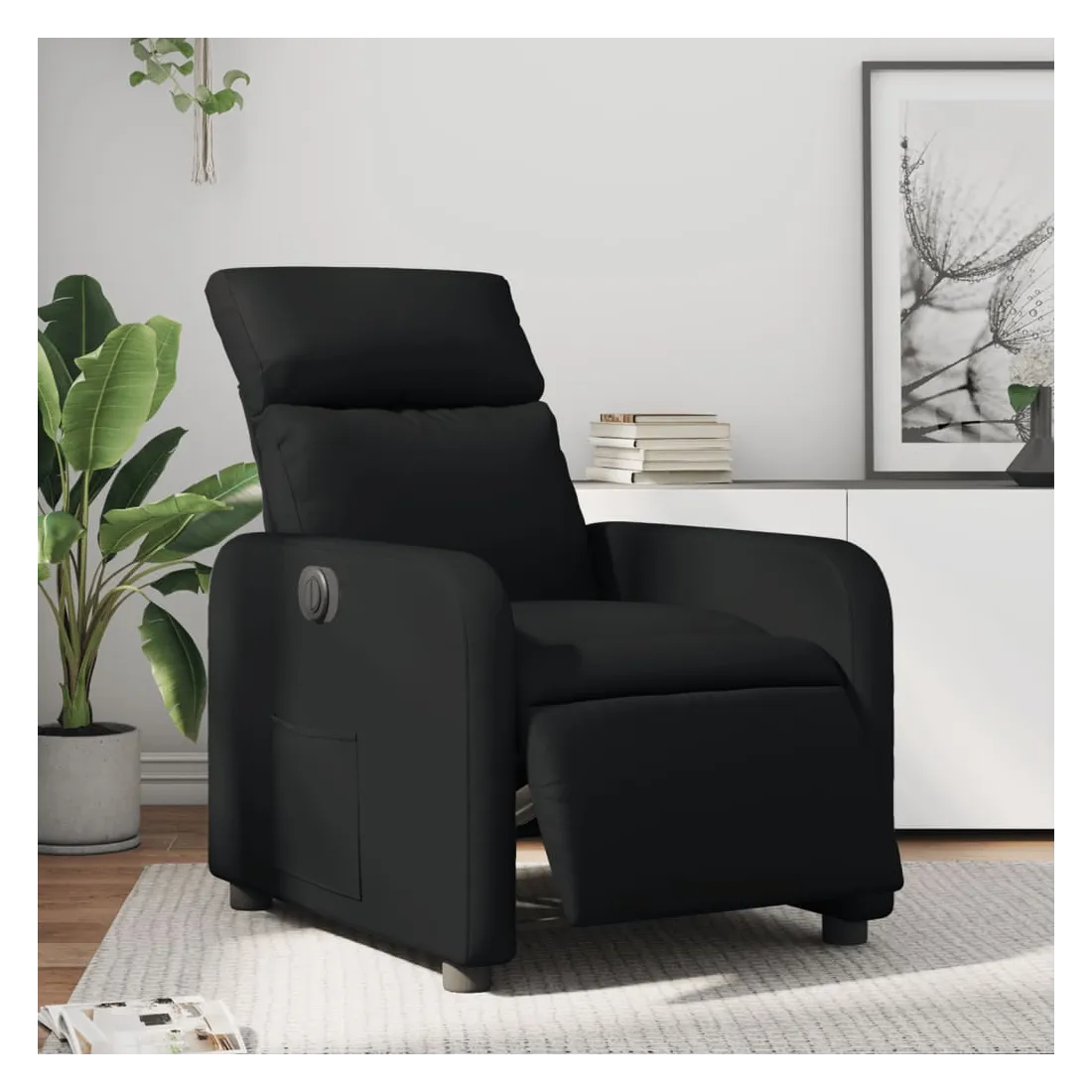 Asseyez-vous et détendez-vous dans ce fauteuil inclinable électrique très confortable ! Fonction d'inclinaison électrique : ce fauteuil inclinable est équipé d'un moteur électrique qui permet de régler automatiquement le repose-pied et le dossier dans n'importe quelle position, selon votre confort, en appuyant simplement sur le bouton situé sur le côté du fauteuil. Cette fonction permet une inclinaison maximale de 135 degrés. En outre, le dossier peut revenir automatiquement à sa position d'origine par une simple pression sur le bouton.Expérience de siège confortable : le siège, le dossier et les larges accoudoirs rembourrés épais recouverts de similicuir procurent une sensation confortable, vous faisant vous sentir enlacé lorsque vous êtes assis. Le similicuir est un matériau très résistant. Il est résistant aux taches, ce qui le rend facile à nettoyer avec un chiffon humide. La surface lisse donne également un aspect luxueux et la beauté du cuir véritable.Poche latérale pratique : ce fauteuil est doté d'une poche latérale pour vous permettre de garder vos objets essentiels à portée de main.Cadre solide et stable : le cadre en bois et en métal offre une structure solide et une grande stabilité. Ce fauteuil inclinable est confortable et durable.
