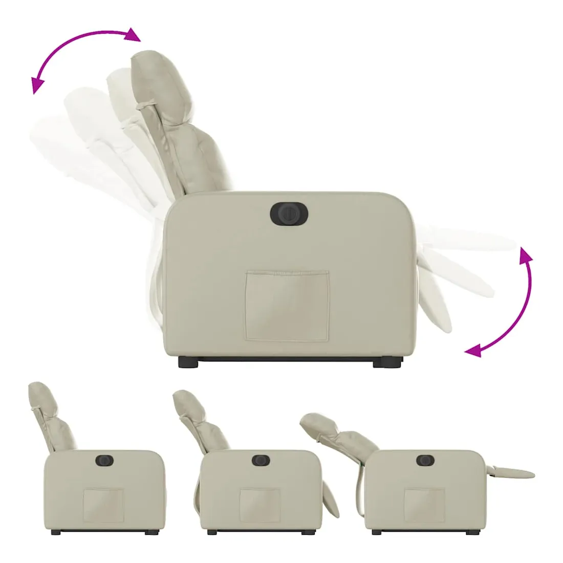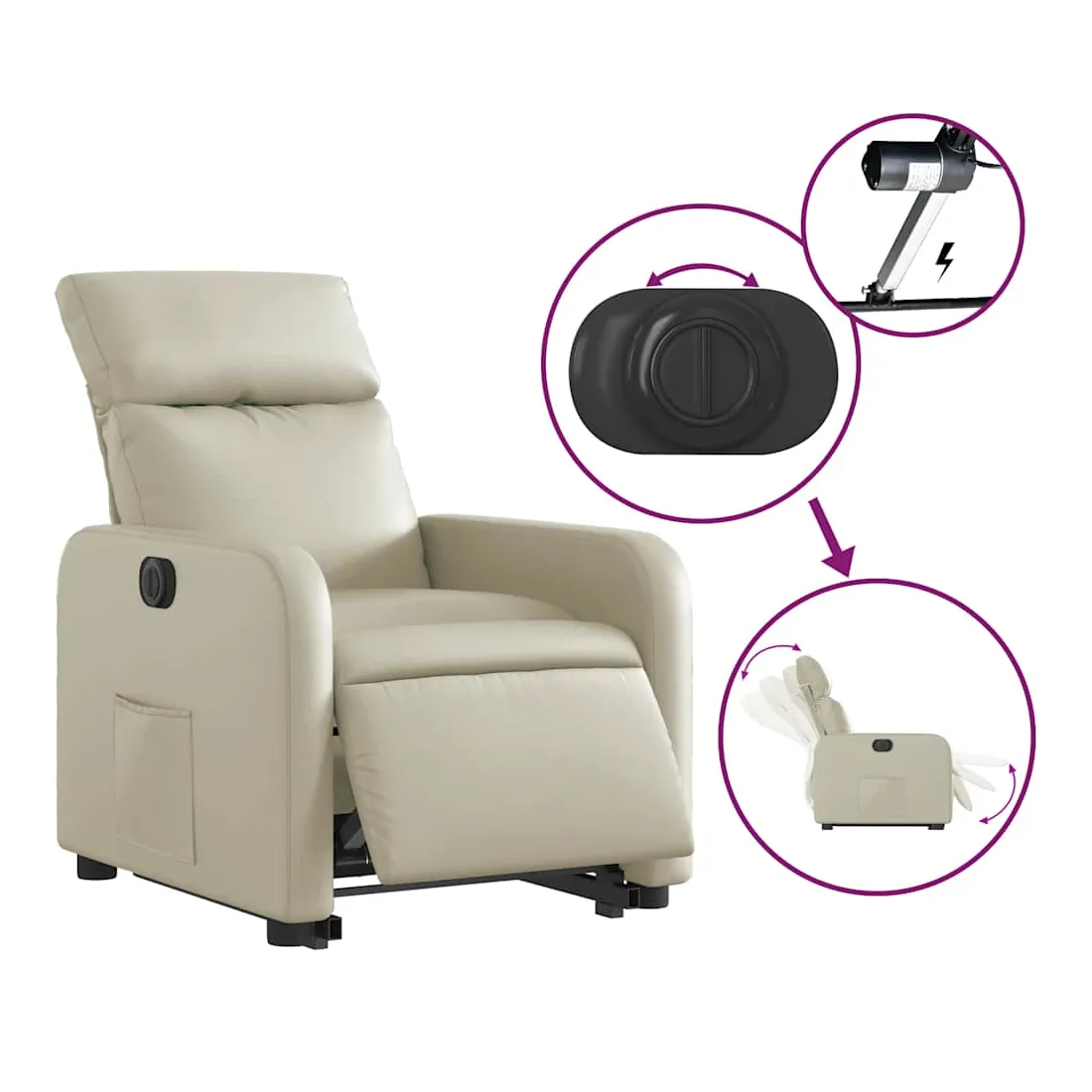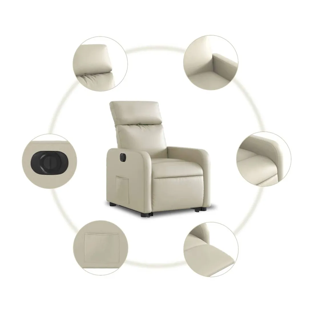 Asseyez-vous et détendez-vous dans ce fauteuil inclinable électrique très confortable ! Fonction de levage électrique : ce fauteuil inclinable pour personnes âgées est équipé d'un moteur électrique pour la fonction de levage. Grâce à la fonction qui pousse toute la chaise vers le haut, vous pouvez facilement vous tenir debout sans stresser votre dos et vos genoux en appuyant simplement sur le bouton.Fonction d'inclinaison électrique : ce fauteuil inclinable est également équipé d'un moteur électrique qui permet de régler automatiquement le repose-pied et le dossier dans n'importe quelle position, selon votre confort, en appuyant simplement sur le bouton situé sur le côté du fauteuil. Cette fonction permet une inclinaison maximale de 135 degrés. En outre, le dossier peut revenir automatiquement à sa position d'origine par une simple pression sur le bouton.Expérience de siège confortable : le siège, le dossier et les larges accoudoirs rembourrés épais recouverts de similicuir procurent une sensation confortable, vous faisant vous sentir enlacé lorsque vous êtes assis. Le similicuir est un matériau très résistant. Il est résistant aux taches, ce qui le rend facile à nettoyer avec un chiffon humide. La surface lisse donne également un aspect luxueux et la beauté du cuir véritable.Poche latérale pratique : ce fauteuil est doté d'une poche latérale pour vous permettre de garder vos objets essentiels à portée de main.Cadre solide et stable : le cadre en bois et en métal offre une structure solide et une grande stabilité. Ce fauteuil inclinable est confortable et durable.
