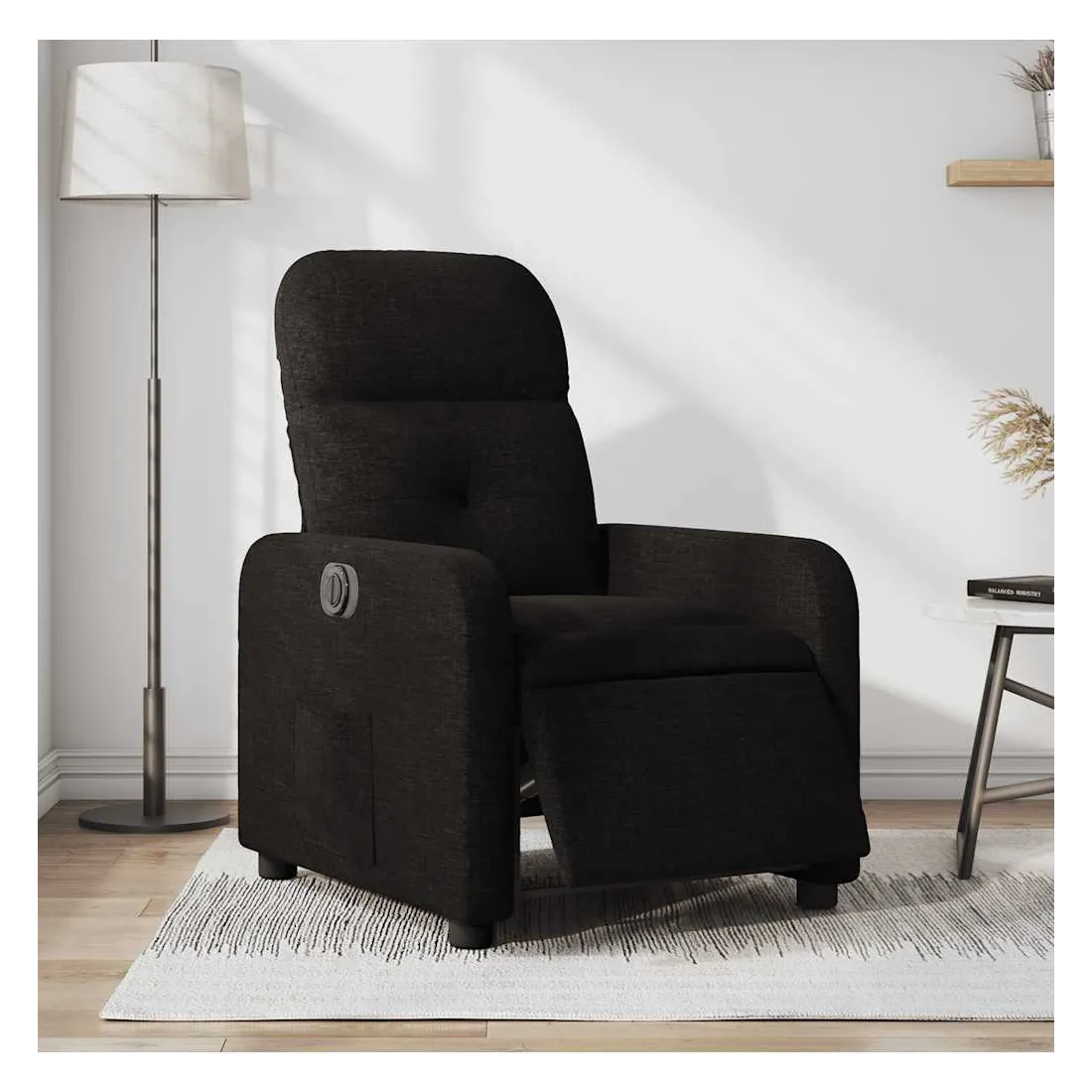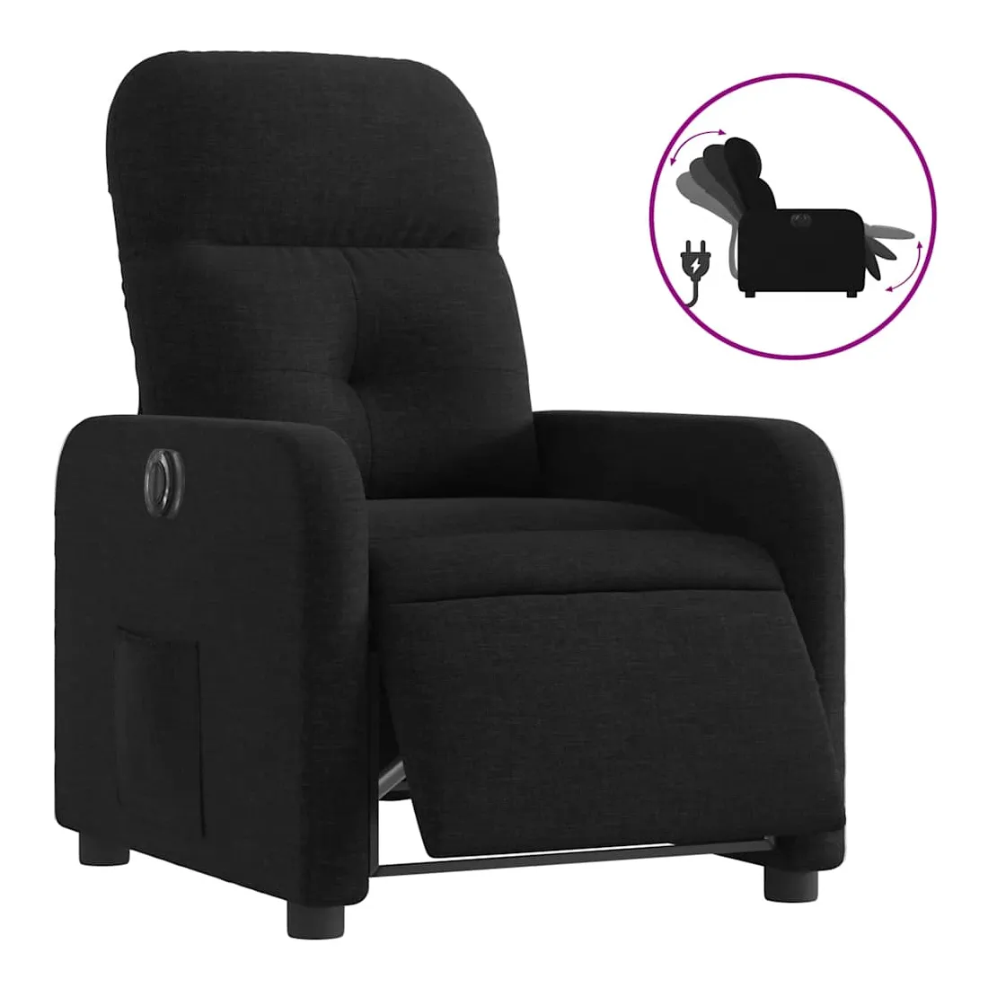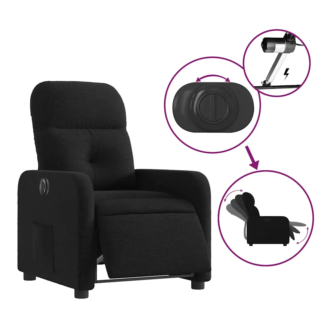 Asseyez-vous et détendez-vous dans ce fauteuil inclinable électrique très confortable ! Fonction d'inclinaison électrique : ce fauteuil inclinable est équipé d'un moteur électrique qui permet de régler automatiquement le repose-pied et le dossier dans n'importe quelle position, selon votre confort, en appuyant simplement sur le bouton situé sur le côté du fauteuil. Cette fonction permet une inclinaison maximale de 135 degrés. En outre, le dossier peut revenir automatiquement à sa position d'origine par une simple pression sur le bouton.Expérience d'assise confortable : le siège, le dossier et les larges accoudoirs bien rembourrés recouverts de tissu procurent une sensation confortable et chaleureuse, vous permettant de vous sentir enveloppé lorsque vous êtes assis. Le tissu présente un aspect simple et épuré et est respirant et durable.Poche latérale pratique : ce fauteuil est doté d'une poche latérale pour vous permettre de garder vos objets essentiels à portée de main.Cadre solide et stable : le cadre en bois et en métal offre une structure solide et une grande stabilité. Ce fauteuil inclinable est confortable et durable.