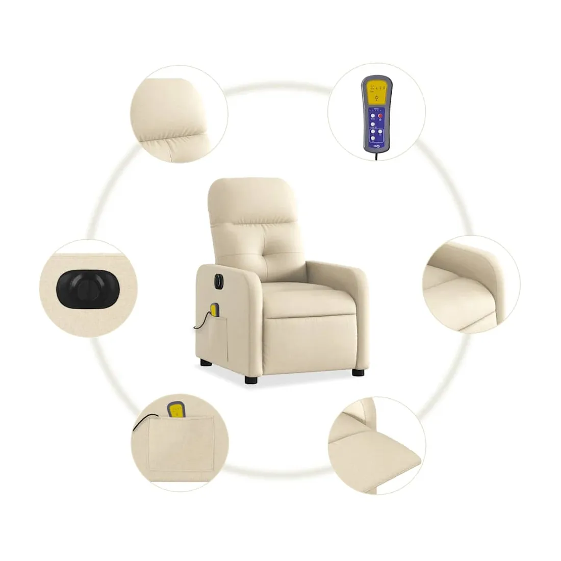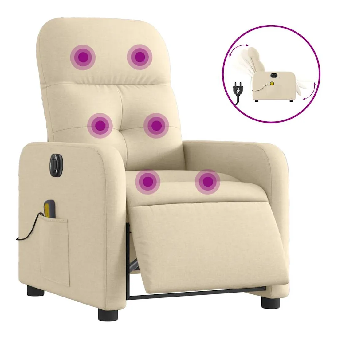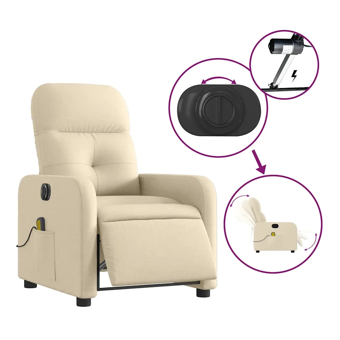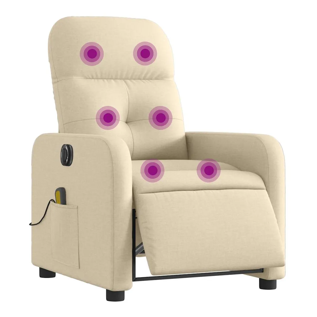 Asseyez-vous et détendez-vous dans ce fauteuil inclinable de massage électrique très confortable ! Fonction d'inclinaison électrique : ce fauteuil inclinable est équipé d'un moteur électrique qui permet de régler automatiquement le repose-pied et le dossier dans n'importe quelle position, selon votre confort, en appuyant simplement sur le bouton situé sur le côté du fauteuil. Cette fonction permet une inclinaison maximale de 135 degrés. En outre, le dossier peut revenir automatiquement à sa position d'origine par une simple pression sur le bouton.Fonction de vibration : les 6 points de massage vous permettent de faire l'expérience d'un massage mieux ciblé. De plus, la télécommande incluse vous permet de choisir différents programmes de massage. La fonction de massage est alimentée par le connecteur USB qui nécessite une source d'alimentation USB certifiée de 5 V (non fournie).Expérience d'assise confortable : le siège, le dossier et les larges accoudoirs bien rembourrés recouverts de tissu procurent une sensation confortable et chaleureuse, vous permettant de vous sentir enveloppé lorsque vous êtes assis. Le tissu présente un aspect simple et épuré et est respirant et durable.Poche latérale pratique : ce fauteuil est doté d'une poche latérale pour ranger votre télécommande ou garder vos objets essentiels à portée de main.Cadre solide et stable : le cadre en bois et en métal offre une structure solide et une grande stabilité. Ce fauteuil inclinable est confortable et durable.