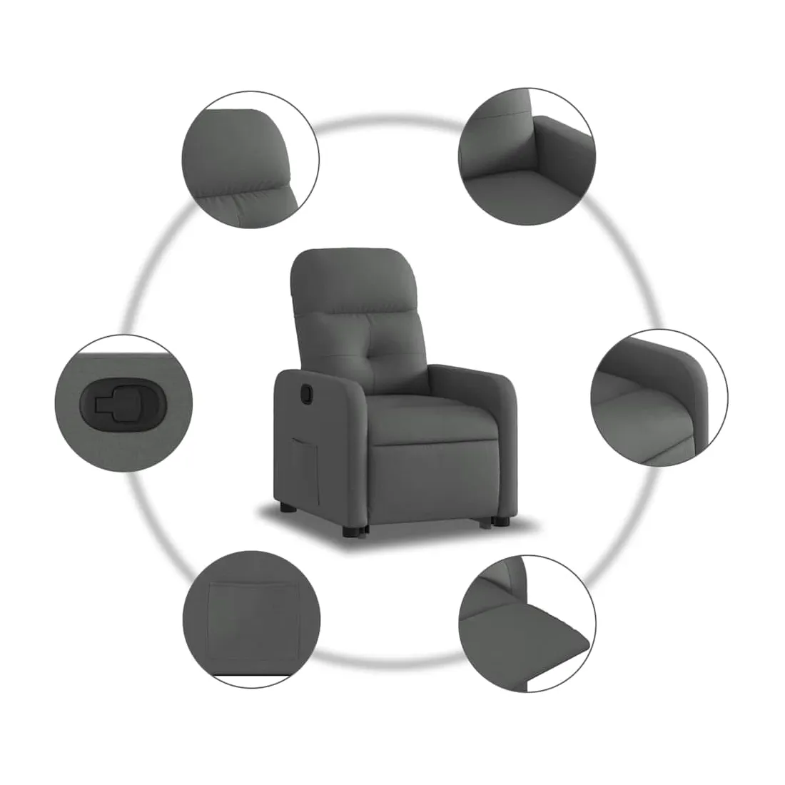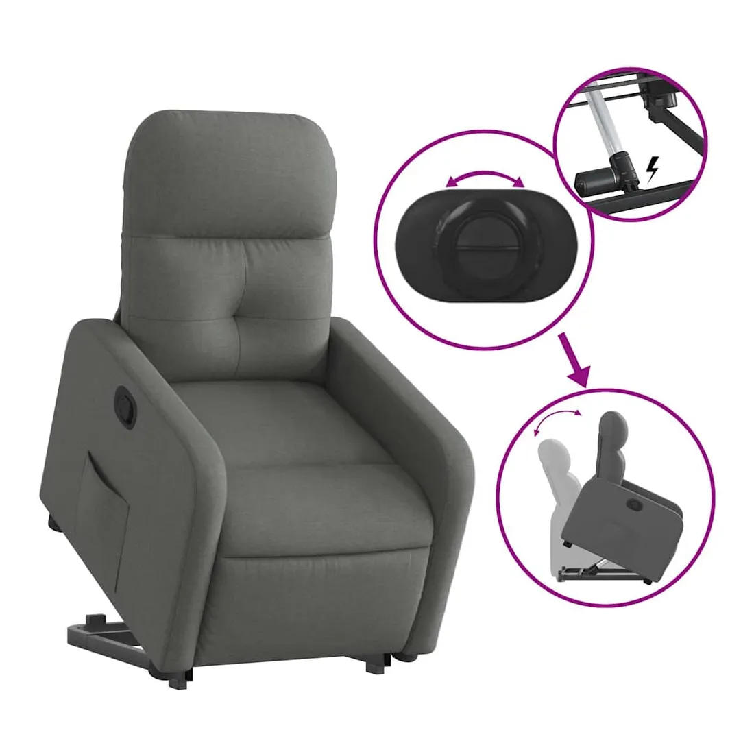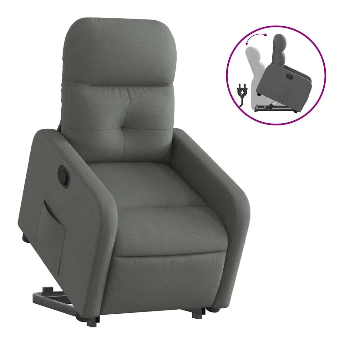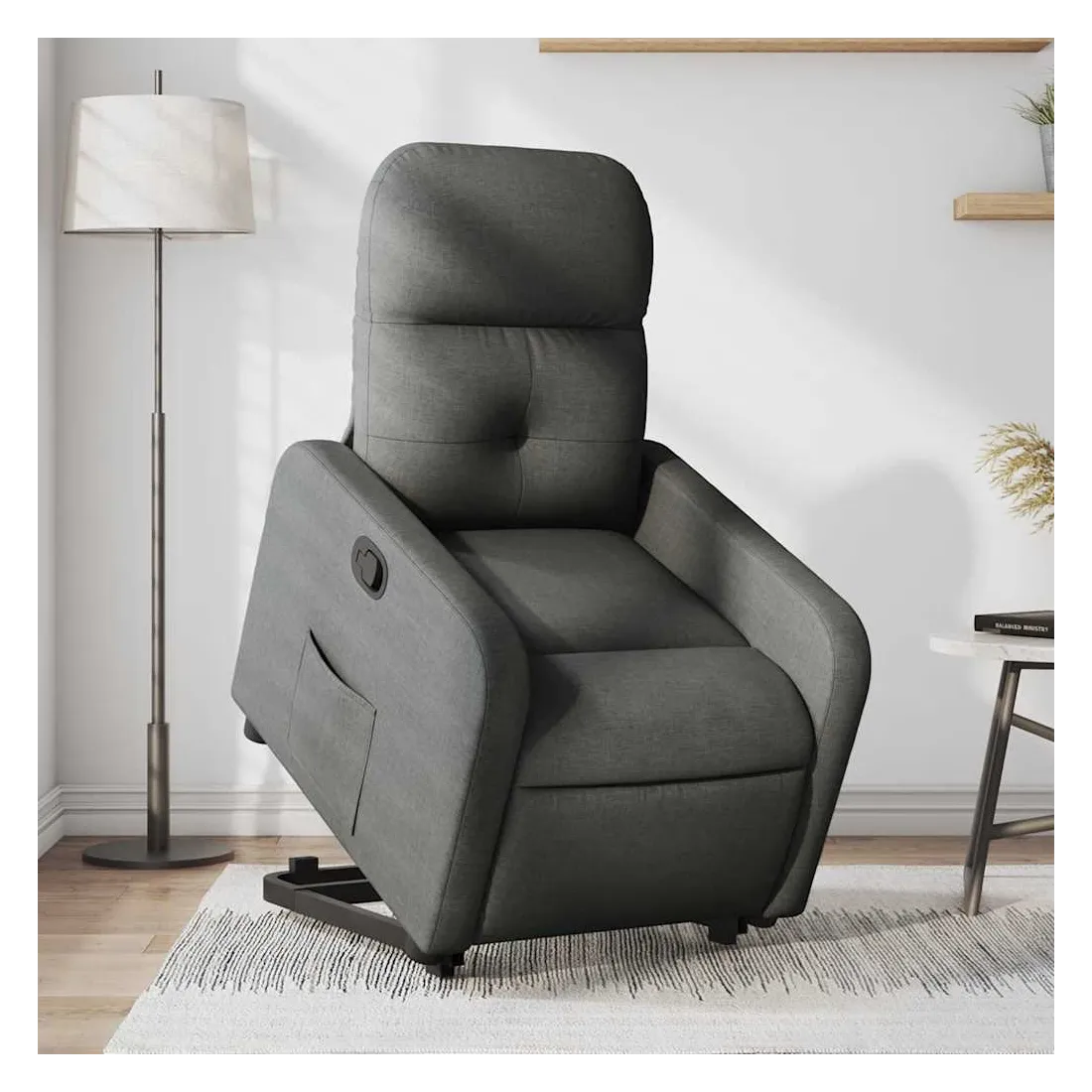 Asseyez-vous et détendez-vous dans ce fauteuil inclinable très confortable ! Fonction de levage électrique : ce fauteuil inclinable pour personnes âgées est équipé d'un moteur électrique pour la fonction de levage. Grâce à la fonction qui pousse toute la chaise vers le haut, vous pouvez facilement vous tenir debout sans stresser votre dos et vos genoux en appuyant simplement sur le bouton.Fonction d'inclinaison manuelle : ce fauteuil inclinable est doté d'une poignée du côté droit. Vous pouvez régler manuellement le repose-pieds et le dossier dans n'importe quelle position selon votre confort en tirant simplement sur la poignée. Cette fonction permet une inclinaison maximale de 135 degrés. De plus, le dossier peut revenir rapidement à sa position d'origine en tirant simplement sur la poignée.Expérience d'assise confortable : le siège, le dossier et les larges accoudoirs bien rembourrés recouverts de tissu procurent une sensation confortable et chaleureuse, vous permettant de vous sentir enveloppé lorsque vous êtes assis. Le tissu présente un aspect simple et épuré et est respirant et durable.Poche latérale pratique : ce fauteuil est doté d'une poche latérale pour vous permettre de garder vos objets essentiels à portée de main.Cadre solide et stable : le cadre en bois et en métal offre une structure solide et une grande stabilité. Ce fauteuil inclinable est confortable et durable.