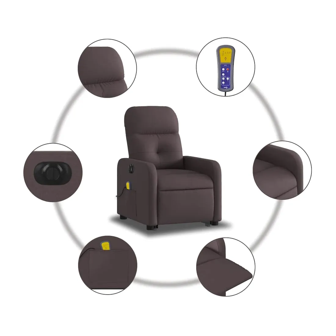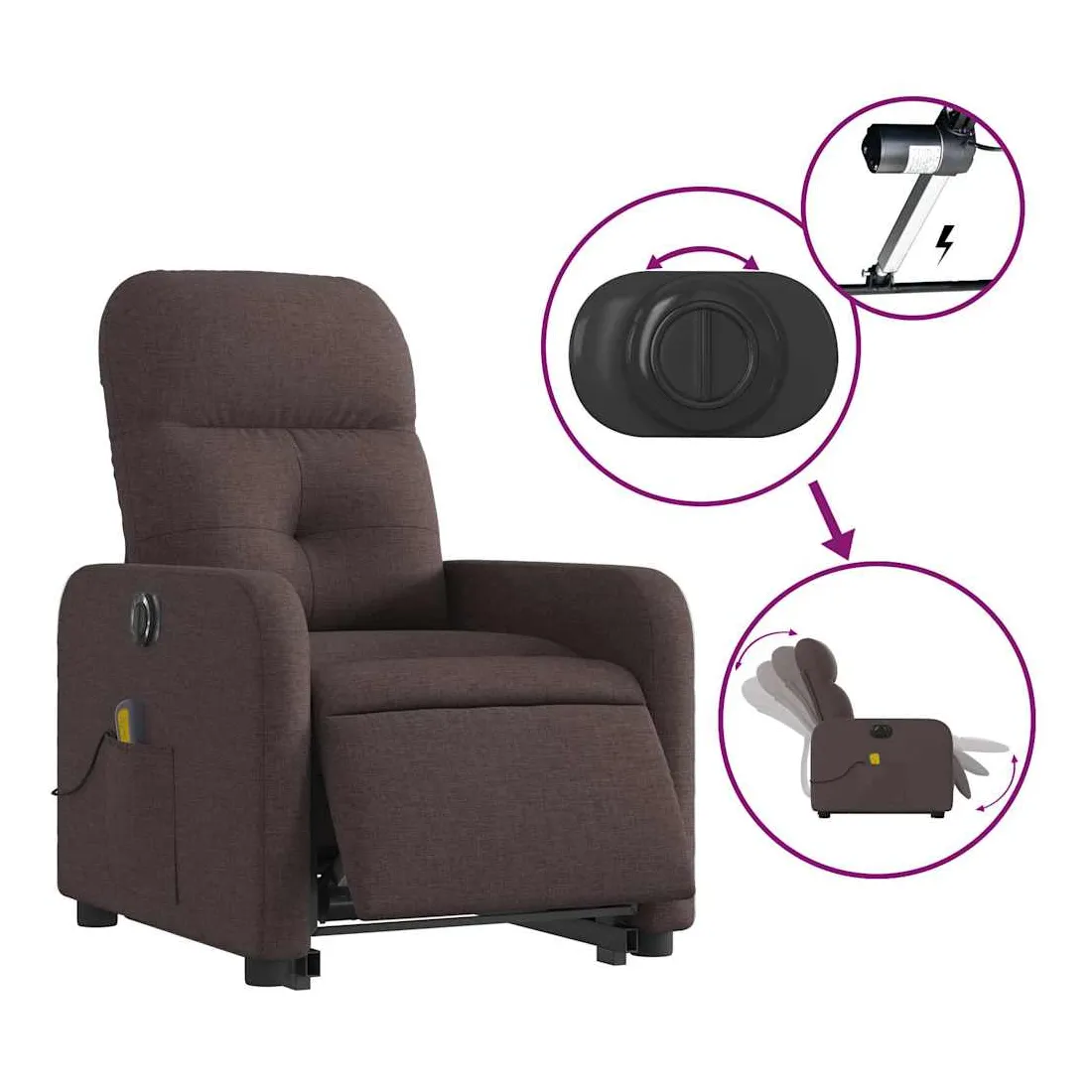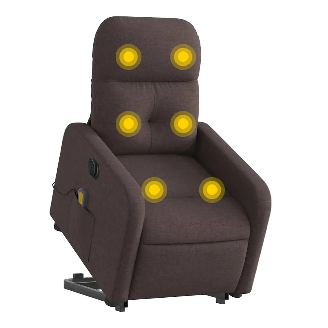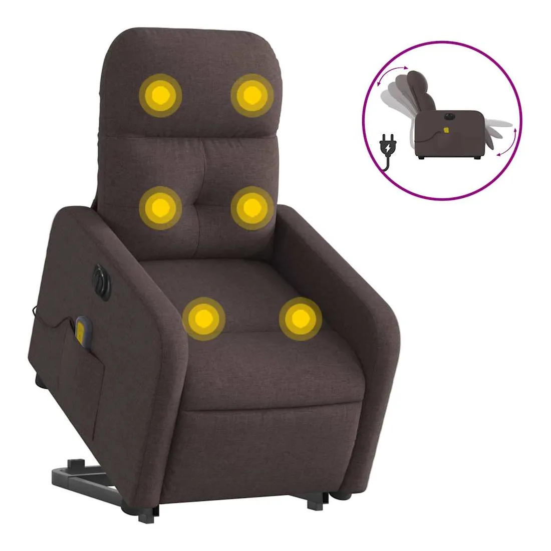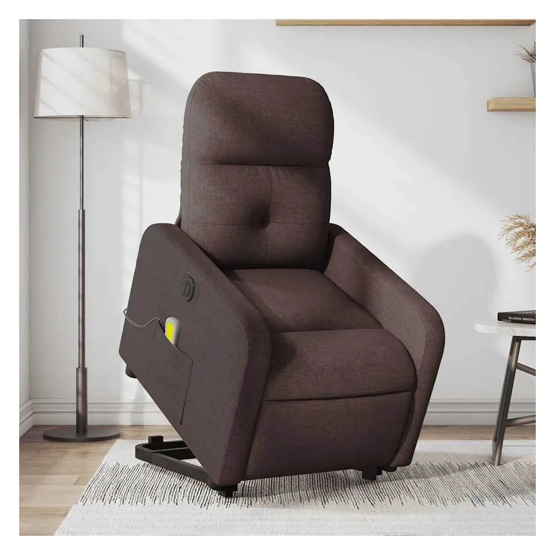 Asseyez-vous et détendez-vous dans ce fauteuil inclinable de massage électrique très confortable ! Fonction de levage électrique : ce fauteuil inclinable pour personnes âgées est équipé d'un moteur électrique pour la fonction de levage. Grâce à la fonction qui pousse toute la chaise vers le haut, vous pouvez facilement vous tenir debout sans stresser votre dos et vos genoux en appuyant simplement sur le bouton.Fonction d'inclinaison électrique : ce fauteuil inclinable est également équipé d'un moteur électrique qui permet de régler automatiquement le repose-pied et le dossier dans n'importe quelle position, selon votre confort, en appuyant simplement sur le bouton situé sur le côté du fauteuil. Cette fonction permet une inclinaison maximale de 135 degrés. En outre, le dossier peut revenir automatiquement à sa position d'origine par une simple pression sur le bouton.Fonction de vibration : les 6 points de massage vous permettent de faire l'expérience d'un massage mieux ciblé. De plus, la télécommande incluse vous permet de choisir différents programmes de massage. La fonction de massage est alimentée par le connecteur USB qui nécessite une source d'alimentation USB certifiée de 5 V (non fournie).Expérience d'assise confortable : le siège, le dossier et les larges accoudoirs bien rembourrés recouverts de tissu procurent une sensation confortable et chaleureuse, vous permettant de vous sentir enveloppé lorsque vous êtes assis. Le tissu présente un aspect simple et épuré et est respirant et durable.Poche latérale pratique : ce fauteuil est doté d'une poche latérale pour ranger votre télécommande ou garder vos objets essentiels à portée de main.