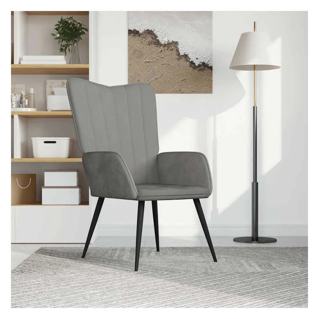 Cette chaise de relaxation est un excellent supplément à votre décor existant. Ce fauteuil, avec quelques lignes sur son dossier, est esthétique. Grâce à sa mousse capitonnée recouverte de velours doux au toucher, vous pourrez profiter d'un confort optimal pendant votre temps d'assise. Soutenu par un cadre en acier, le fauteuil de relaxation est stable et durable.