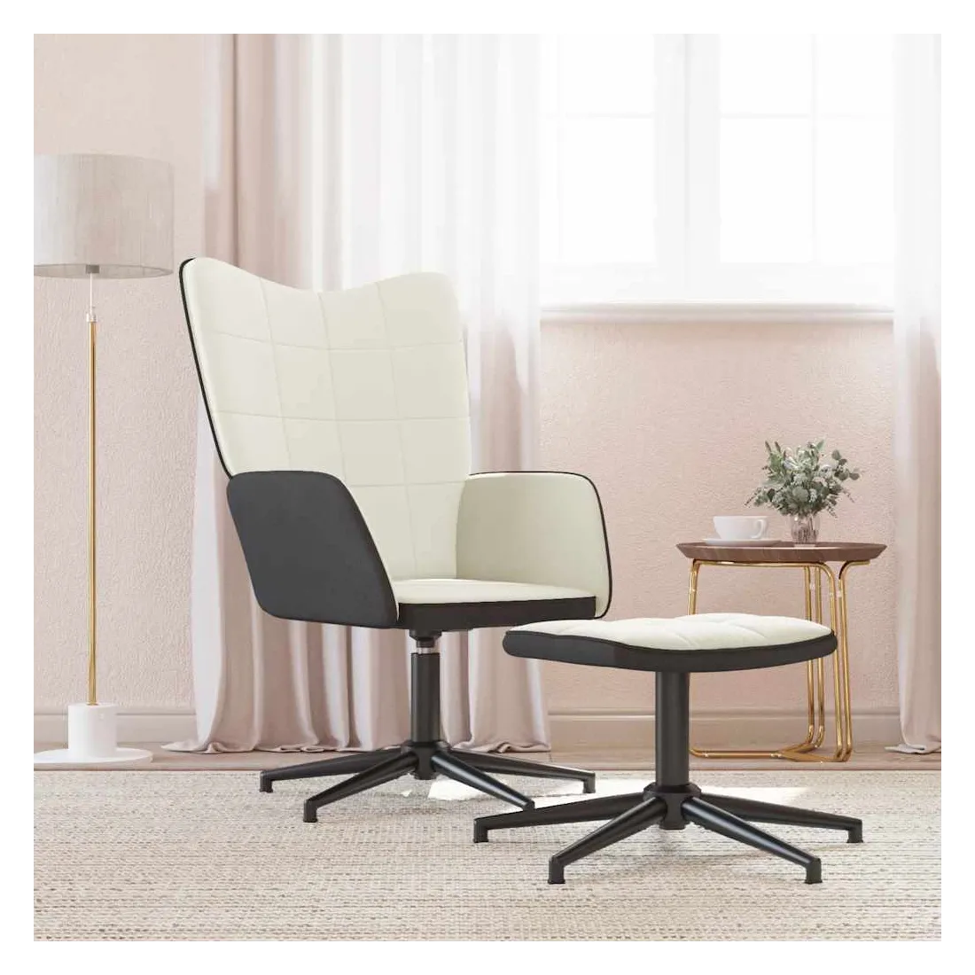 vidaXLCette chaise de relaxation avec tabouret au design chic et élégant apportera une touche de modernité à votre déco. Avec quelques blocs, ce fauteuil est esthétique. Grâce à sa mousse rembourrée recouverte de velours doux au toucher, vous pourrez profiter d'un confort optimal pendant votre temps d'assise. Le dossier étant en PVC, ce fauteuil de relaxation est résistant à l'usure. Ce siège de relaxation peut pivoter à 360 degrés pour une grande flexibilité. De plus, soutenue par un cadre en acier et des pieds croisés, la chaise de salle à manger avec tabouret est stable et durable.