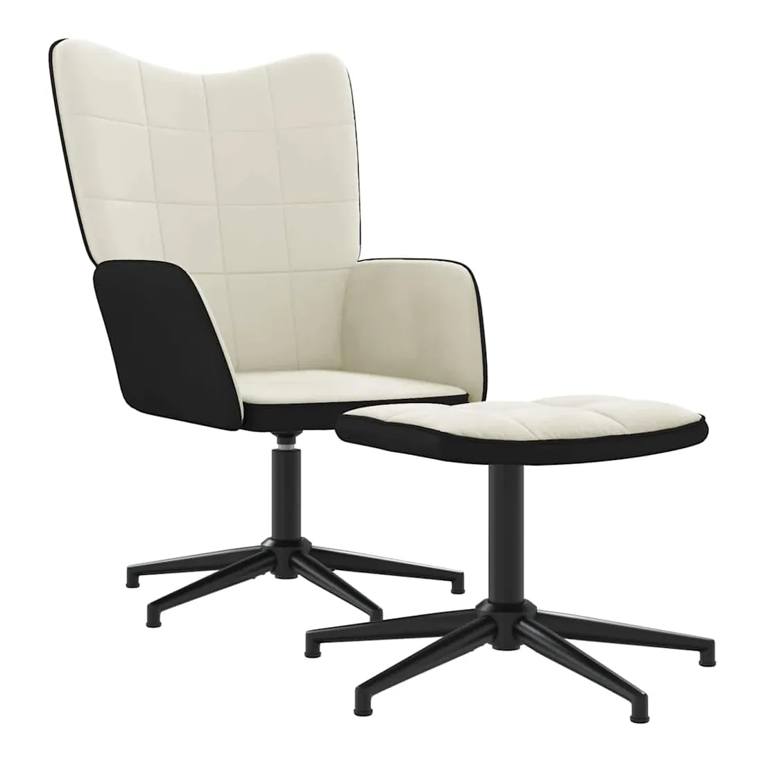 Chaise de relaxation avec tabouret Blanc crème Velours et PVC