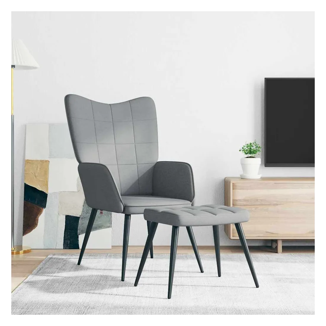 Cette chaise de relaxation avec tabouret au design chic et élégant apportera une touche de modernité à votre déco. Doté de quelques blocs, ce fauteuil est esthétique. Grâce à sa mousse rembourrée recouverte d'un tissu doux au toucher, vous pourrez profiter d'un confort optimal pendant votre temps d'assise. De plus, soutenue par un cadre en acier, la chaise avec tabouret est stable et durable.