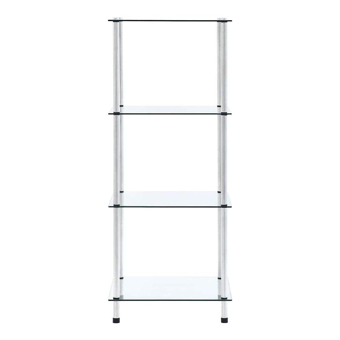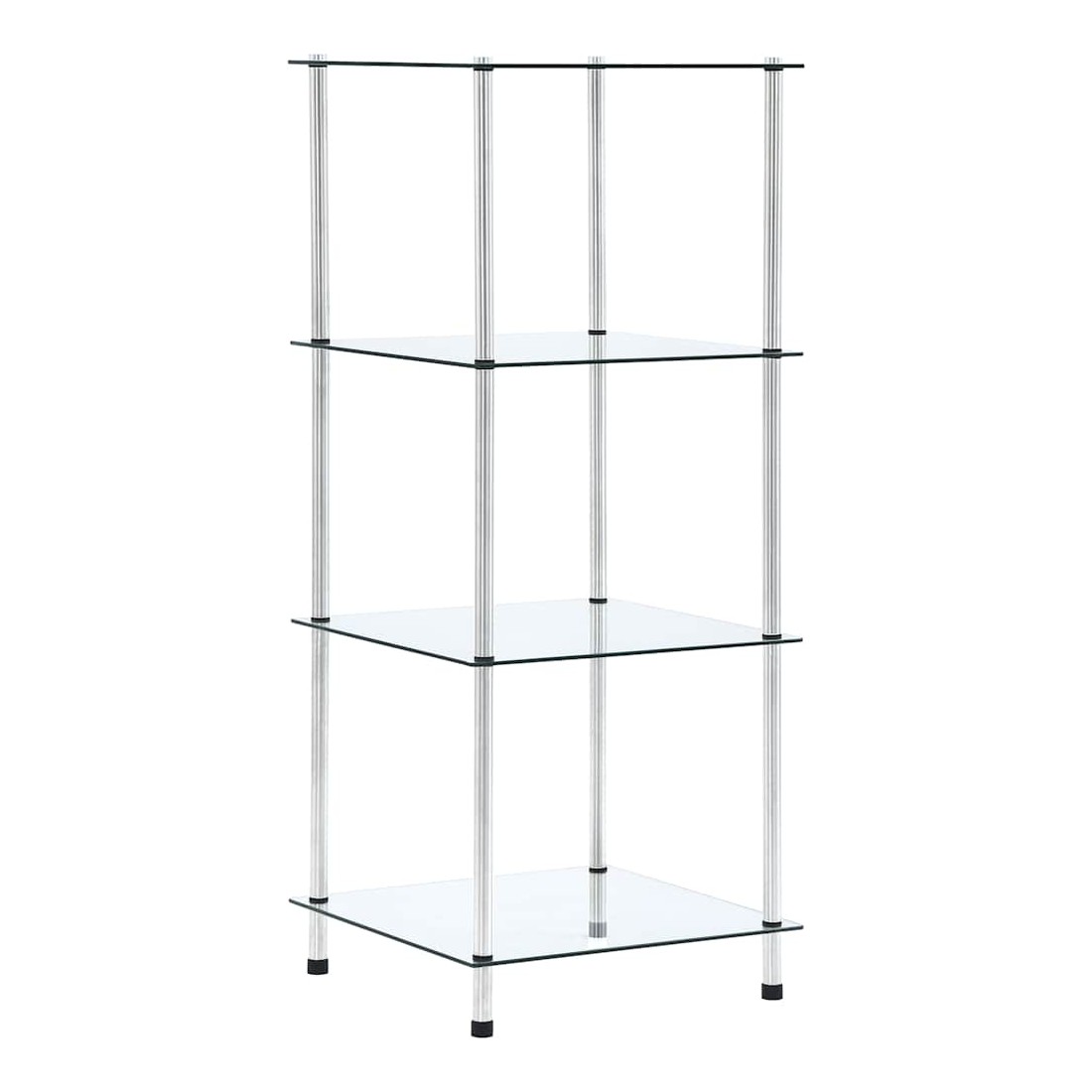 Ajoutez instantanément une touche de style à votre espace de vie avec notre étagère en verre contemporaine et pratique ! La vitrine est conçue avec quatre niveaux pour un grand espace de rangement. Vous pouvez utiliser l'étagère polyvalente dans le salon ou le bureau pour exposer vos objets de collection, cadres photo, plantes en pot ou dans la salle de bain pour garder vos articles essentiels organisés. Faite de verre trempé épais et d’acier inoxydable durable, cette étagère est extrêmement robuste et sûre. De plus, la surface lisse est facile à nettoyer avec un chiffon humide. Notre étagère est facile à assembler.