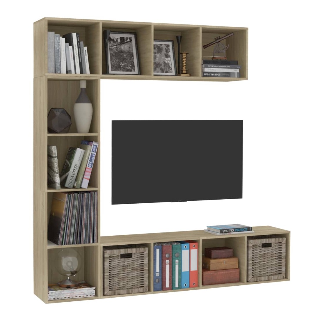 Avec un design élégant et beau, cet ensemble de bibliothèque/meuble TV ajoutera une touche décorative et pratique à votre décoration intérieure. L'ensemble se compose d'un meuble TV, d'une étagère à livres et d'un meuble suspendu et conçu avec 12 compartiments offrant un grand espace de rangement pour ranger vos magazines, livres, DVD et appareils multimédias et les garder à portée de la main. L'ensemble de meuble est facile à nettoyer avec un chiffon humide. Il est facile à assembler avec le matériel de montage fourni.