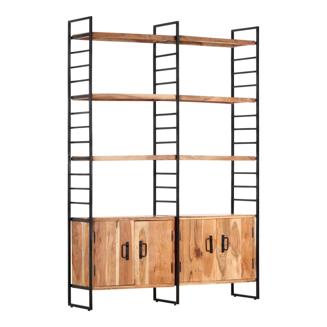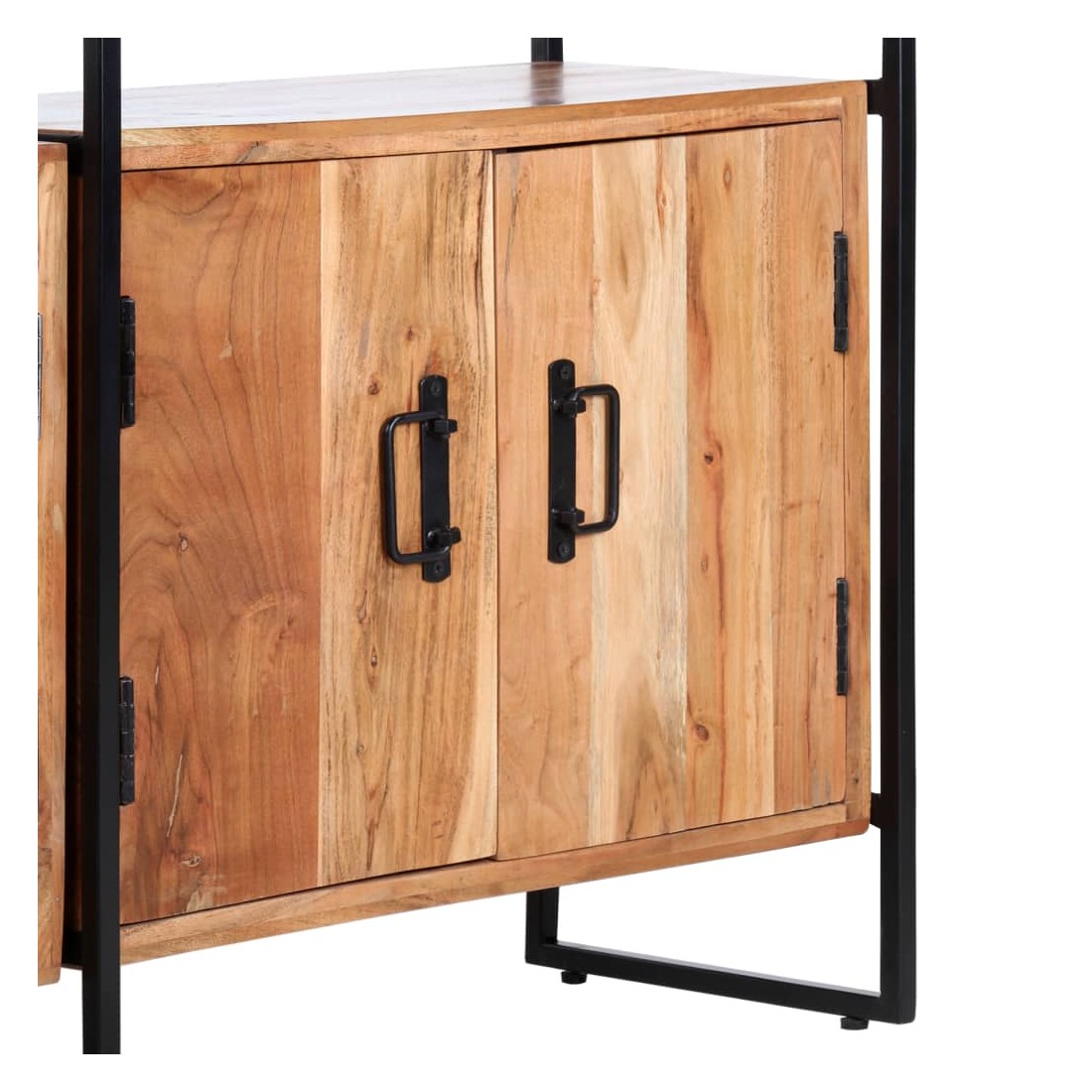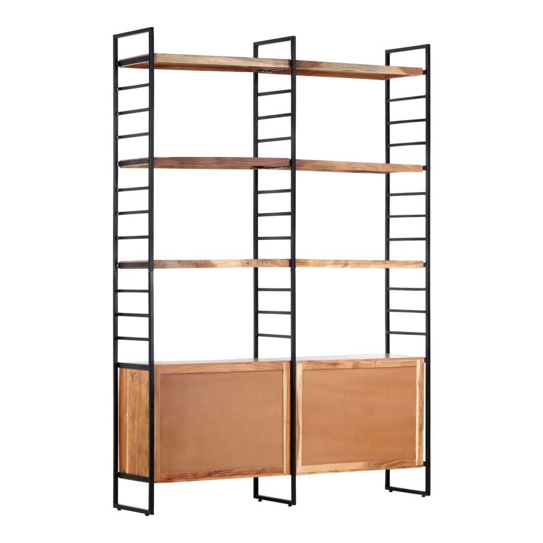 Ajoutez une touche de style industriel à votre maison ou bureau avec notre bibliothèque à 4 niveaux en bois. Cette bibliothèque avec 6 étagères et 4 portes offre une solution idéale pour stocker et afficher votre collection de livres, magazines, documents ou objets décoratifs tels que des cadres photo et des objets de collection. La bibliothèque est dotée d'un cadre robuste en fer enduit de poudre qui lui donne un aspect industriel. Les étagères rétro sont en bois d'acacia massif, un bois dur tropical avec de beaux grains, résistant aux intempéries et durable. Chaque étape du processus est réalisée avec le plus grand soin, que ce soit le polissage, la peinture ou le laquage. L'artisanat et les grains de bois accrocheurs rendent chaque meuble distinctif et légèrement différent l'un de l'autre. La livraison est aléatoire, ce qui garantit l'exclusivité et l'individualité de votre produit.