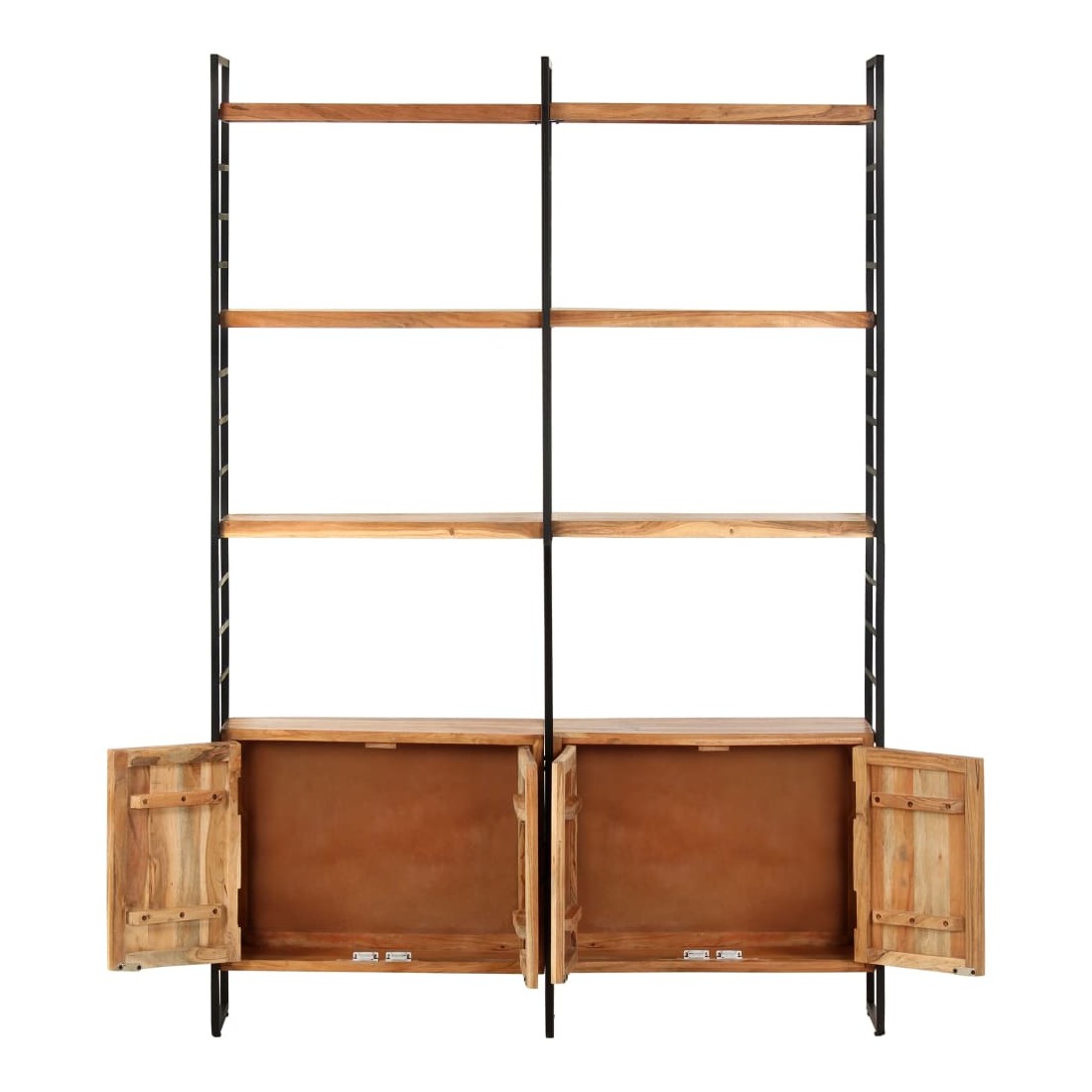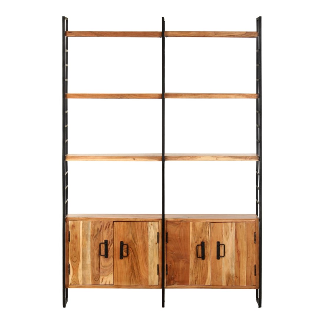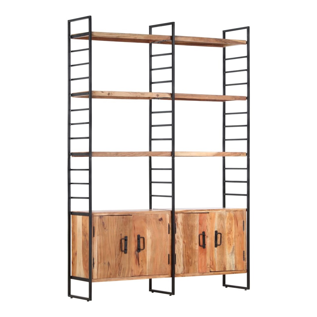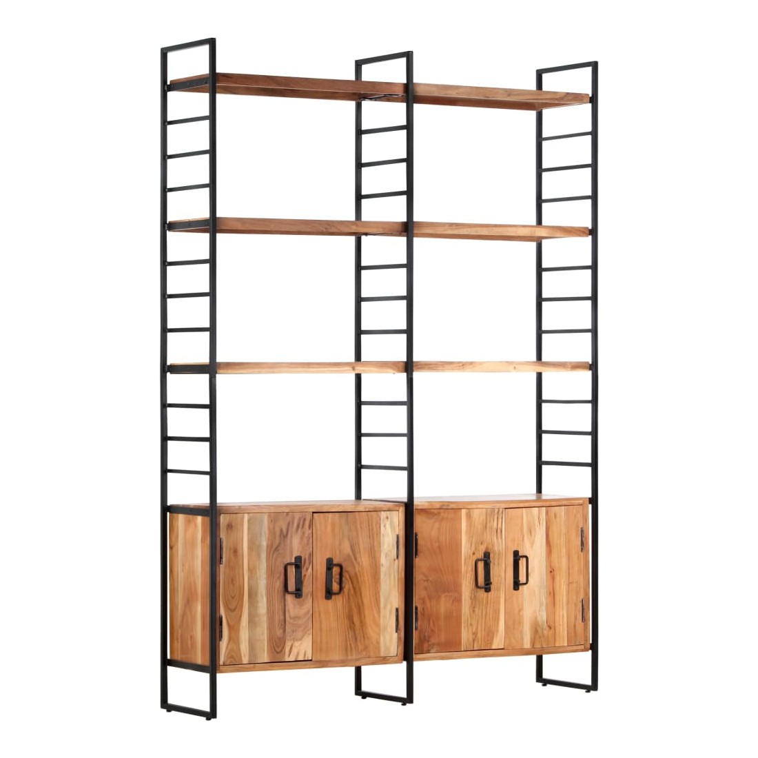 Ajoutez une touche de style industriel à votre maison ou bureau avec notre bibliothèque à 4 niveaux en bois. Cette bibliothèque avec 6 étagères et 4 portes offre une solution idéale pour stocker et afficher votre collection de livres, magazines, documents ou objets décoratifs tels que des cadres photo et des objets de collection. La bibliothèque est dotée d'un cadre robuste en fer enduit de poudre qui lui donne un aspect industriel. Les étagères rétro sont en bois d'acacia massif, un bois dur tropical avec de beaux grains, résistant aux intempéries et durable. Chaque étape du processus est réalisée avec le plus grand soin, que ce soit le polissage, la peinture ou le laquage. L'artisanat et les grains de bois accrocheurs rendent chaque meuble distinctif et légèrement différent l'un de l'autre. La livraison est aléatoire, ce qui garantit l'exclusivité et l'individualité de votre produit.
