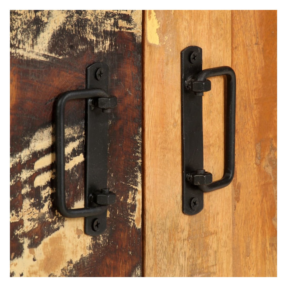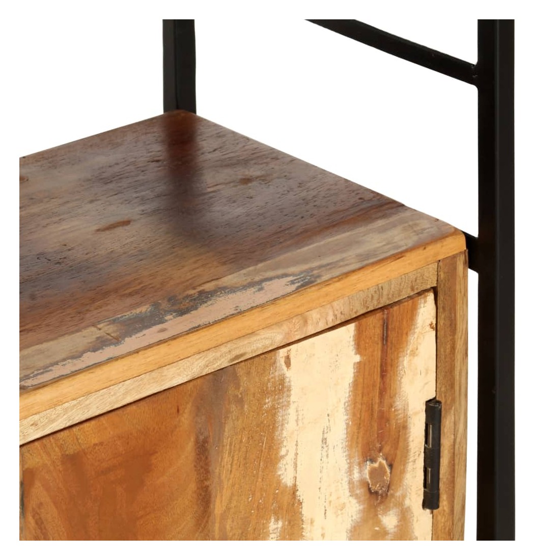 - Matériau : bois de récupération solide et cadre en fer enduit de poudre
