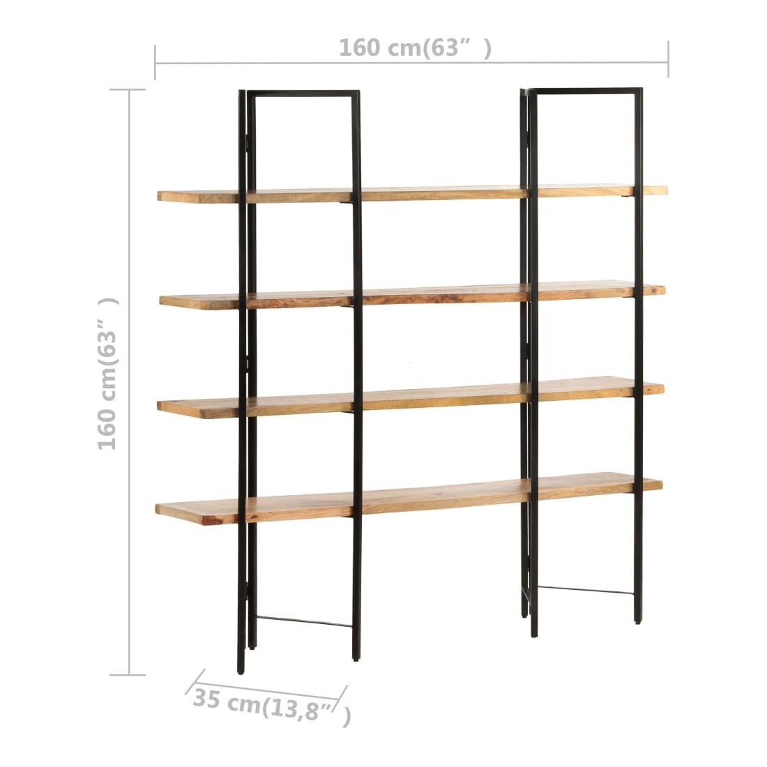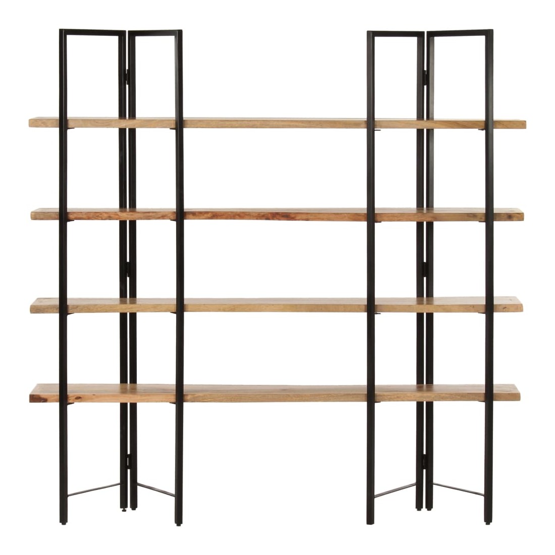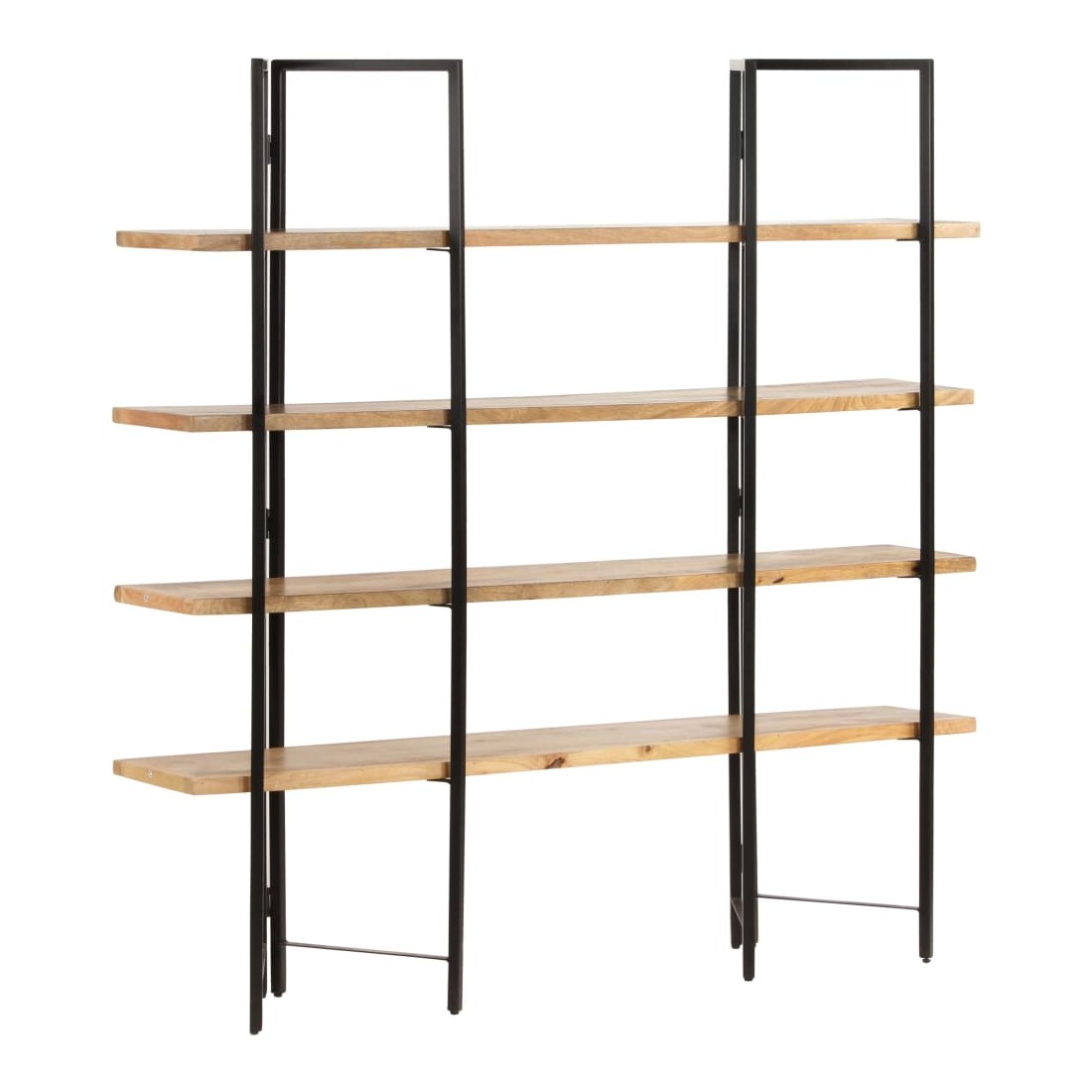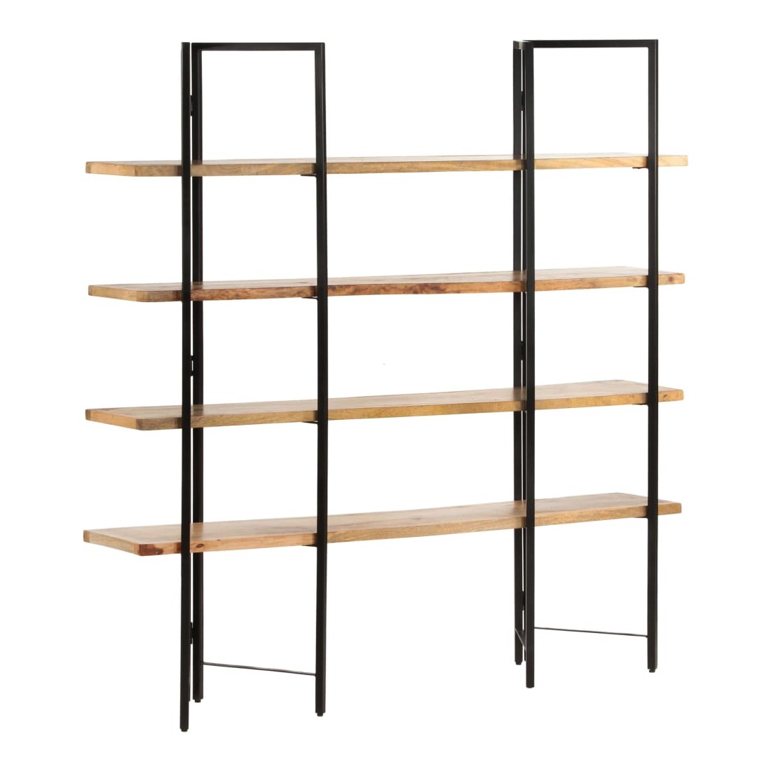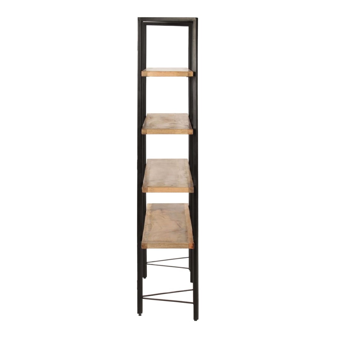 Affichez vos livres et souvenirs préférés dans notre bibliothèque ultra-moderne à 4 niveaux ! Cette étagère de style industriel complète n’importe où du bureau au salon. La bibliothèque met également en évidence un cadre robuste en fer enduit de poudre lui donnant un aspect industriel. Les étagères rétro sont en bois de manguier massif, extrêmement stable et durable. Le bois de manguier est un bois dur dense et robuste avec des belles stries et des contours bruns ou dorés à sa surface. Chaque étape du processus est réalisée avec le plus grand soin, que ce soit le polissage, la peinture ou le laquage. Les couleurs et les grains du bois peuvent varier d'une pièce à l'autre, ce qui rend chaque pièce unique et légèrement différente l'une de l'autre. La livraison est aussi aléatoire.