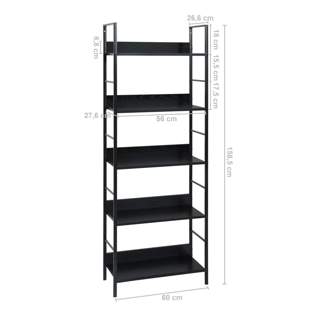 Bibliothèque à 5 niveaux noir 60x27,6x158,5cm bois d'ingénierie