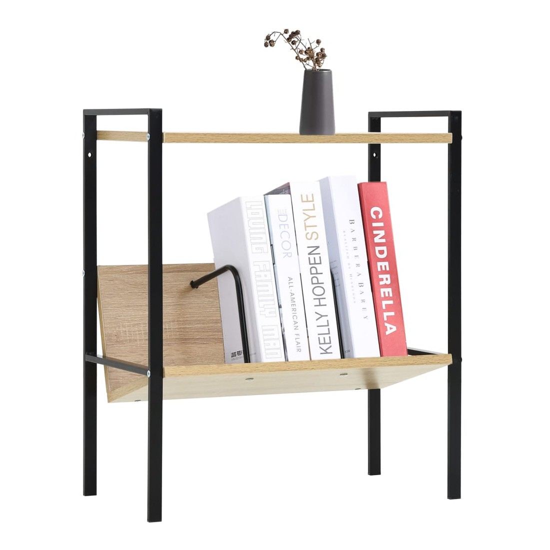 Cette bibliothèque à 2 niveaux peut être utilisée dans le salon comme étagère à livres ou présentoir de décoration, ou sur le patio comme support d'affichage pour plantes, etc. Elle est un supplément intemporel à votre décoration intérieure. L'étagère sur pied est en bois d'ingénierie, ce qui la rend facile à nettoyer avec un chiffon humide. Les structures en acier robustes la rendent antirouille et ajoute à son style industriel. Dotée d'un design compact, l'étagère utilise le plus d'espace limité. De plus, ce meuble a 2 étagères, ce qui vous offre amplement d'espace pour ranger et afficher votre collection de livres, fleurs, CD, DVD ainsi que d'autres objets décoratifs. Notre étagère à livres est facile à assembler.