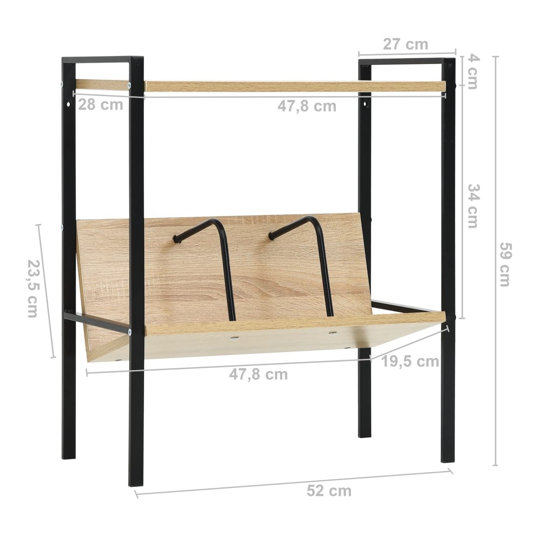 • Dimensions de l'étagère inférieure : 47,8 x 19,5 x 23,5 cm (L x l x H)