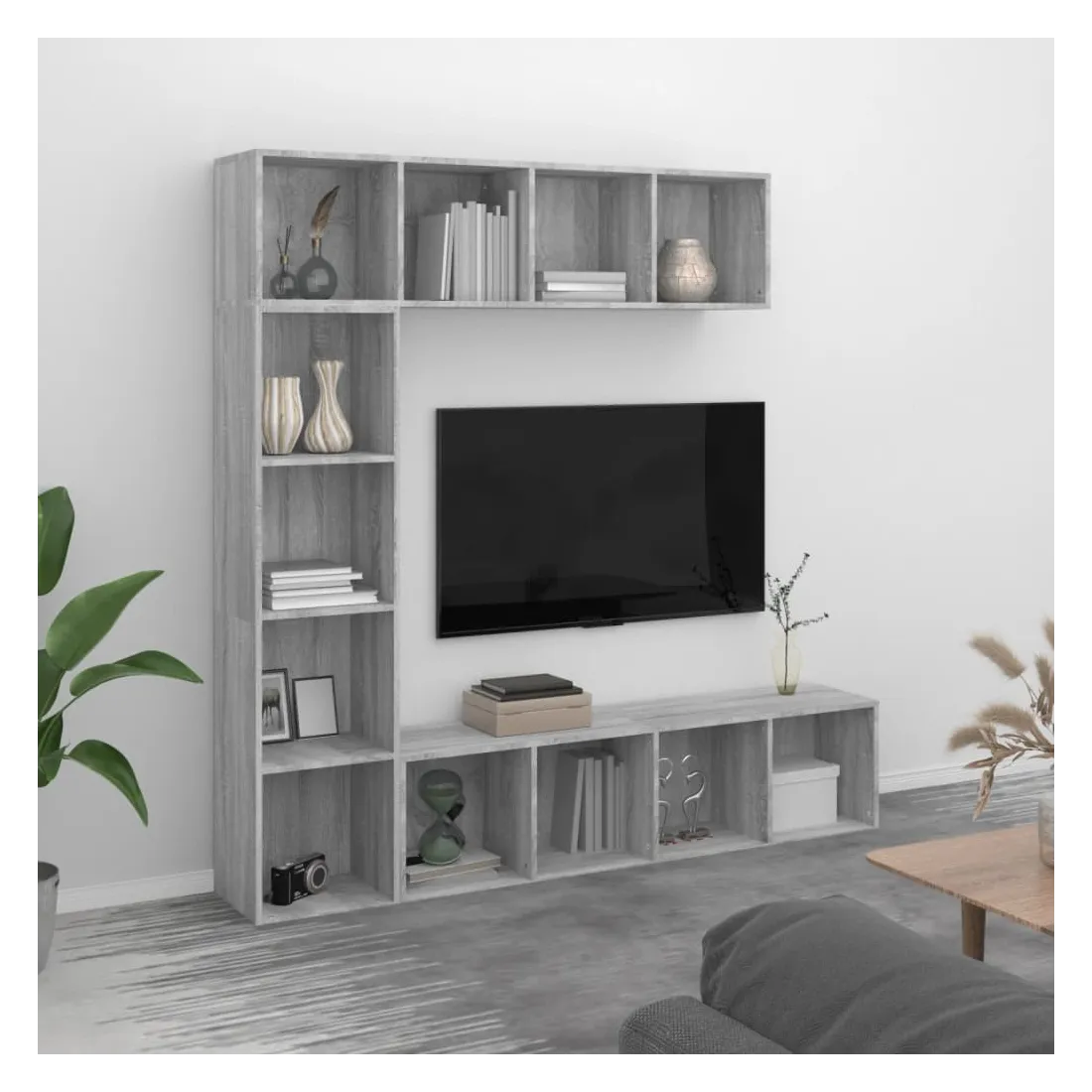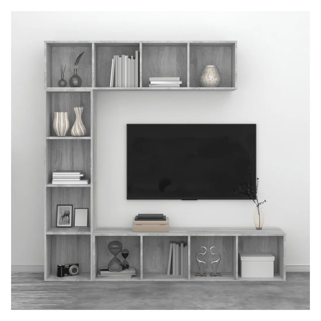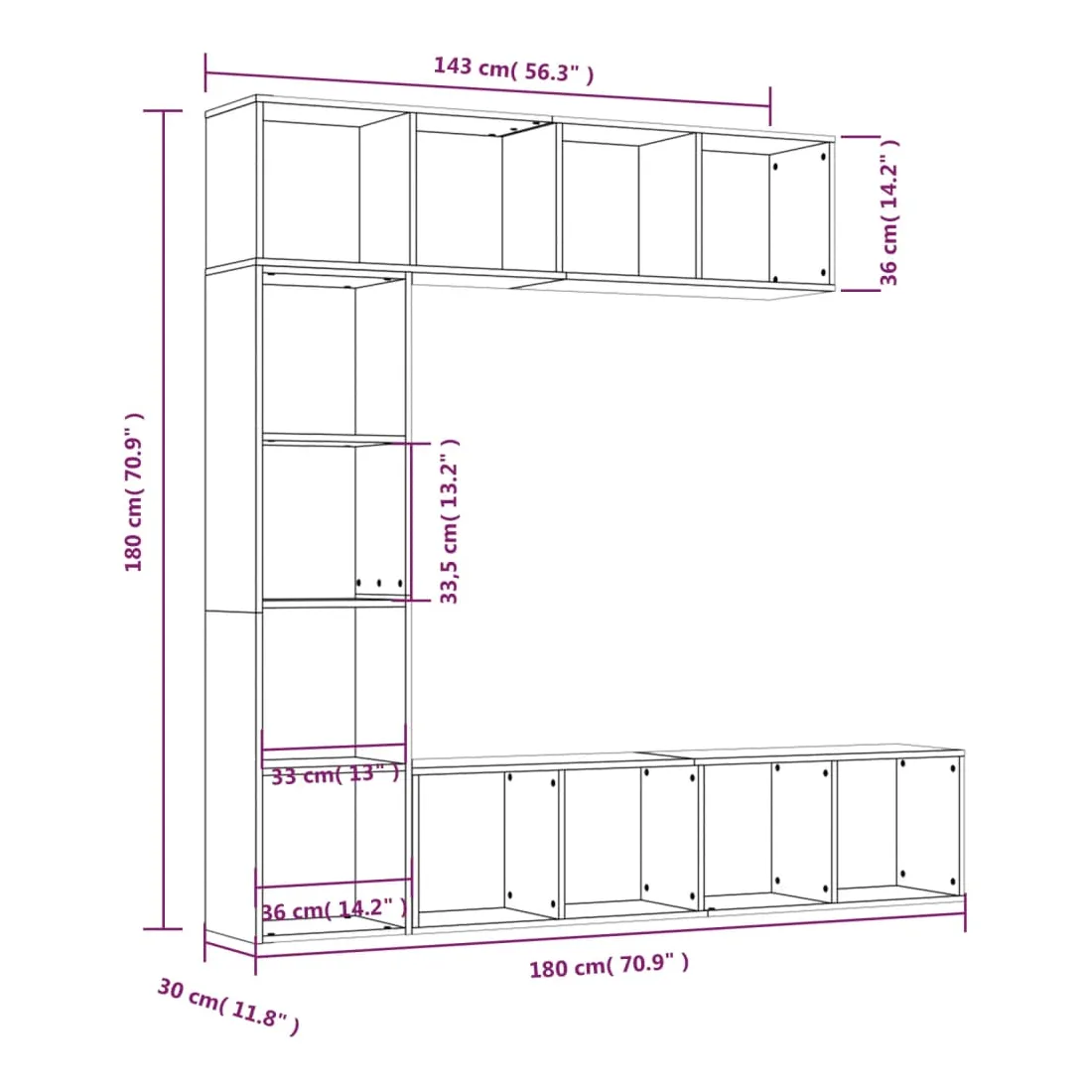 Avec un design élégant et beau, cet ensemble de bibliothèque/meuble TV ajoutera une touche décorative et pratique à votre décoration intérieure. Matériau pratique : le bois d'ingénierie est d'une qualité exceptionnelle avec une surface lisse et présente également résistance, stabilité et résistance à l'humidité.Rangement spacieux : l'étagère à livres est conçue avec 12 compartiments, offrant beaucoup d'espace pour ranger vos magazines, livres, DVD, appareils multimédias et une variété d'autres articles d'une manière accessible et bien organisée.Étagère polyvalente : la bibliothèque est une étagère polyvalente qui peut être installée horizontalement sur le sol et même accrochée verticalement ou horizontalement au mur, ce qui en fait le meilleur choix pour votre espace de vie.Surface facile à nettoyer : la surface de ce porte-livres est facile à nettoyer. Remarque :Les vis et les chevilles pour l'intérieur du mur ne sont pas incluses. Recherchez et utilisez des vis et des chevilles adaptées à vos murs. Si vous n'êtes pas sûr, demandez conseil à un professionnel. Lisez et suivez attentivement chaque étape des instructions.Chaque produit est livré avec un manuel de montage dans la boîte pour un montage facile.
