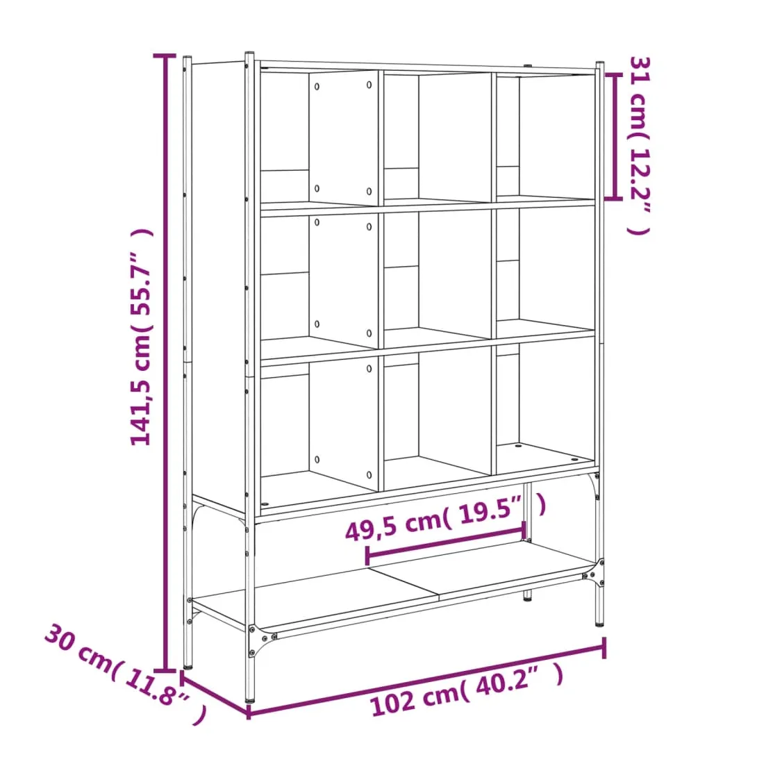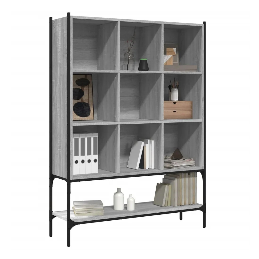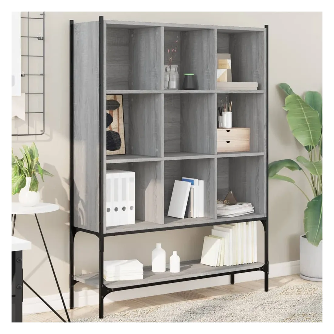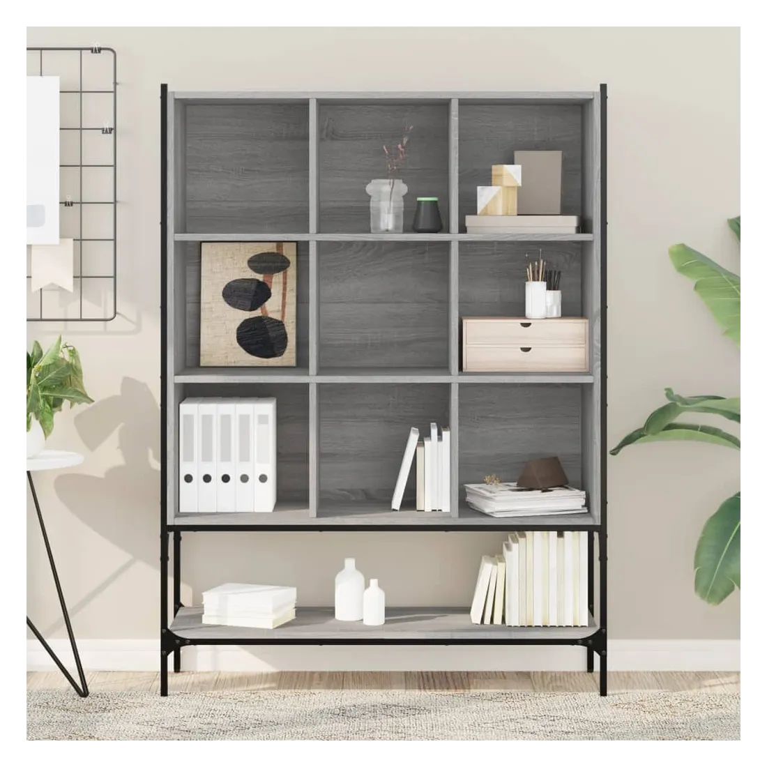 Cette bibliothèque est une aide précieuse pour l'organisation du désordre et un supplément intemporel à votre décoration intérieure. Construction robuste : l'acier et le bois d'ingénierie garantissent une construction robuste et offrent un support solide à vos articles.Design peu encombrant : la bibliothèque utilise de manière optimale l'espace vertical et occupe peu d'espace au sol, ce qui convient particulièrement aux petites pièces.Grand espace de rangement : la bibliothèque est conçue avec 9 compartiments ouverts et 1 étagère inférieure, offrant un grand espace de rangement pour stocker et exposer vos livres, magazines, objets de décoration, cadres photo, souvenirs de vacances et trophées tout en améliorant votre espace de vie.Nombreuses applications : l'armoire de rangement peut également être utilisée comme séparateur de pièce, s'adaptant facilement à tous les styles de pièces. Vous pouvez le placer dans le salon pour exposer la décoration, dans le bureau pour ranger les livres et les documents, dans la chambre à coucher pour ranger les objets de la vie quotidienne et dans la cave pour ranger les objets de toutes sortes. Attention :Pour éviter qu'il ne bascule, ce produit doit être utilisé avec le dispositif de fixation murale fourni.