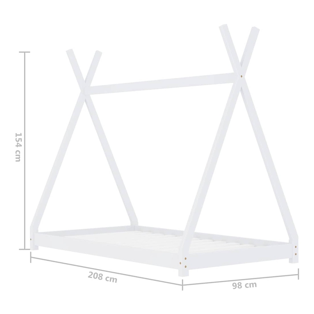 Créez le refuge ultime dans la chambre de vos enfants avec notre cadre de lit fantastique ! Le lit présente un cadre croisé innovant inspiré des tentes de style tipi cool où vous pouvez accrocher des rideaux de lit pour créer de l'intimité pour votre enfant. Il peut également être utilisé comme coin lecture ou maison de jeu pour votre enfant. Fabriqué en bois de pin massif, ce cadre de lit est extrêmement robuste et durable. Les lattes résistantes offrent le soutien nécessaire et sont très confortables. Ce cadre de lit convient à un matelas de 90 x 200 cm. Veuillez noter que la livraison inclut un cadre de lit seulement ; un matelas et les rideaux ne sont pas inclus. Le lit est facile à assembler. Vous pouvez chercher le matelas correspondant dans notre boutique.