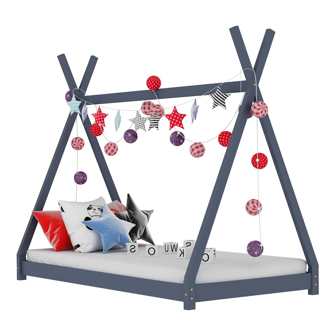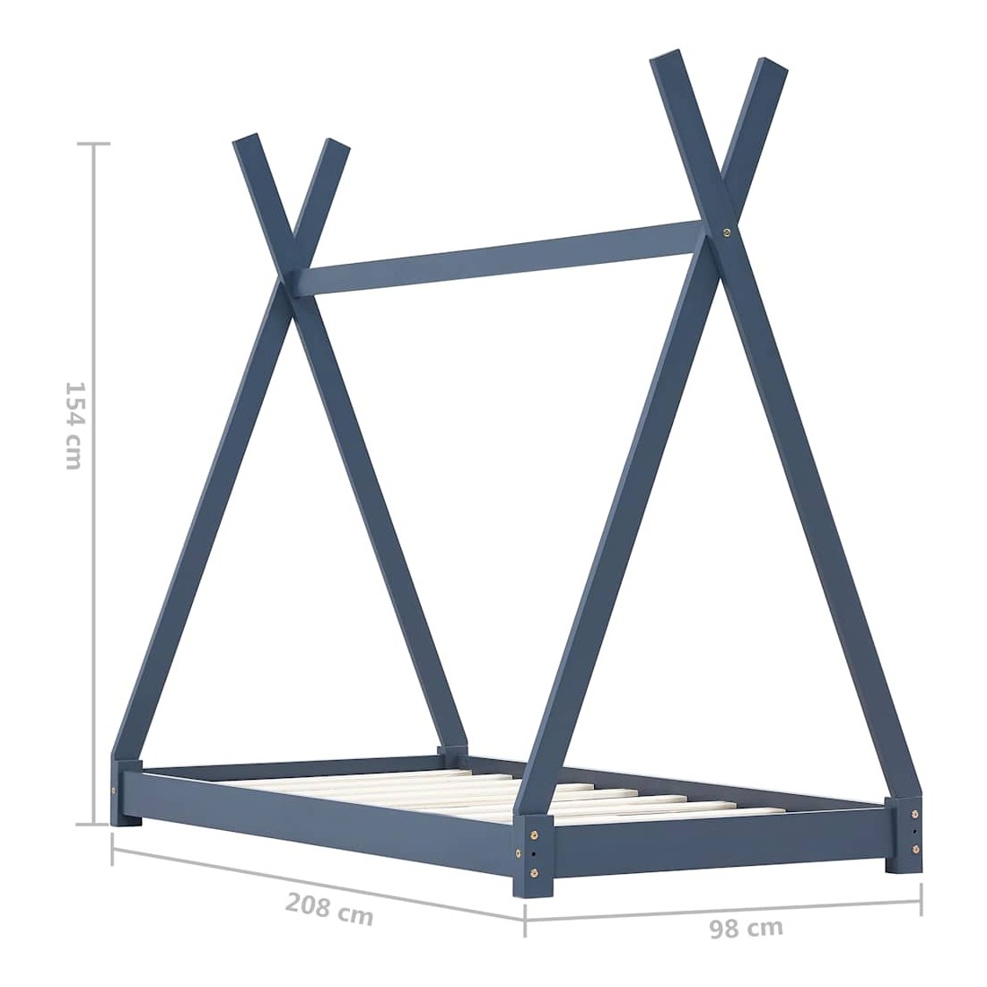 Créez le refuge ultime dans la chambre de vos enfants avec notre cadre de lit fantastique ! Le lit présente un cadre croisé innovant inspiré des tentes de style tipi cool où vous pouvez accrocher des rideaux de lit pour créer de l'intimité pour votre enfant. Il peut également être utilisé comme coin lecture ou maison de jeu pour votre enfant. Fabriqué en bois de pin massif, ce cadre de lit est extrêmement robuste et durable. Les lattes résistantes offrent le soutien nécessaire et sont très confortables. Ce cadre de lit convient à un matelas de 90 x 200 cm. Veuillez noter que la livraison inclut un cadre de lit seulement ; un matelas et les rideaux ne sont pas inclus. Le lit est facile à assembler. Vous pouvez chercher le matelas correspondant dans notre boutique.