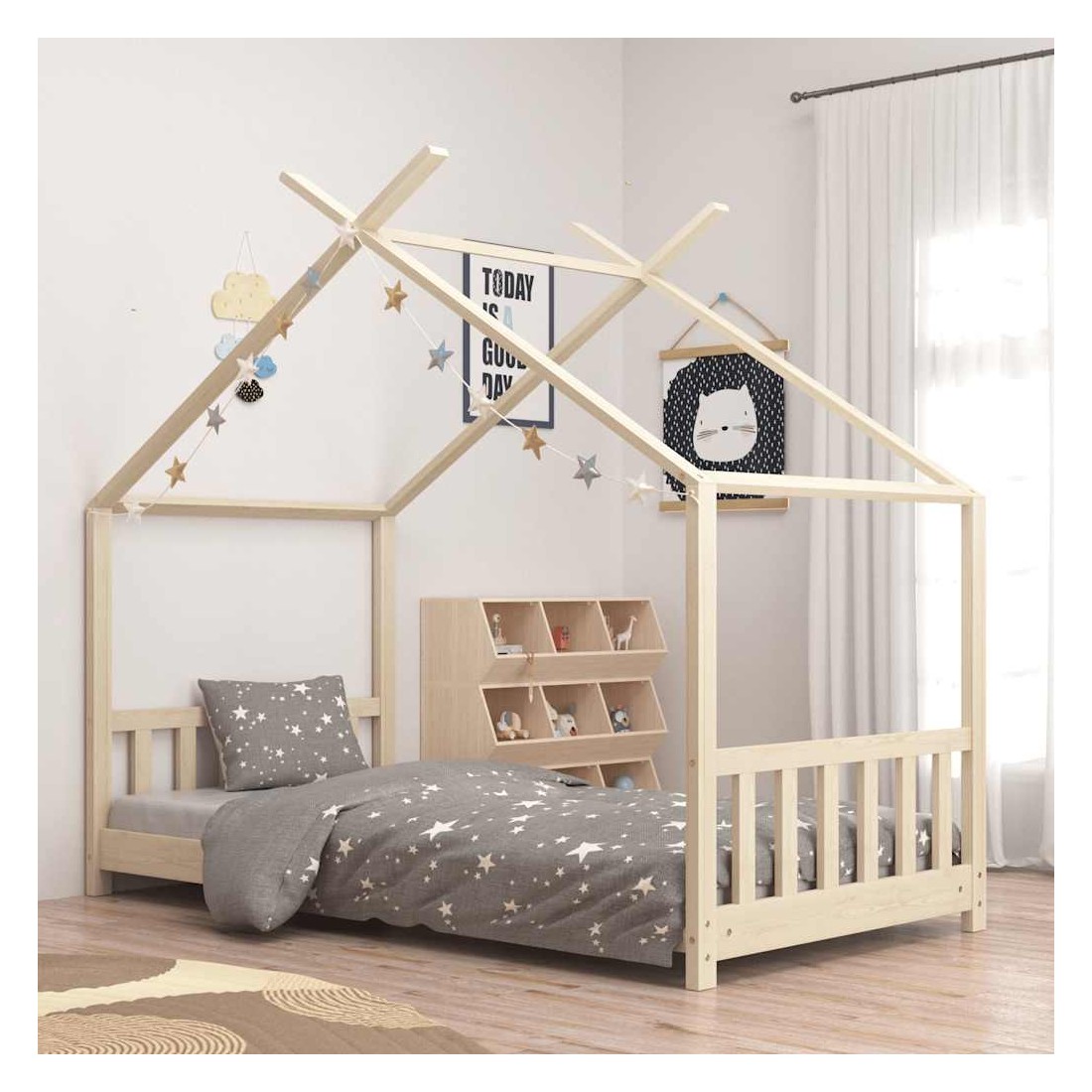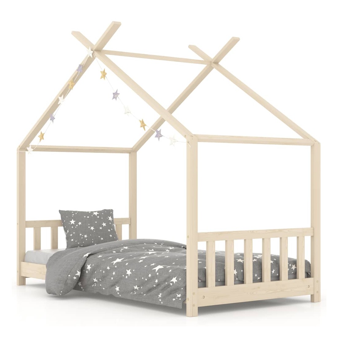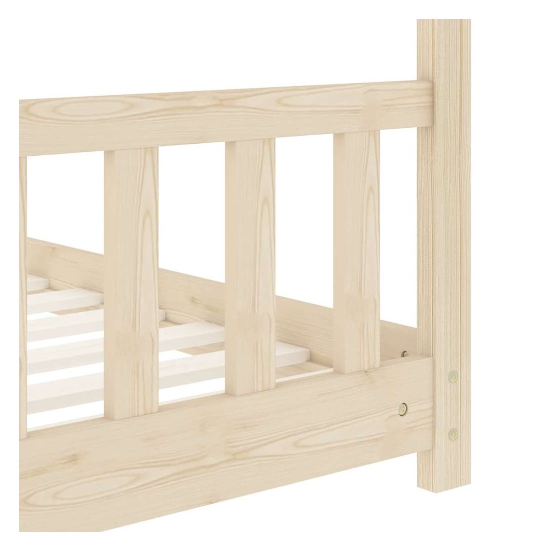 Créez le refuge ultime dans la chambre de vos enfants avec notre cadre de lit fantastique ! Le lit est intelligemment conçu avec un cadre de style maison dans un arbre où vous pouvez accrocher des rideaux de lit pour créer de l'intimité pour votre enfant. Il peut également être utilisé comme coin lecture ou maison de jeu pour votre enfant. Fabriqué en bois de pin massif, ce cadre de lit est extrêmement robuste et durable. Les lattes résistantes offrent le soutien nécessaire et sont très confortables. Ce cadre de lit convient à un matelas de 70 x 140 cm. Veuillez noter que la livraison inclut un cadre de lit seulement ; un matelas et les rideaux ne sont pas inclus. Le lit est facile à assembler. Vous pouvez chercher le matelas correspondant dans notre boutique.