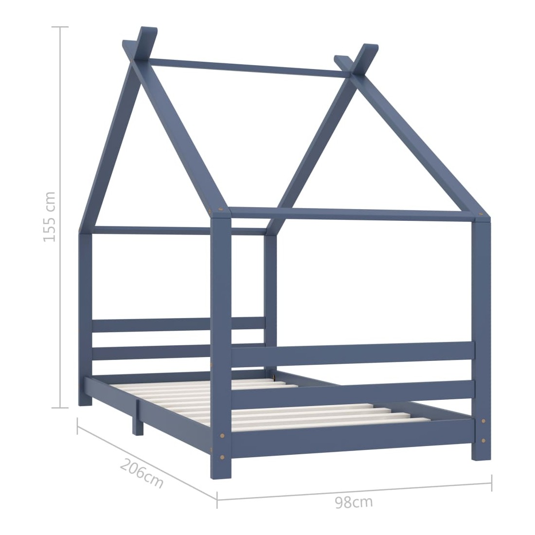 Cadre de lit d'enfant Gris Bois de pin massif 90x200 cm